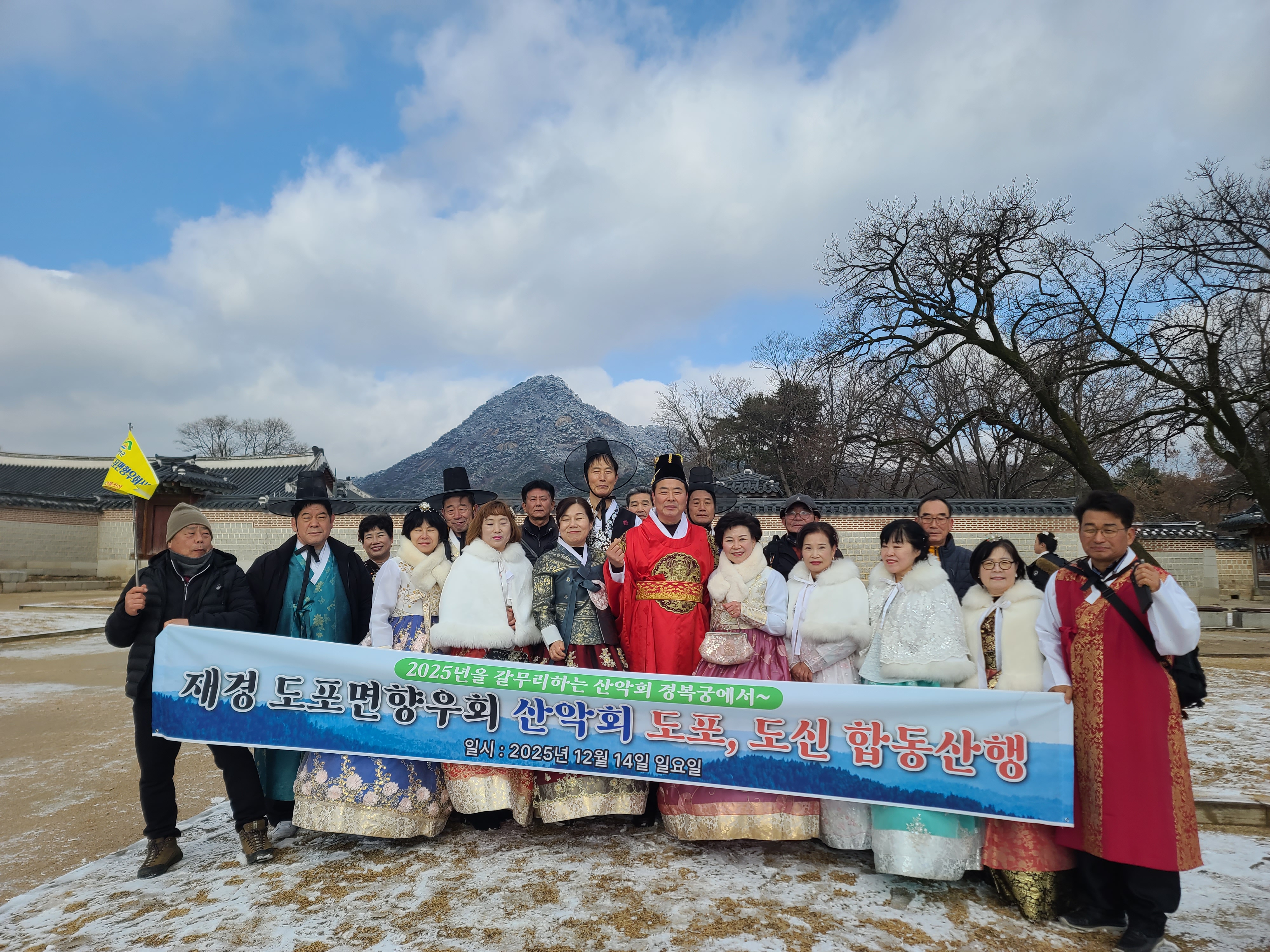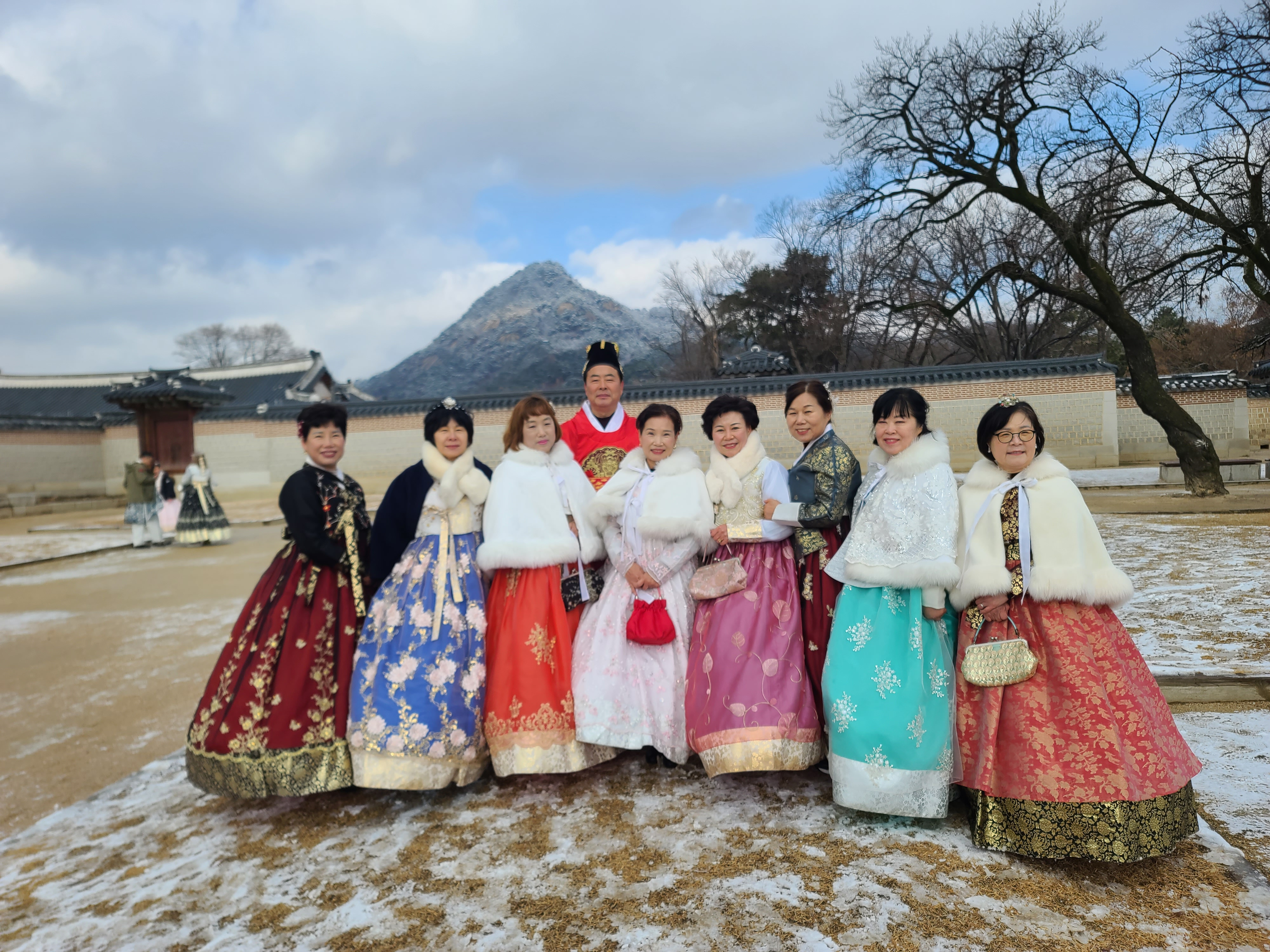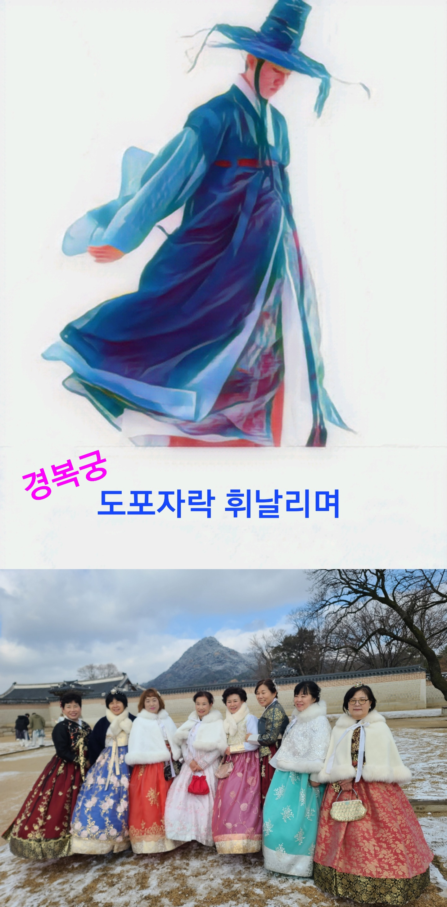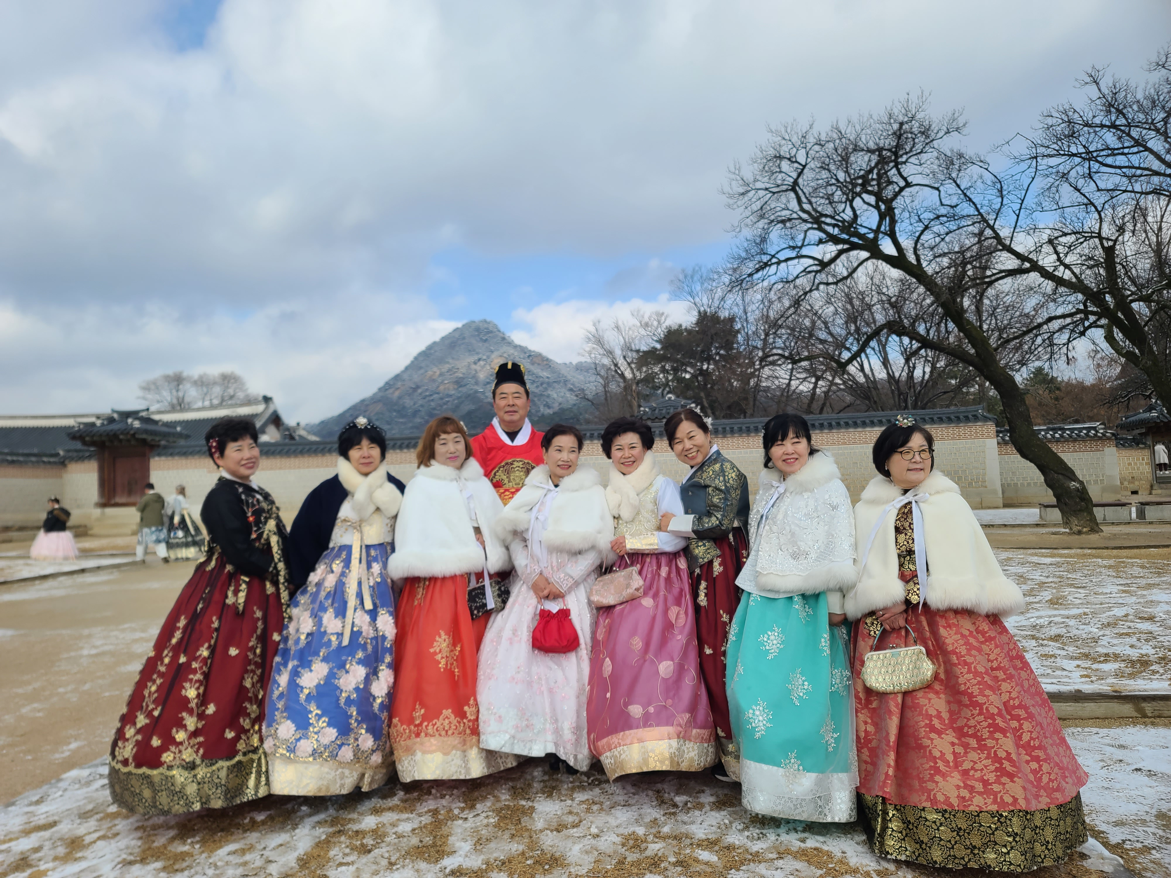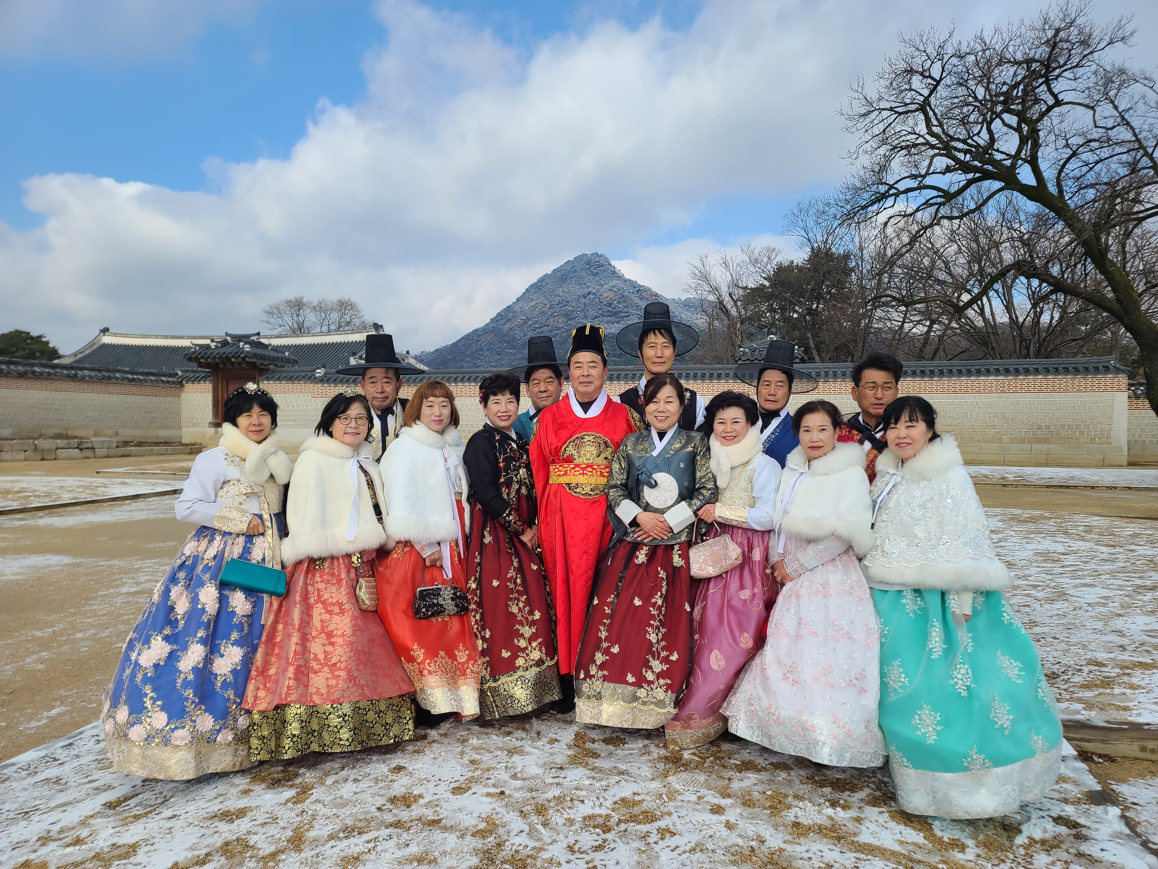 도포사람들의 2025년도 한 해를 마감하는 멋진 피날레를 경복궁 한복체험으로 산악회 행사를 갈무리했다. 그들은 지인들과 함께 경복궁 탐방을 위한 한복을 입고 〈도포자락 휘날리며〉 드라마를 촬영하듯이 궁궐을 배경으로 연기를 해보였다.