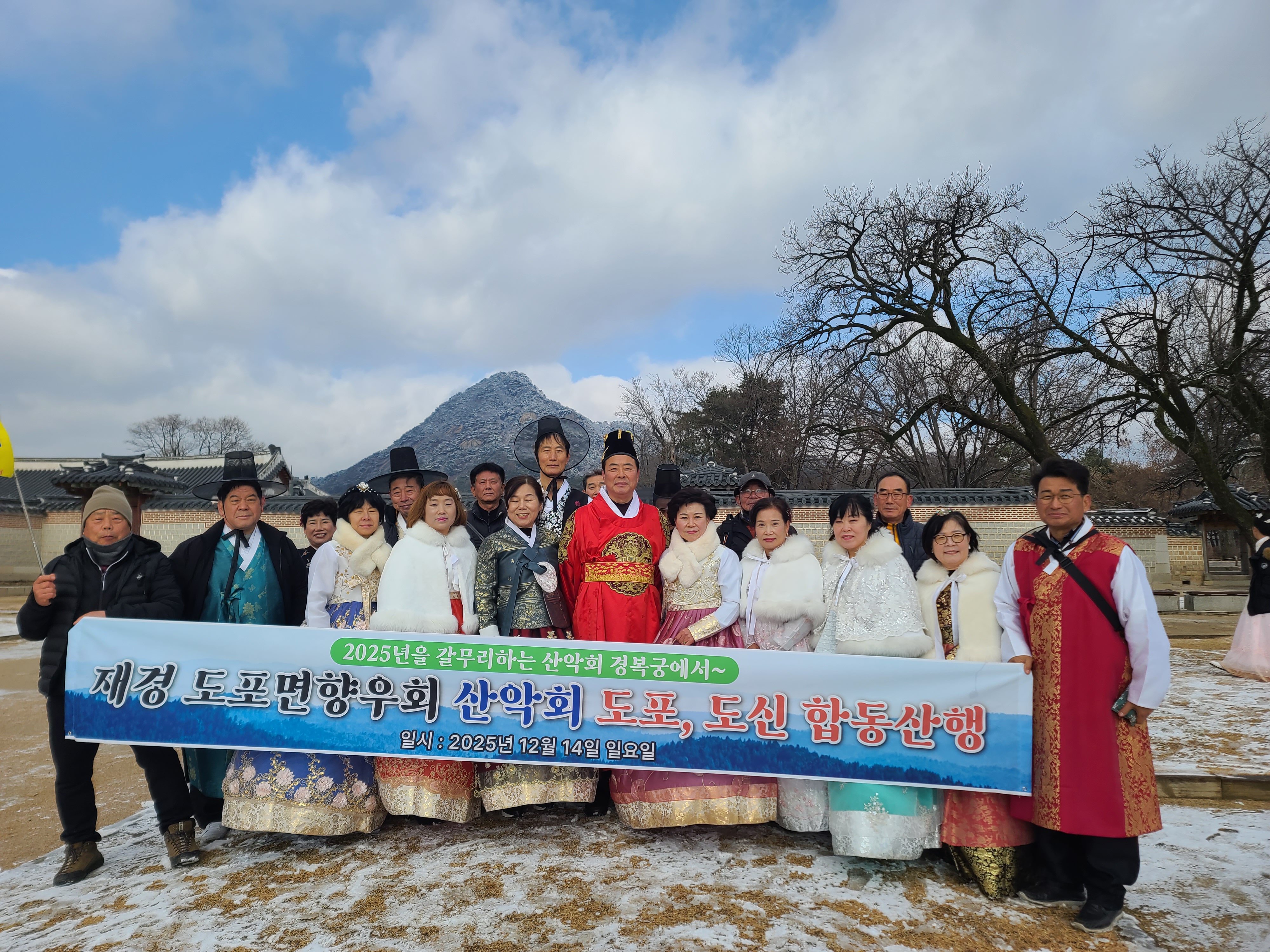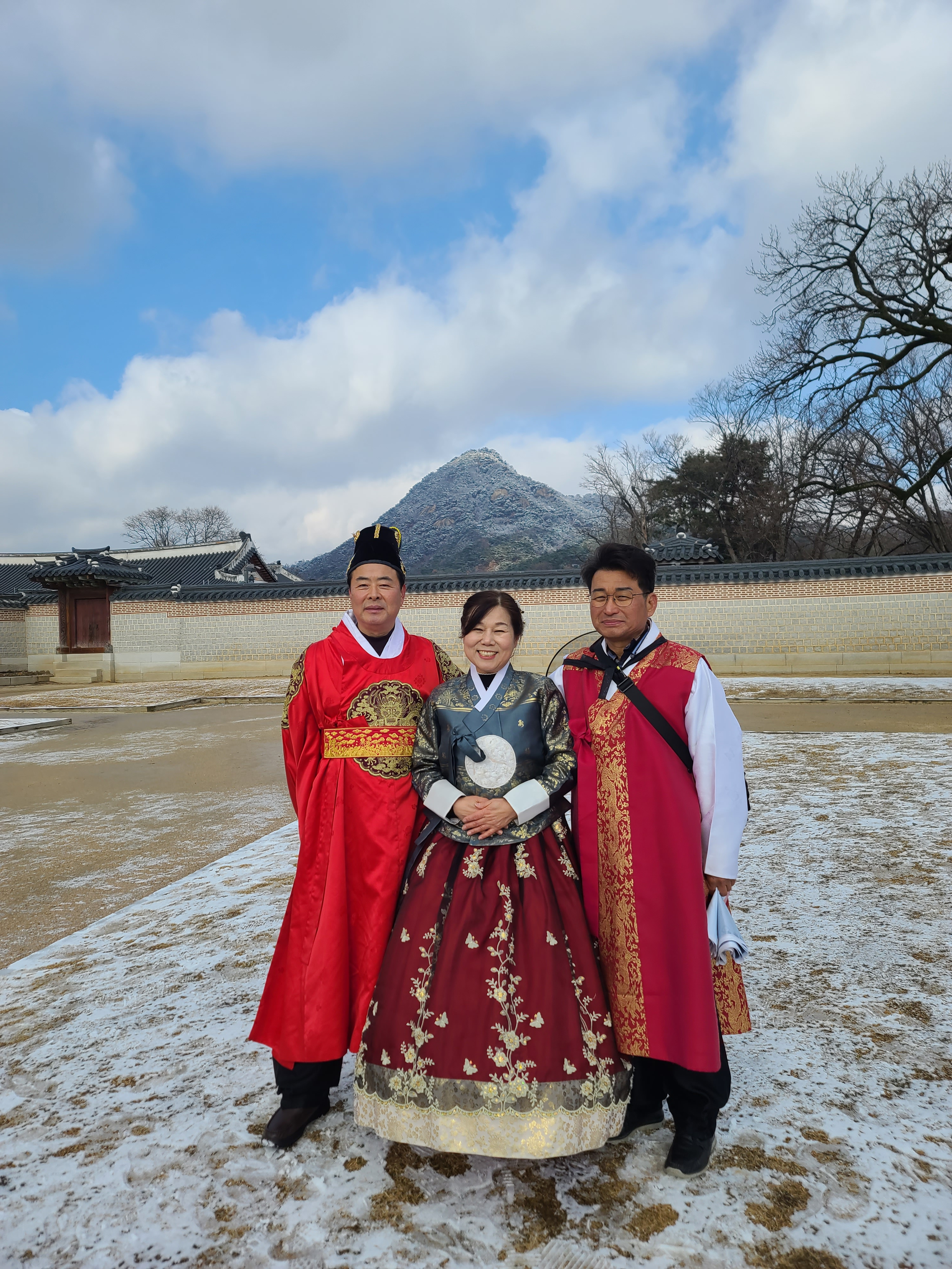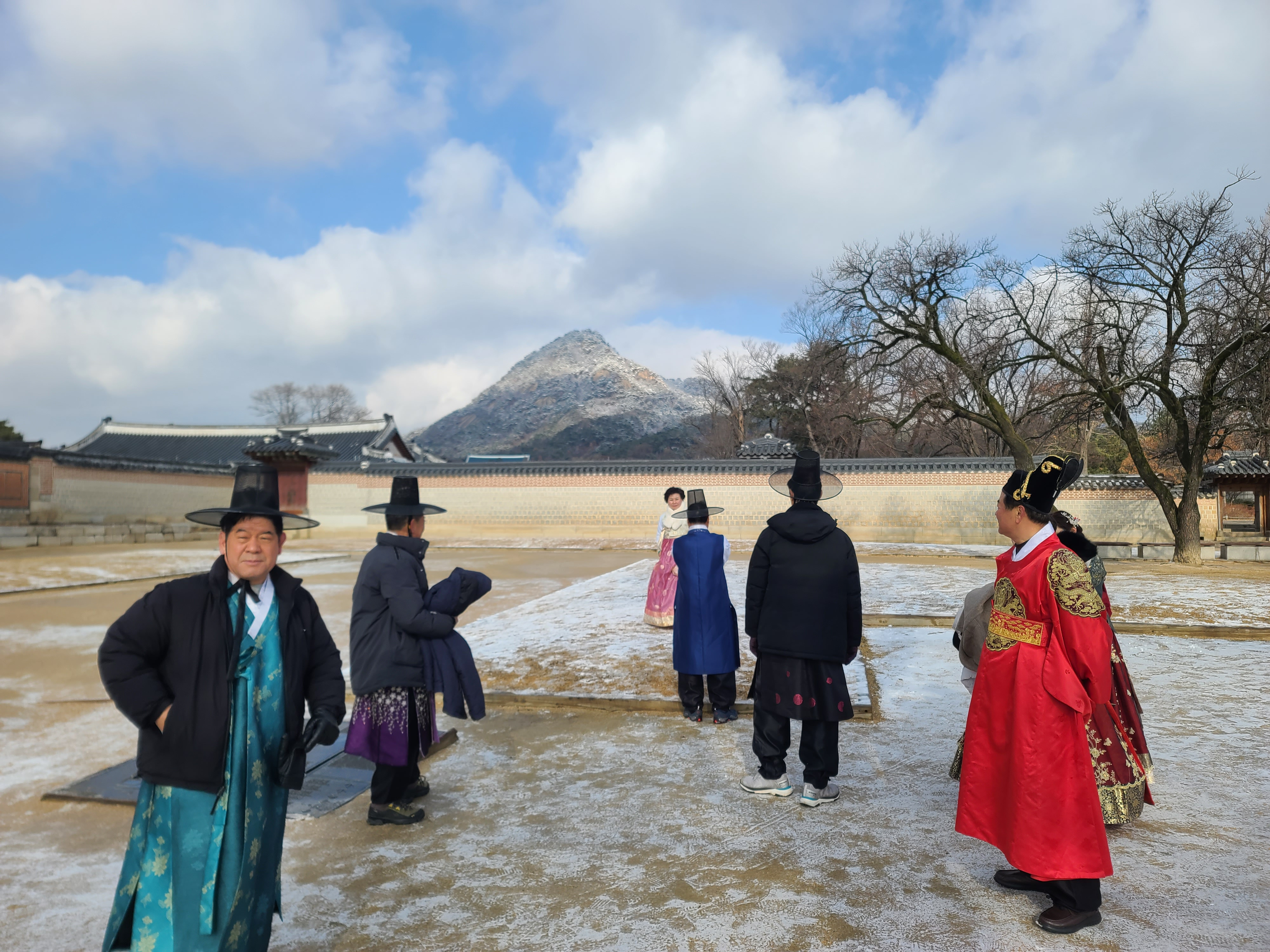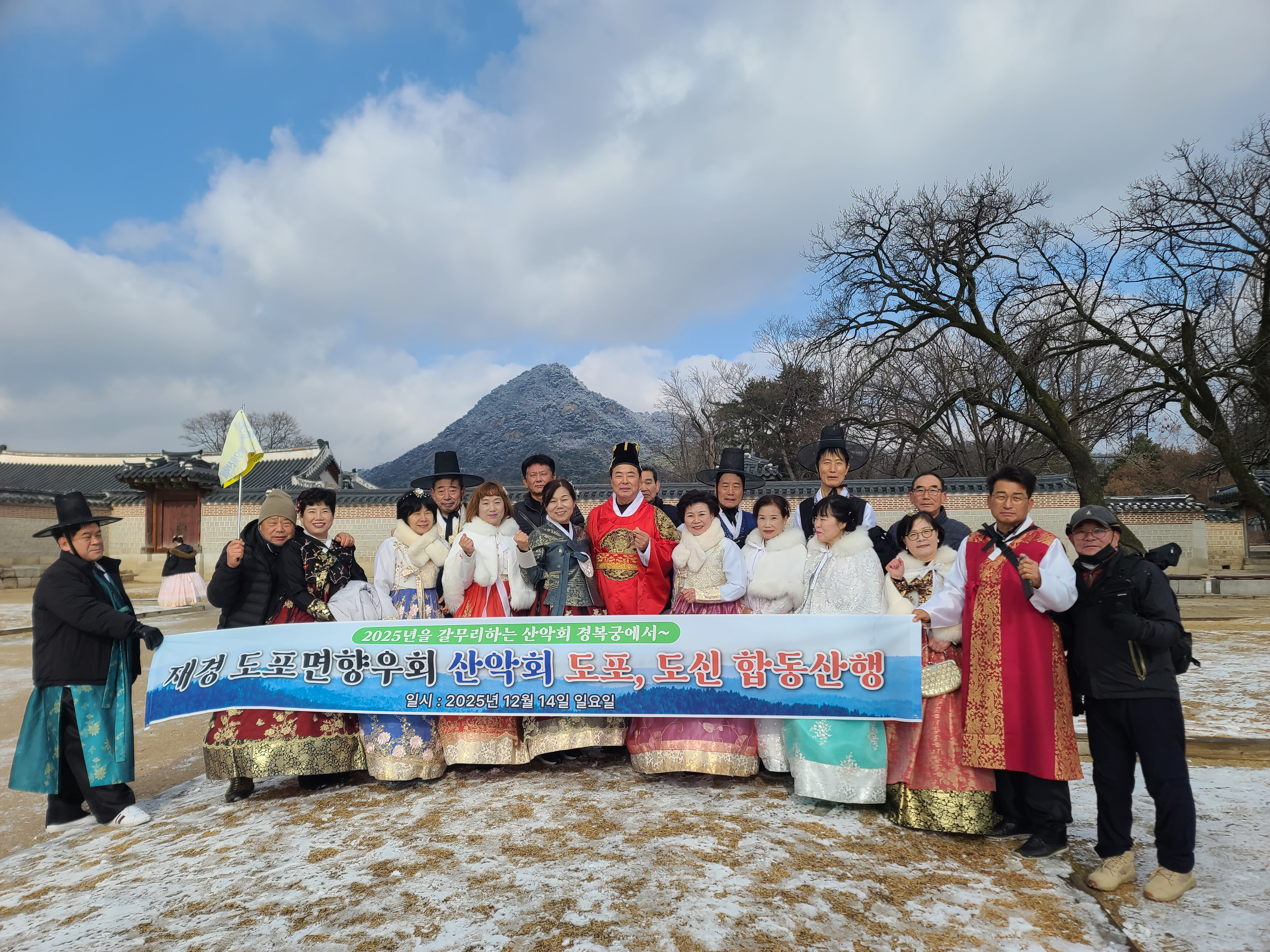 도포사람들의 2025년도 한 해를 마감하는 멋진 피날레를 경복궁 한복체험으로 산악회 행사를 갈무리했다. 그들은 지인들과 함께 경복궁 탐방을 위한 한복을 입고 〈도포자락 휘날리며〉 드라마를 촬영하듯이 궁궐을 배경으로 연기를 해보였다.