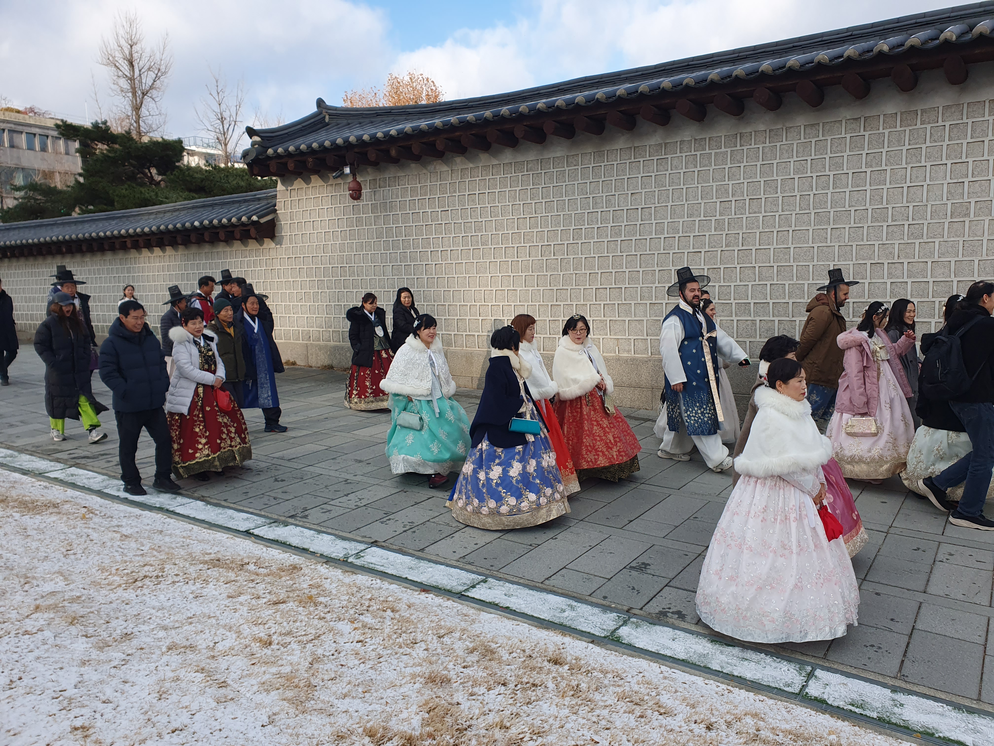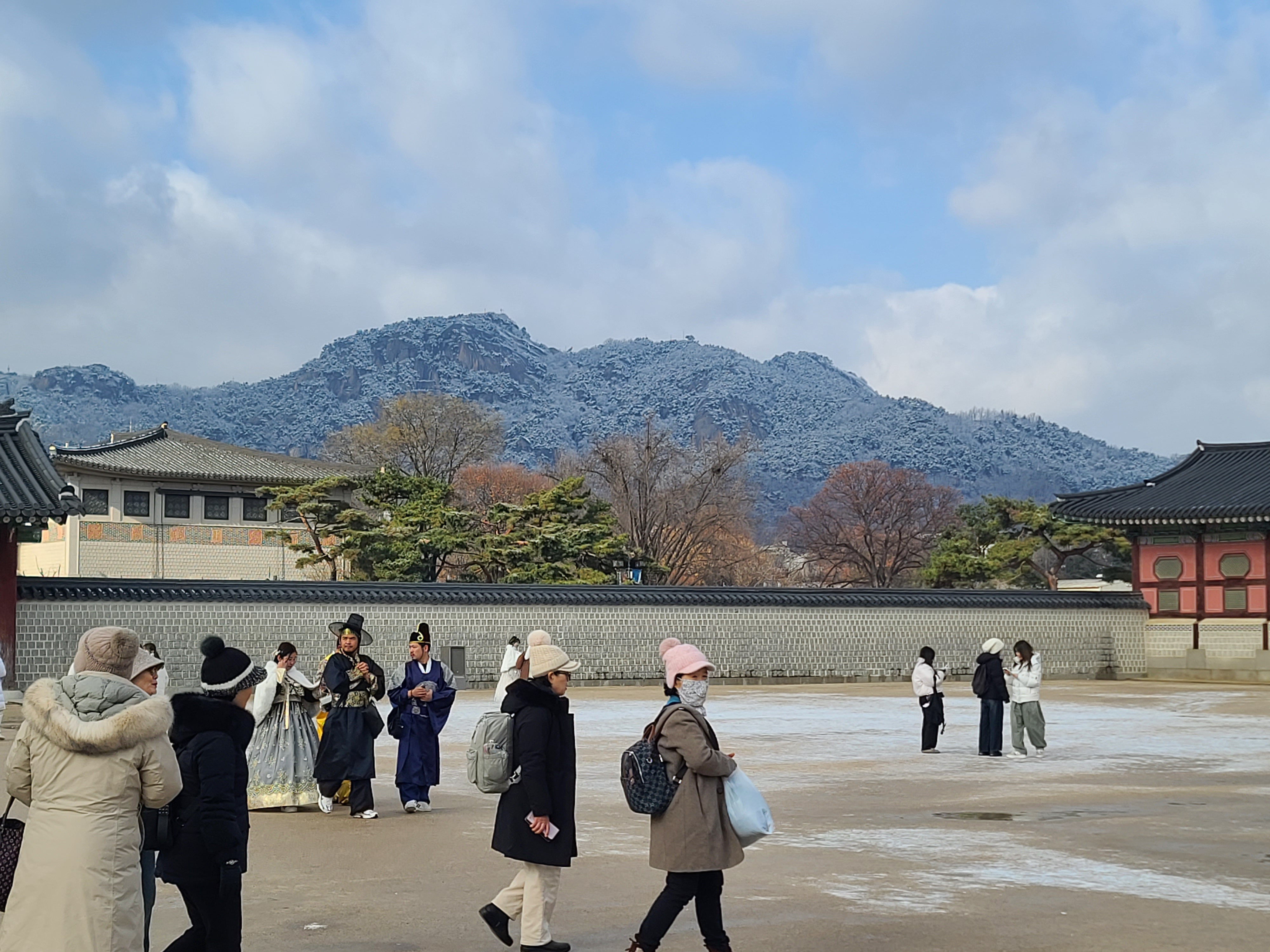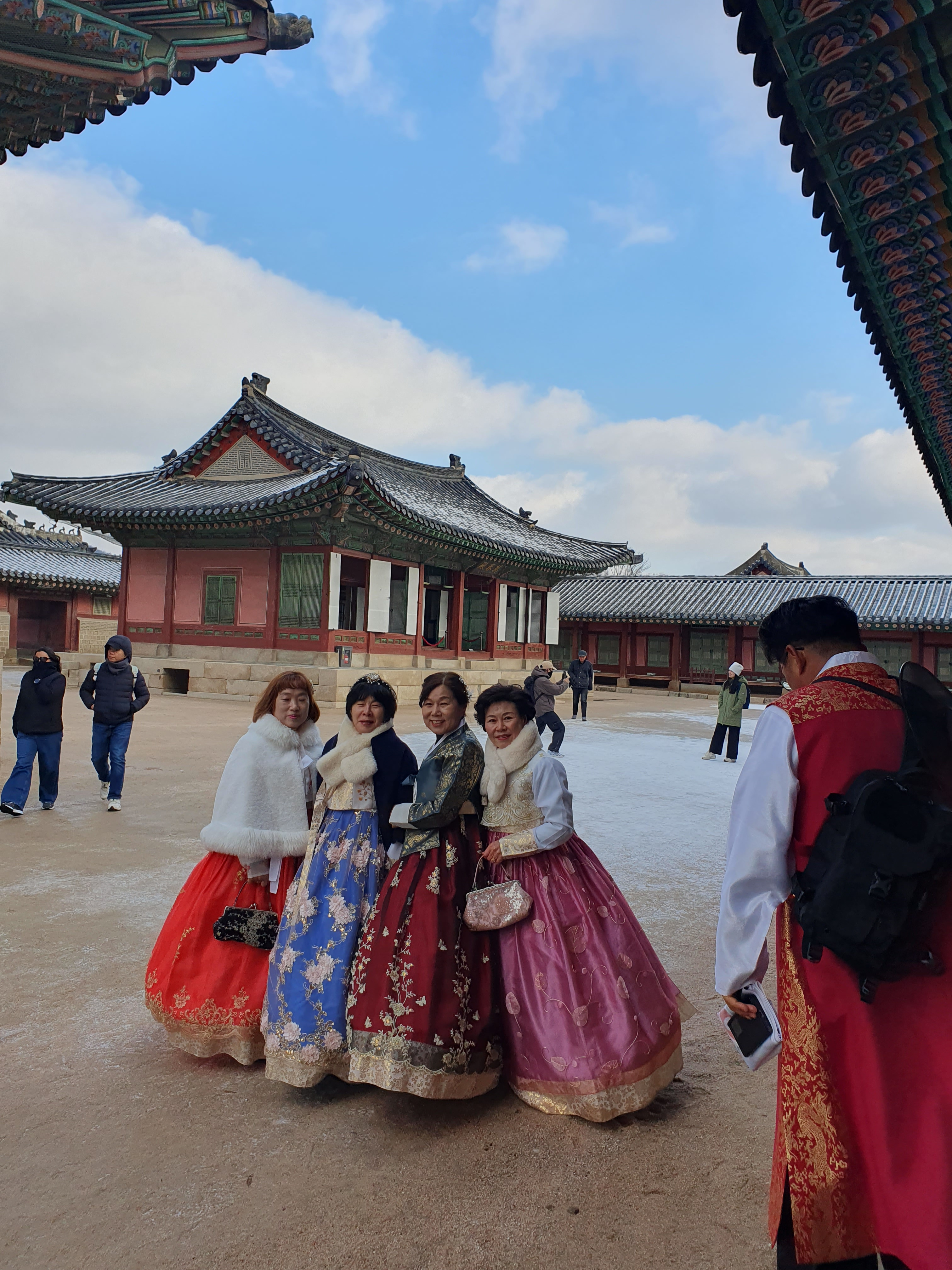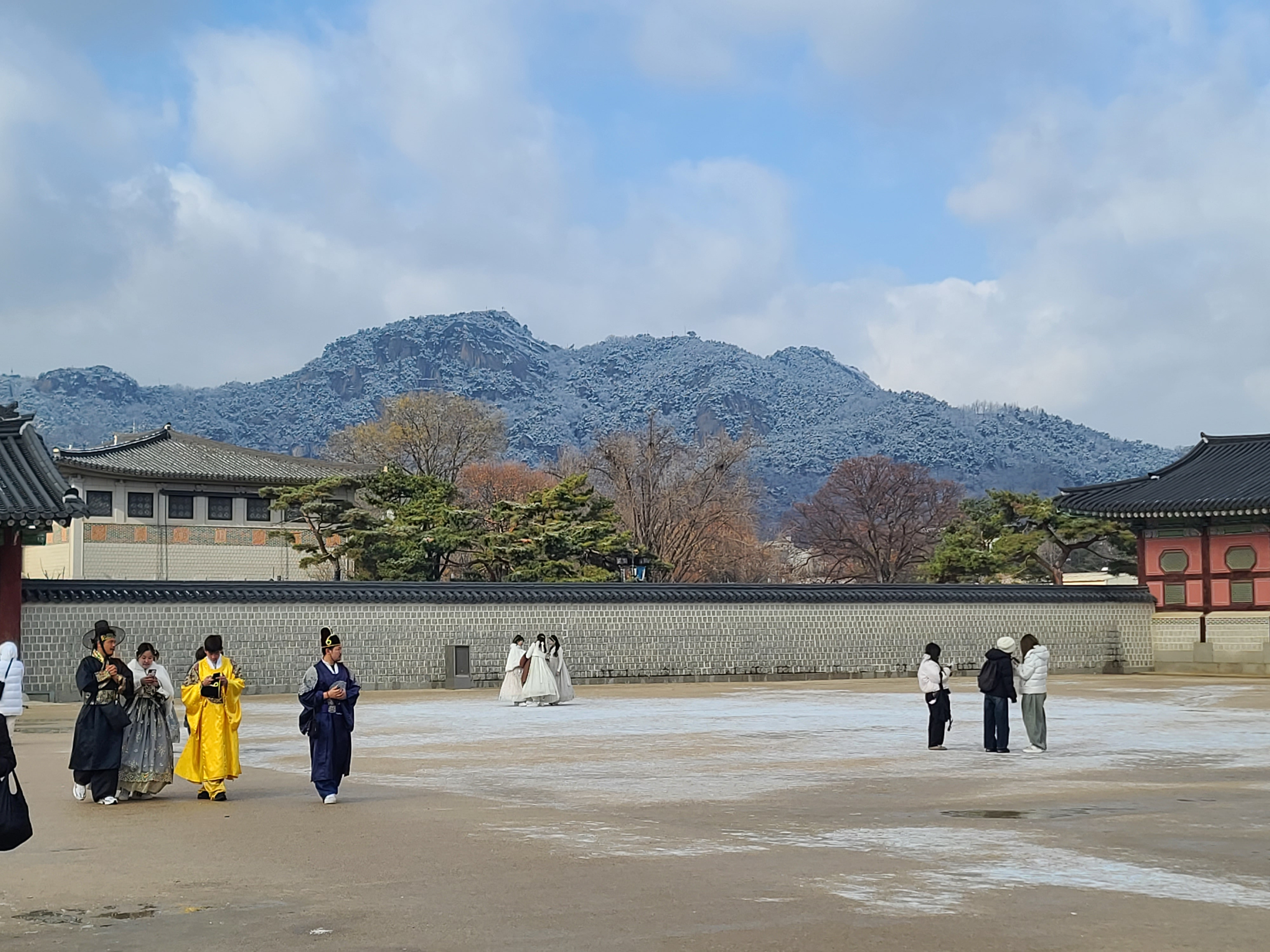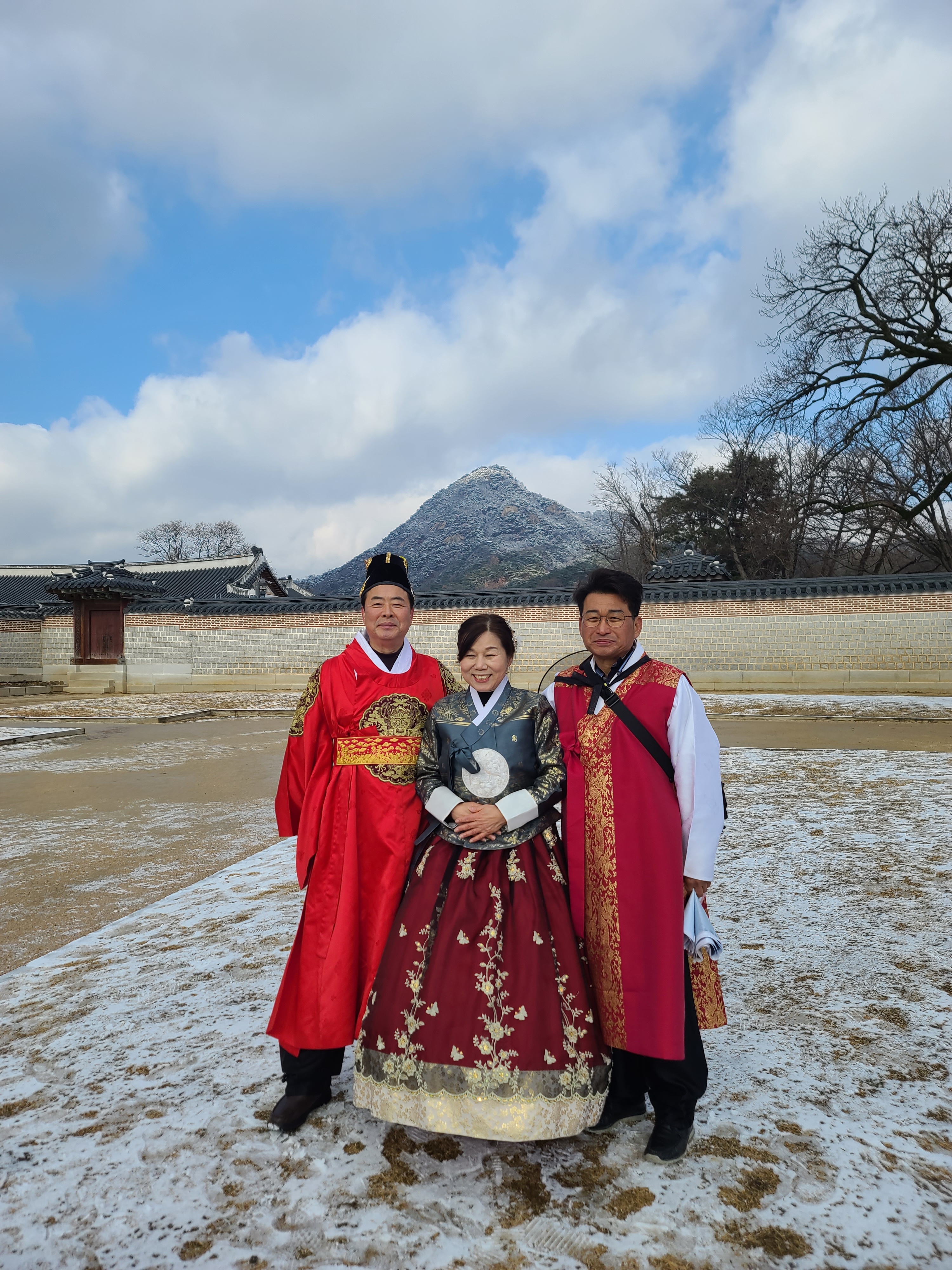 도포사람들의 2025년도 한 해를 마감하는 멋진 피날레를 경복궁 한복체험으로 산악회 행사를 갈무리했다. 그들은 지인들과 함께 경복궁 탐방을 위한 한복을 입고 〈도포자락 휘날리며〉 드라마를 촬영하듯이 궁궐을 배경으로 연기를 해보였다.