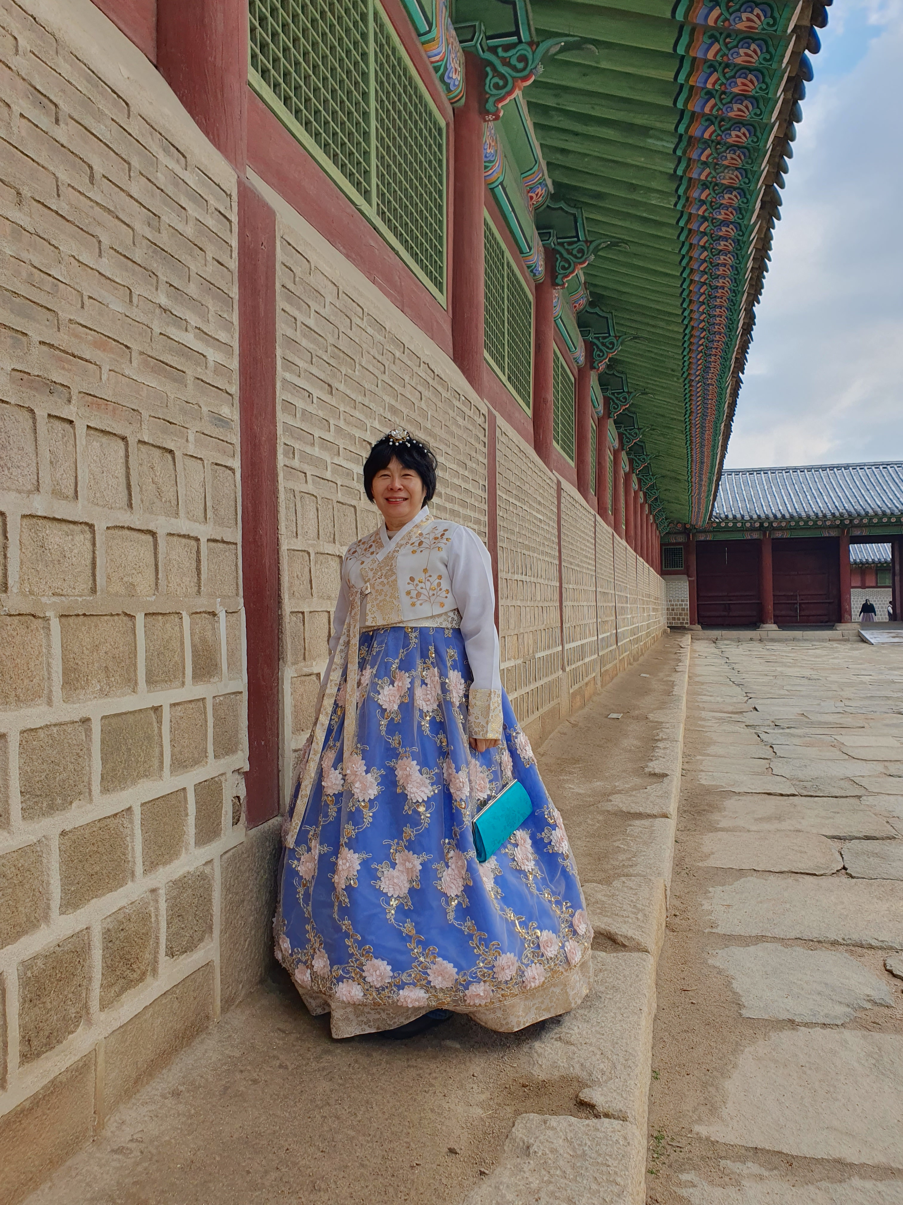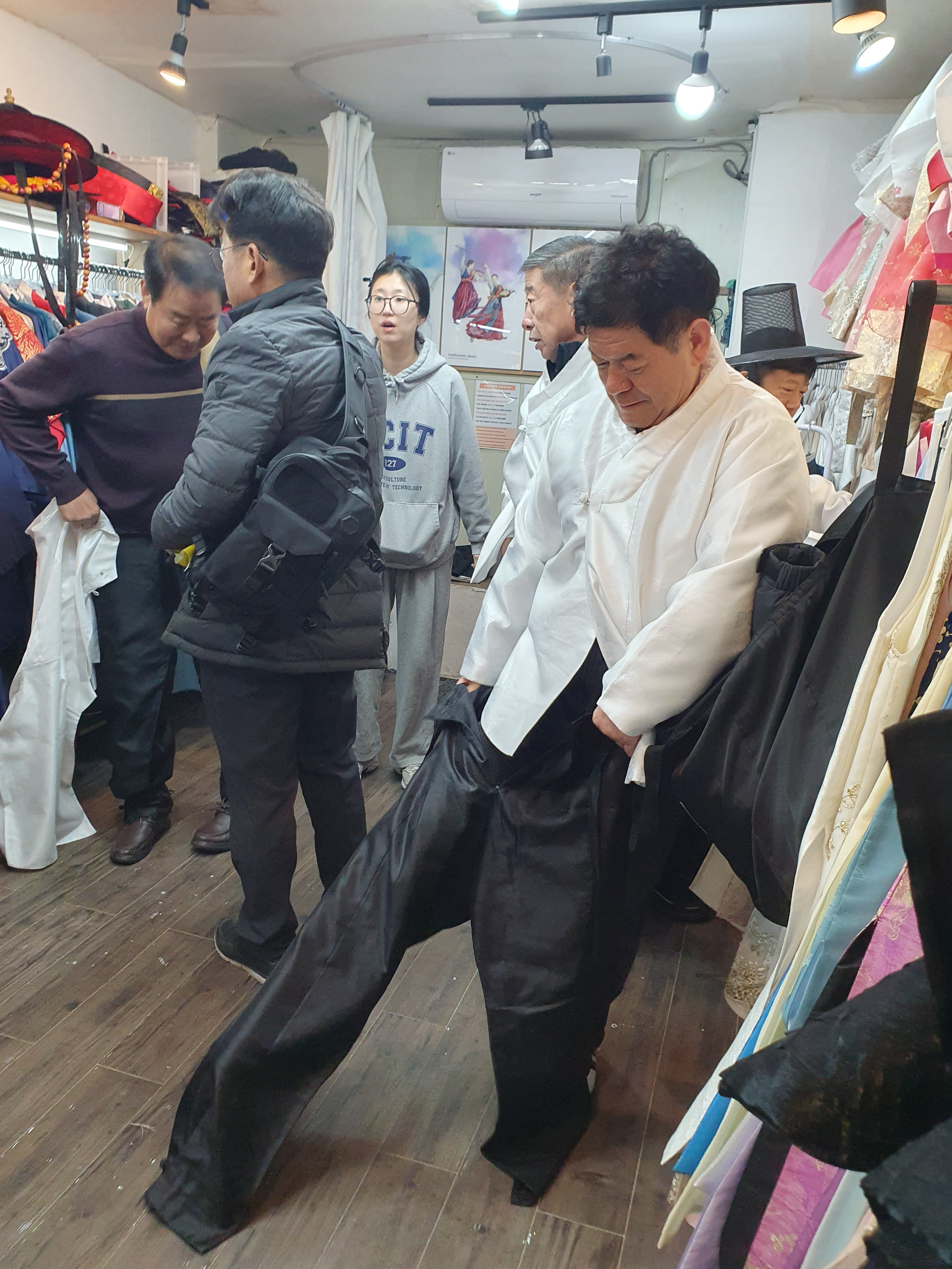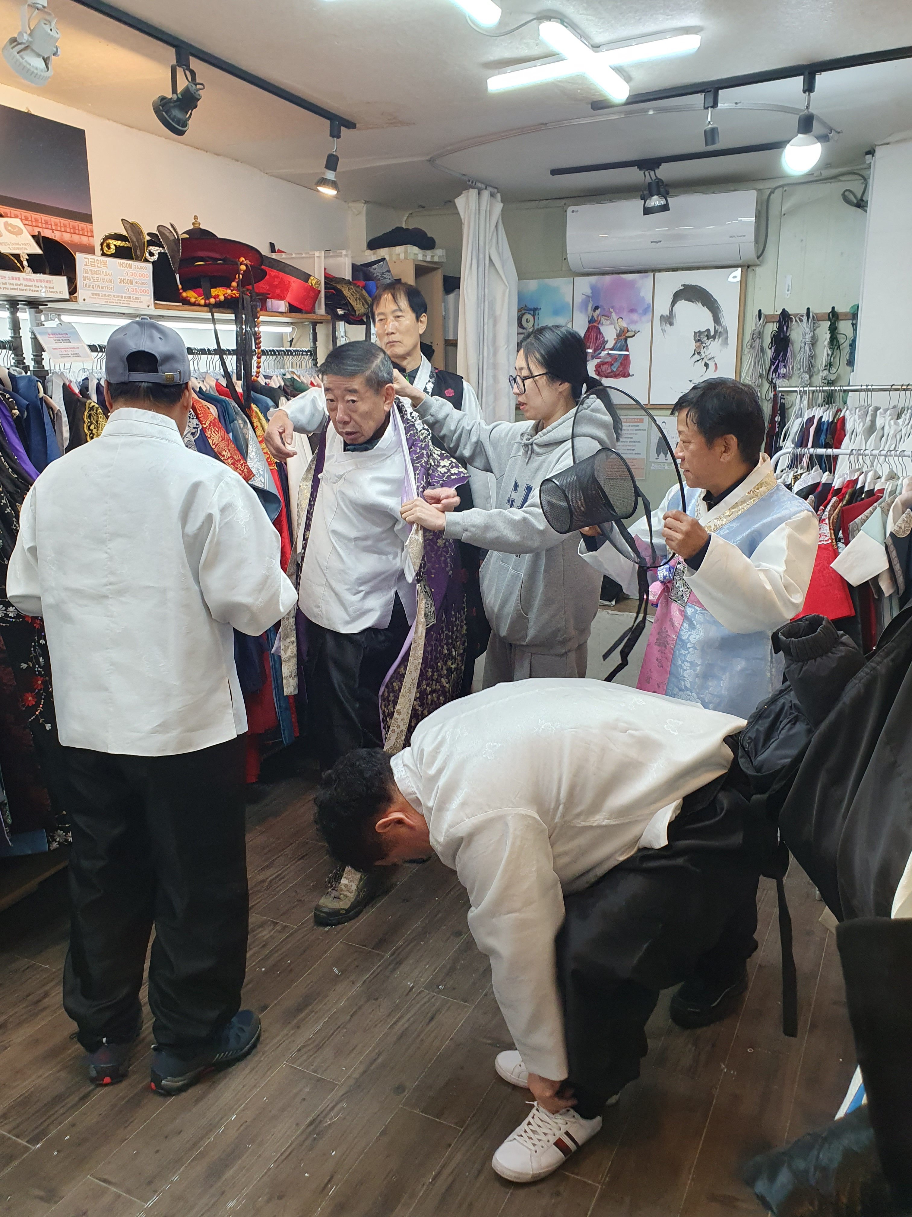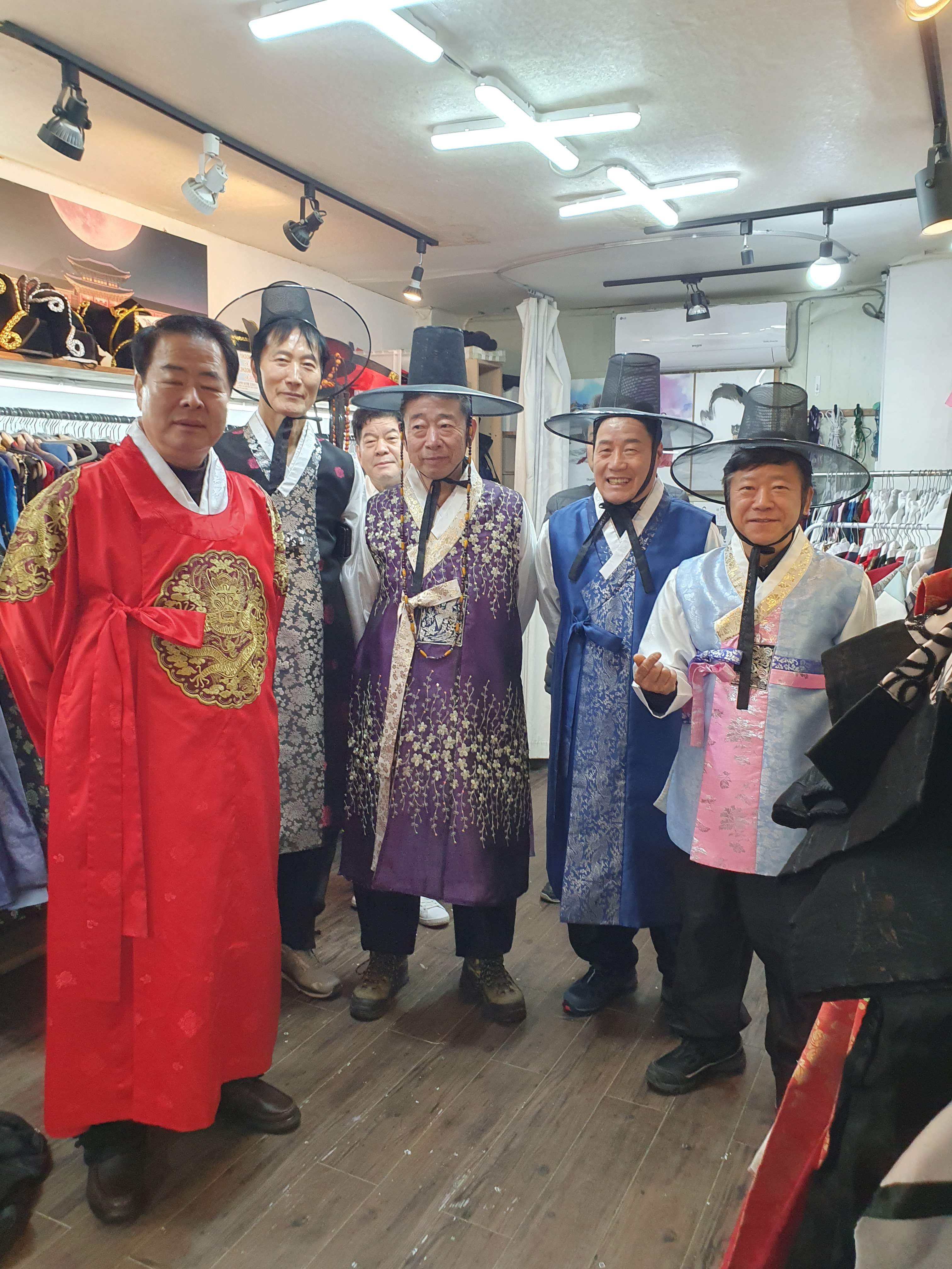 한복이 너무 우아하고 아름다운 게 많아서 고르기 힘드니까 미리 어떤 색으로 입을지 정했더라면 좋으련만, 그런 깊은 생각까지 못해 한복 고르는데 좀 시간이 걸렸지만, 자신이 선택한 한복을 입고 누구는 왕과 왕비인양, 누구는 궁궐 여인으로, 누구는 선비로, 누구는 부자 집 귀부인으로 옷맵시를 뽐내면서 조선시대로 돌아가 보았다.