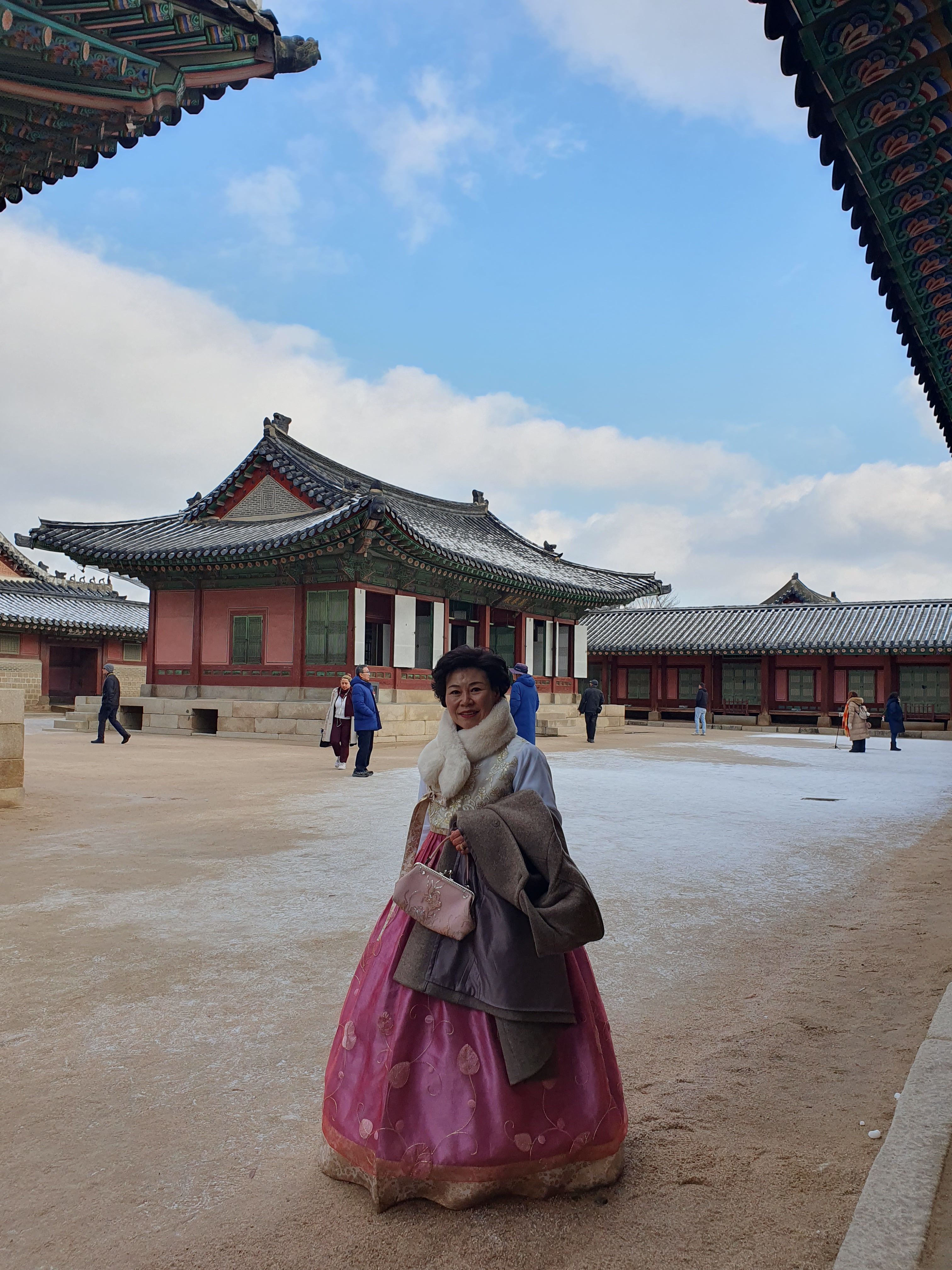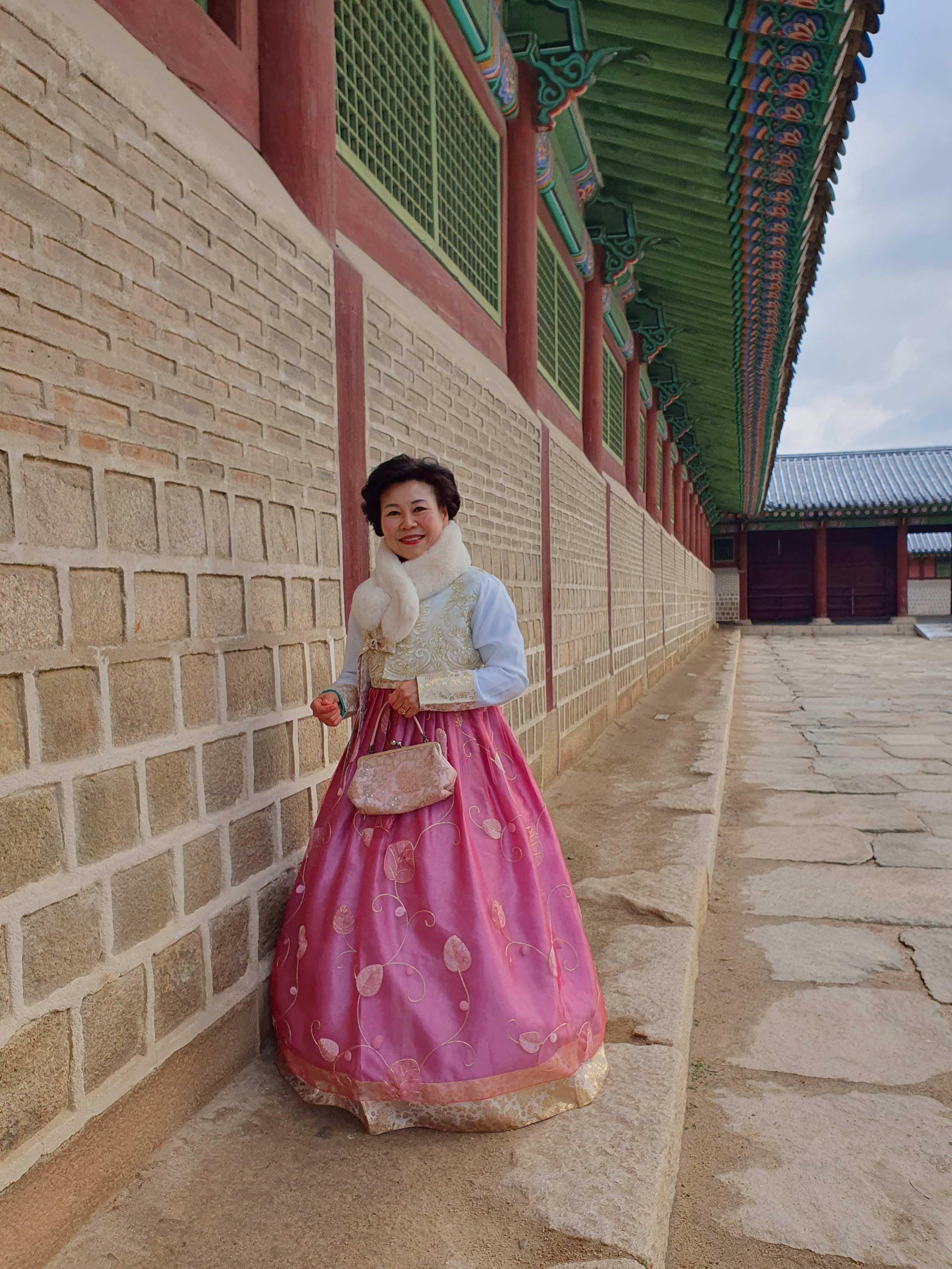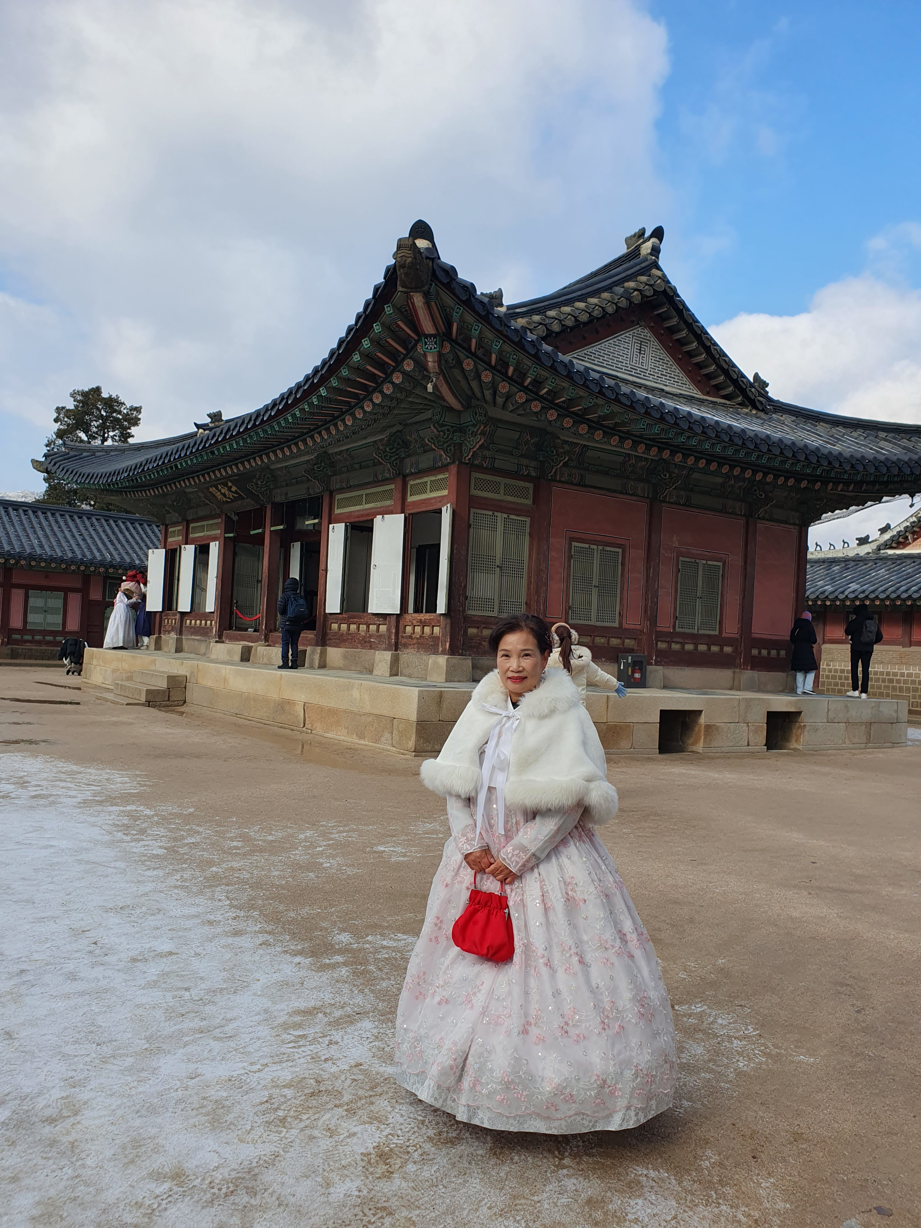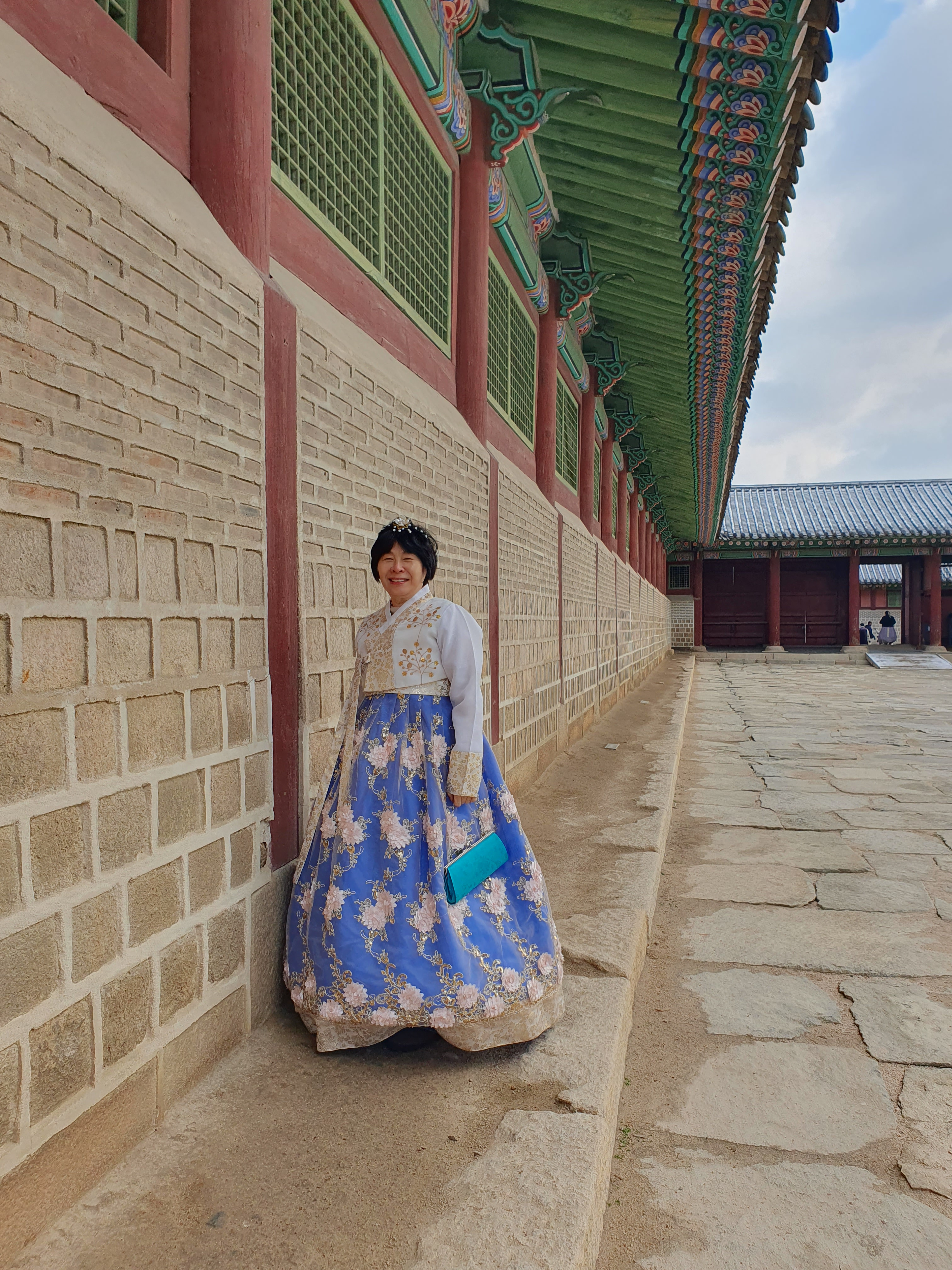 한복이 너무 우아하고 아름다운 게 많아서 고르기 힘드니까 미리 어떤 색으로 입을지 정했더라면 좋으련만, 그런 깊은 생각까지 못해 한복 고르는데 좀 시간이 걸렸지만, 자신이 선택한 한복을 입고 누구는 왕과 왕비인양, 누구는 궁궐 여인으로, 누구는 선비로, 누구는 부자 집 귀부인으로 옷맵시를 뽐내면서 조선시대로 돌아가 보았다.