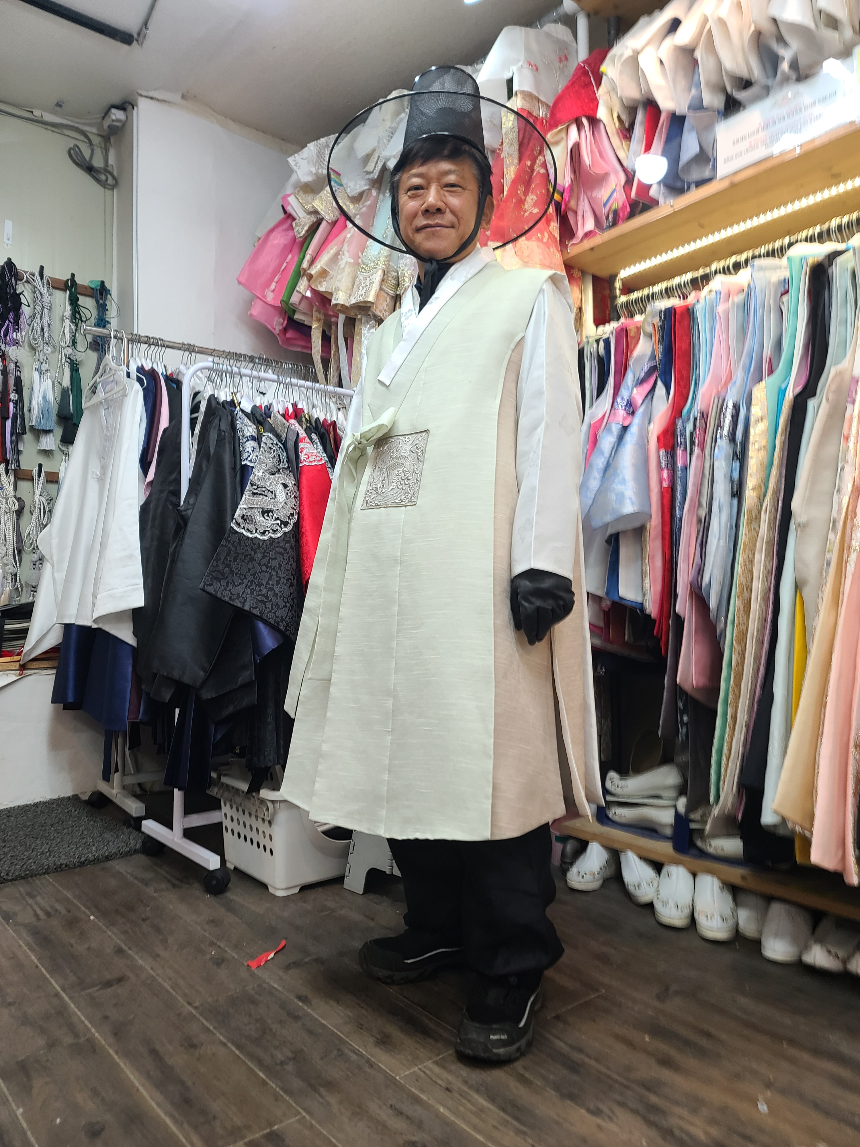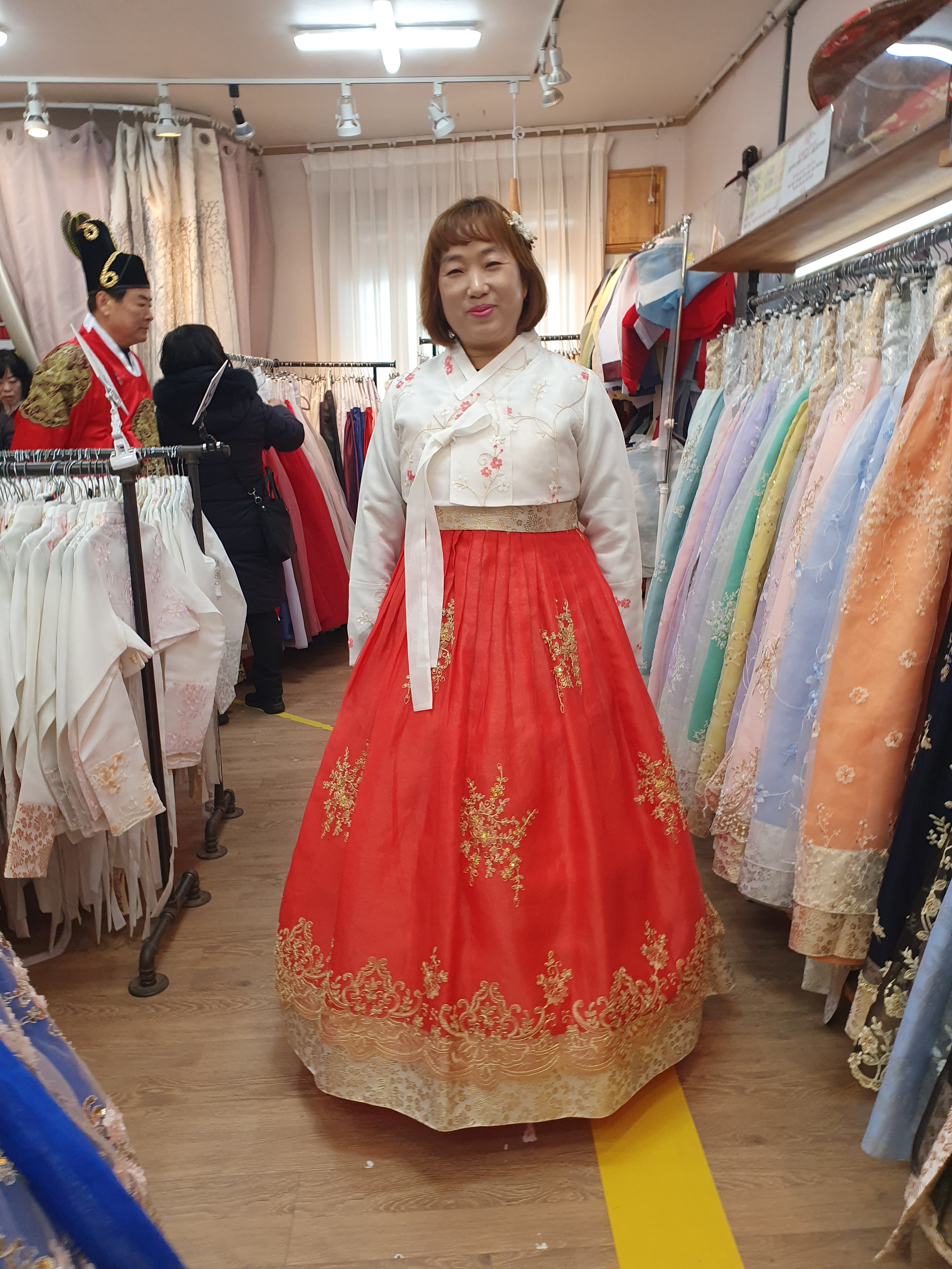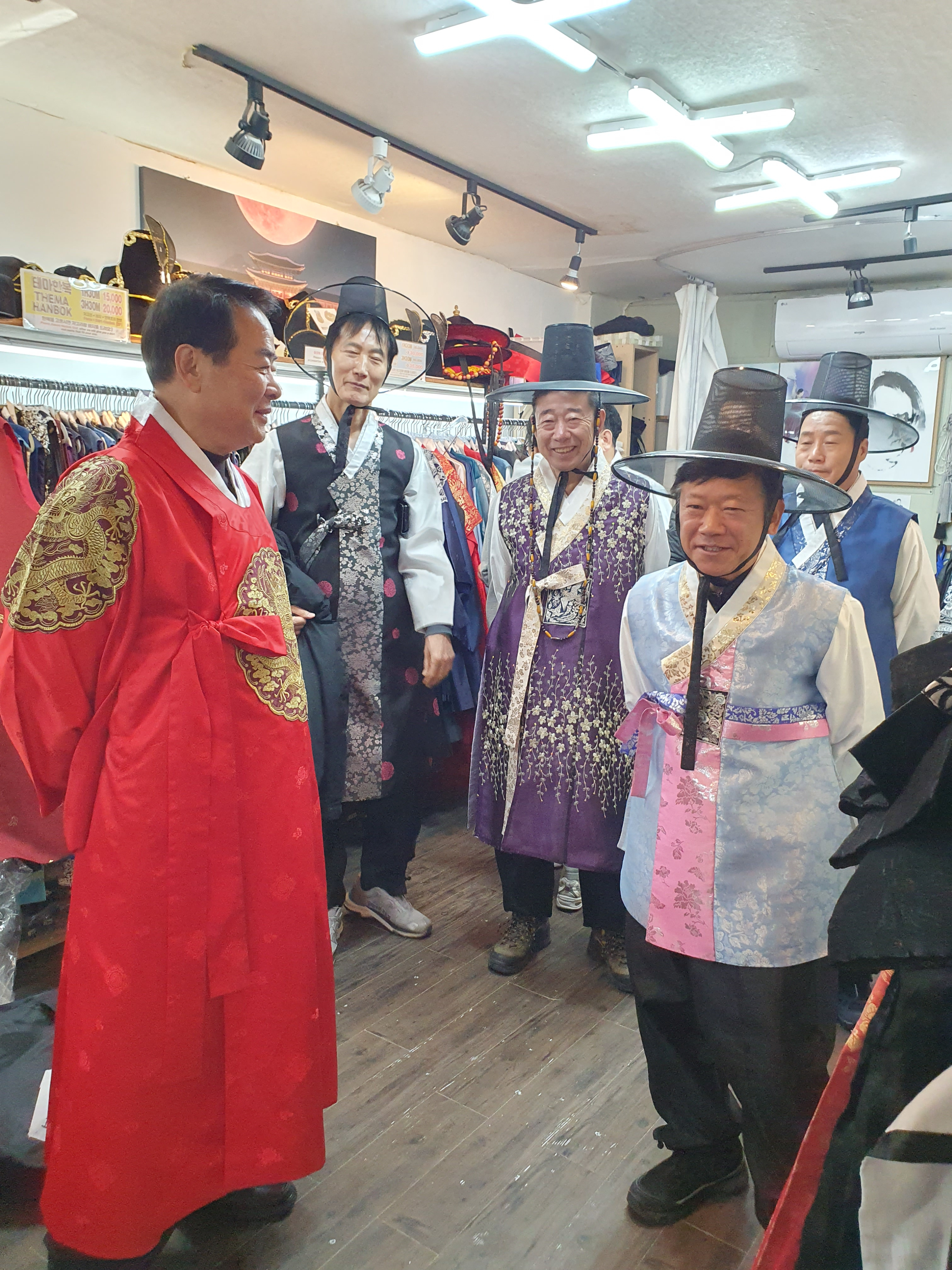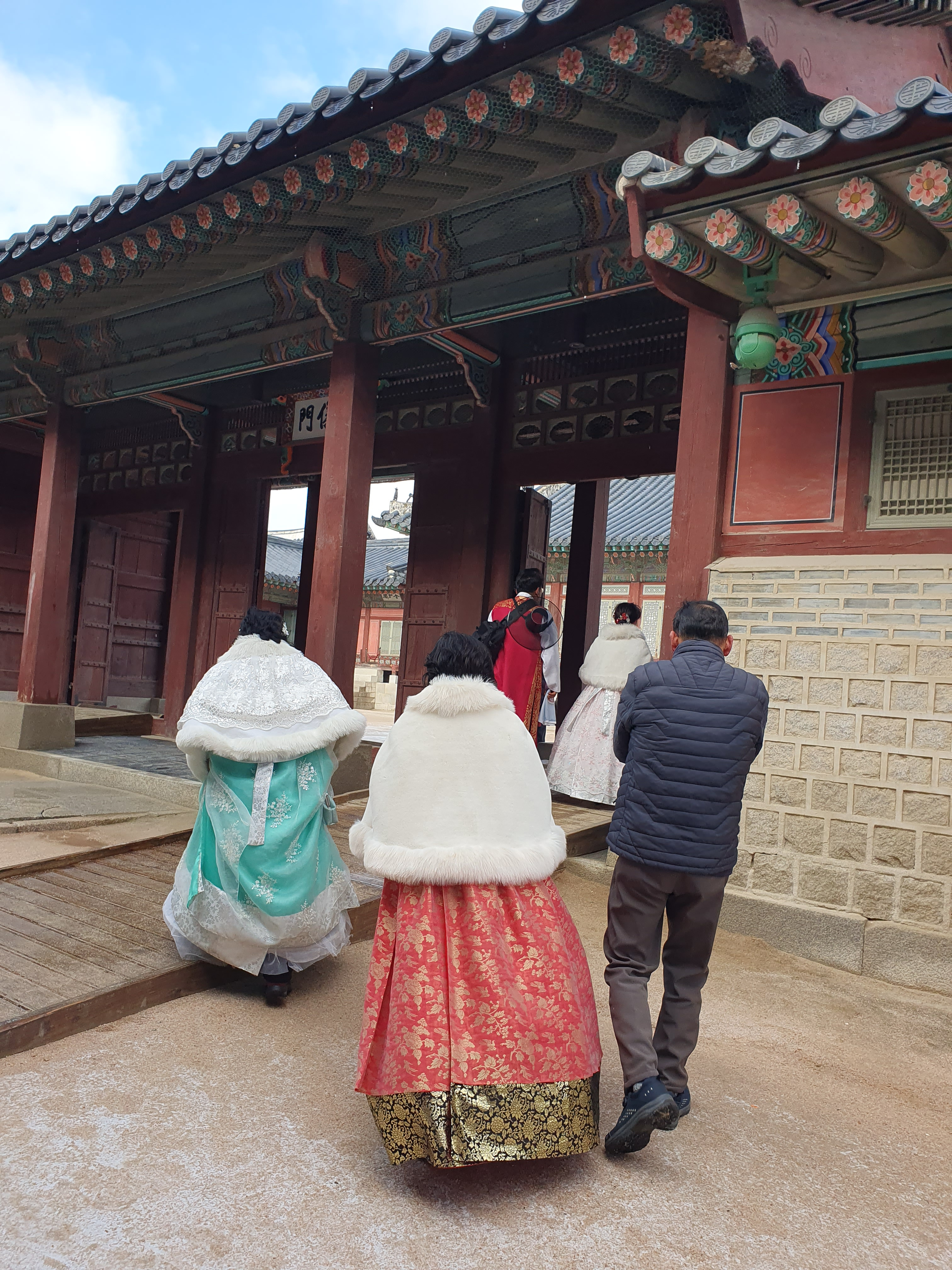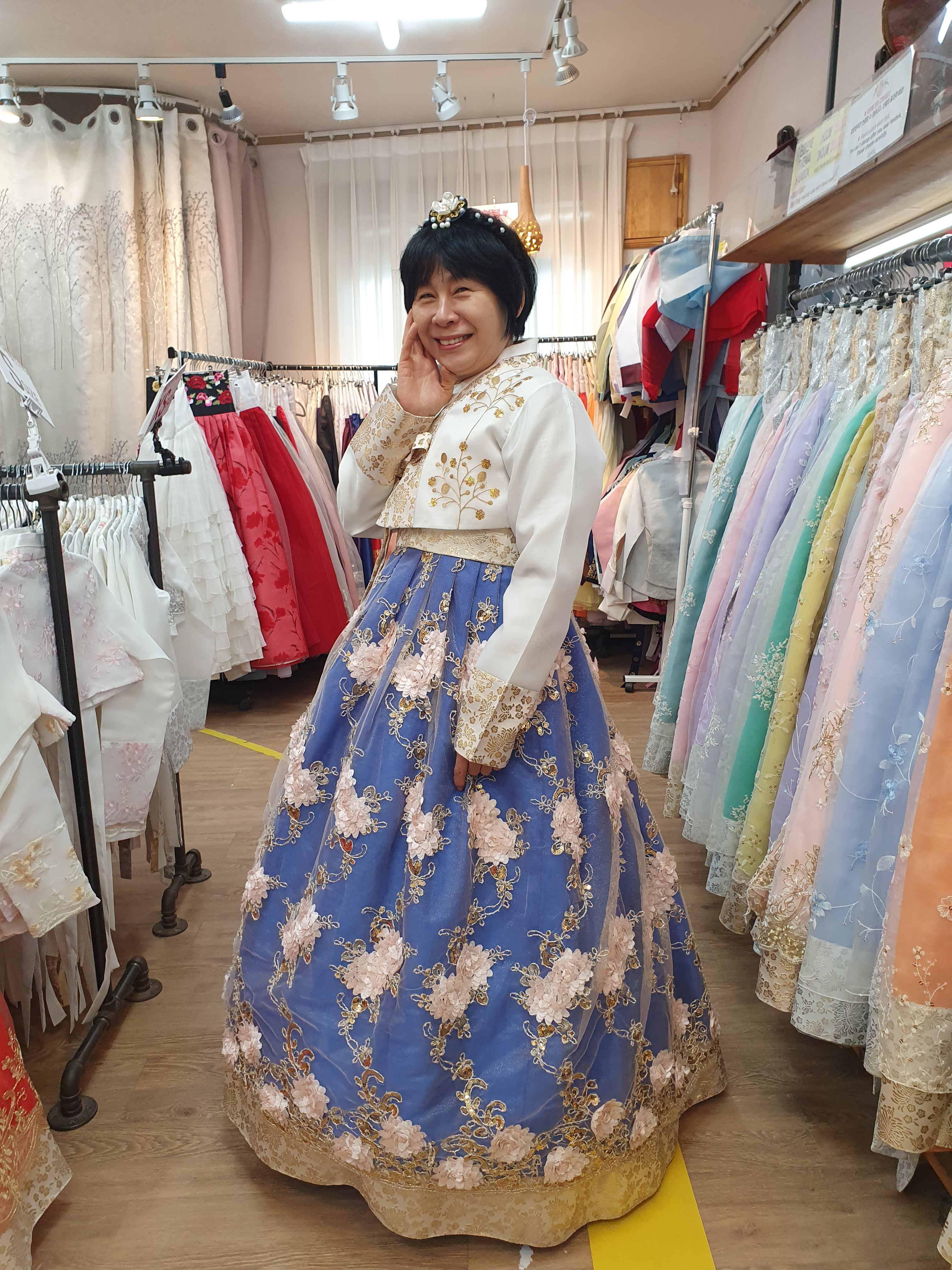 한복이 너무 우아하고 아름다운 게 많아서 고르기 힘드니까 미리 어떤 색으로 입을지 정했더라면 좋으련만, 그런 깊은 생각까지 못해 한복 고르는데 좀 시간이 걸렸지만, 자신이 선택한 한복을 입고 누구는 왕과 왕비인양, 누구는 궁궐 여인으로, 누구는 선비로, 누구는 부자 집 귀부인으로 옷맵시를 뽐내면서 조선시대로 돌아가 보았다.
