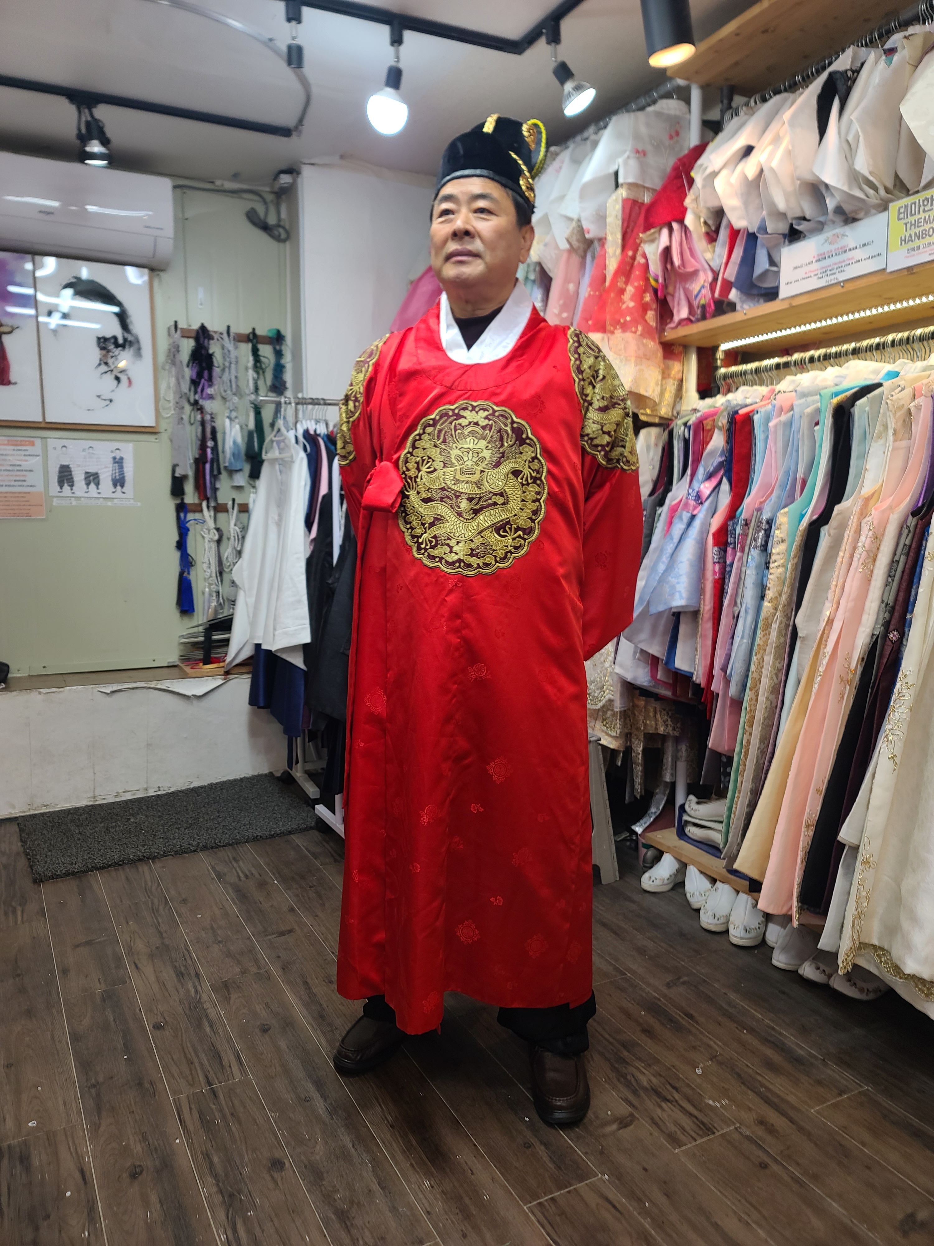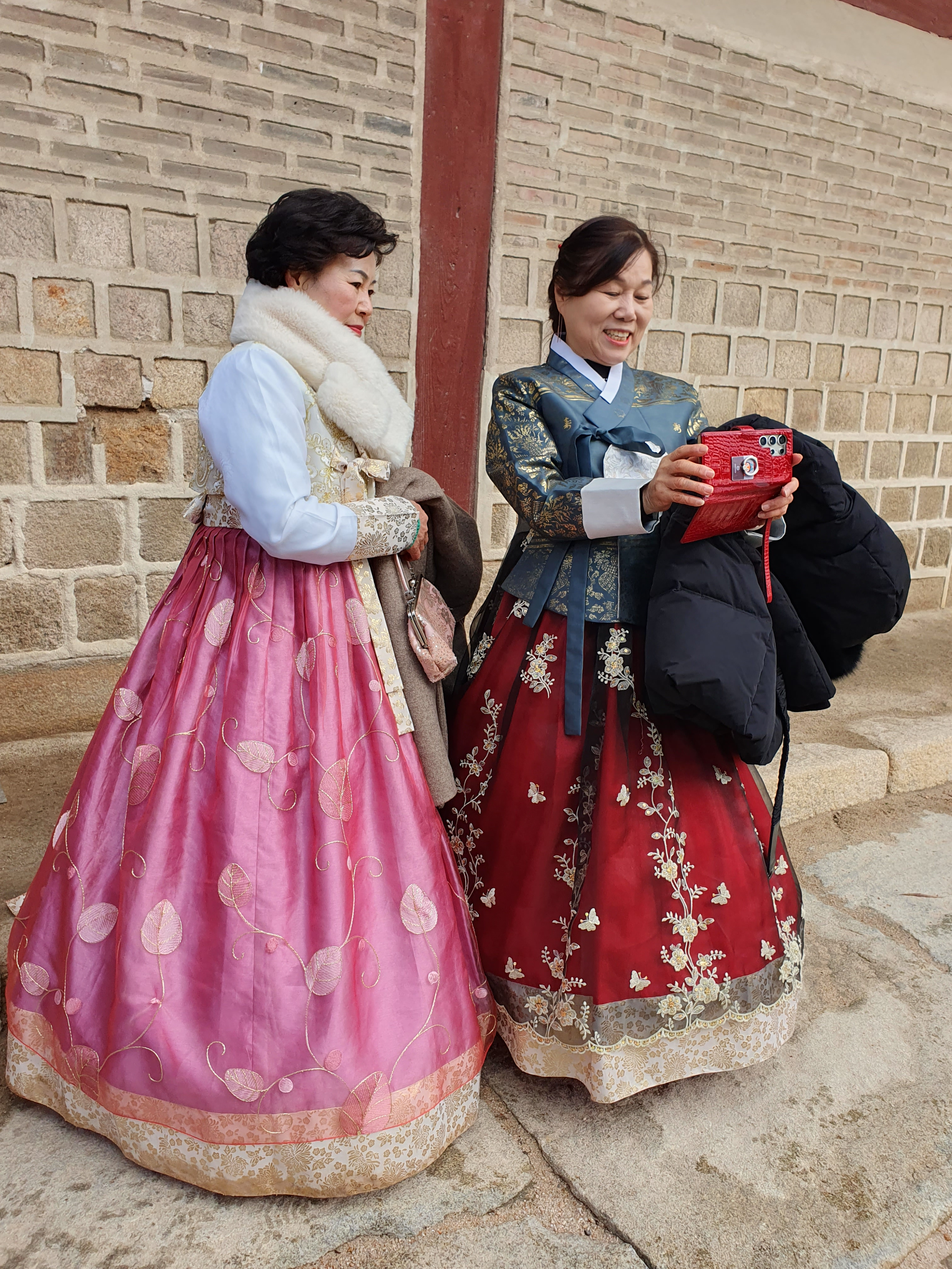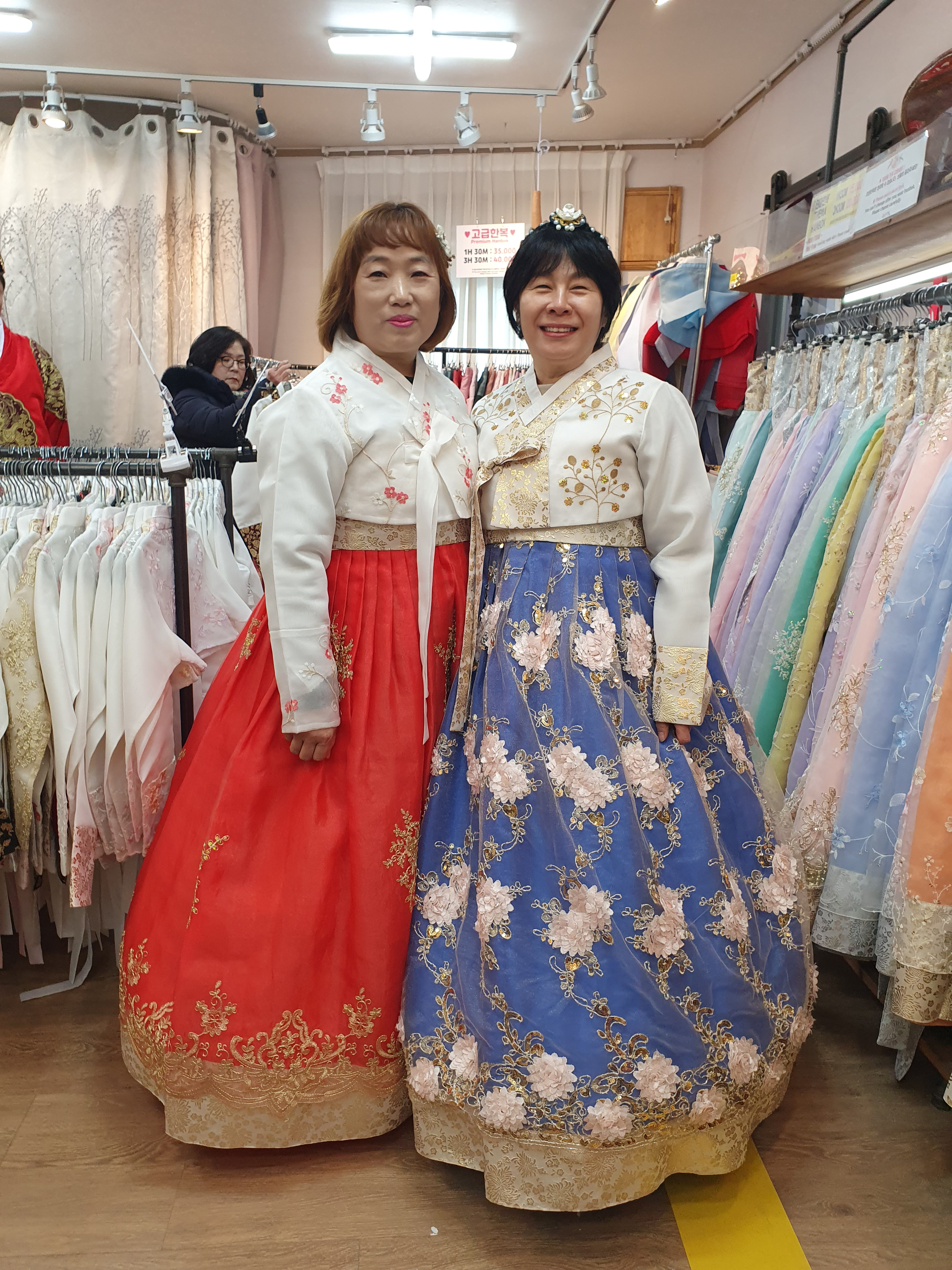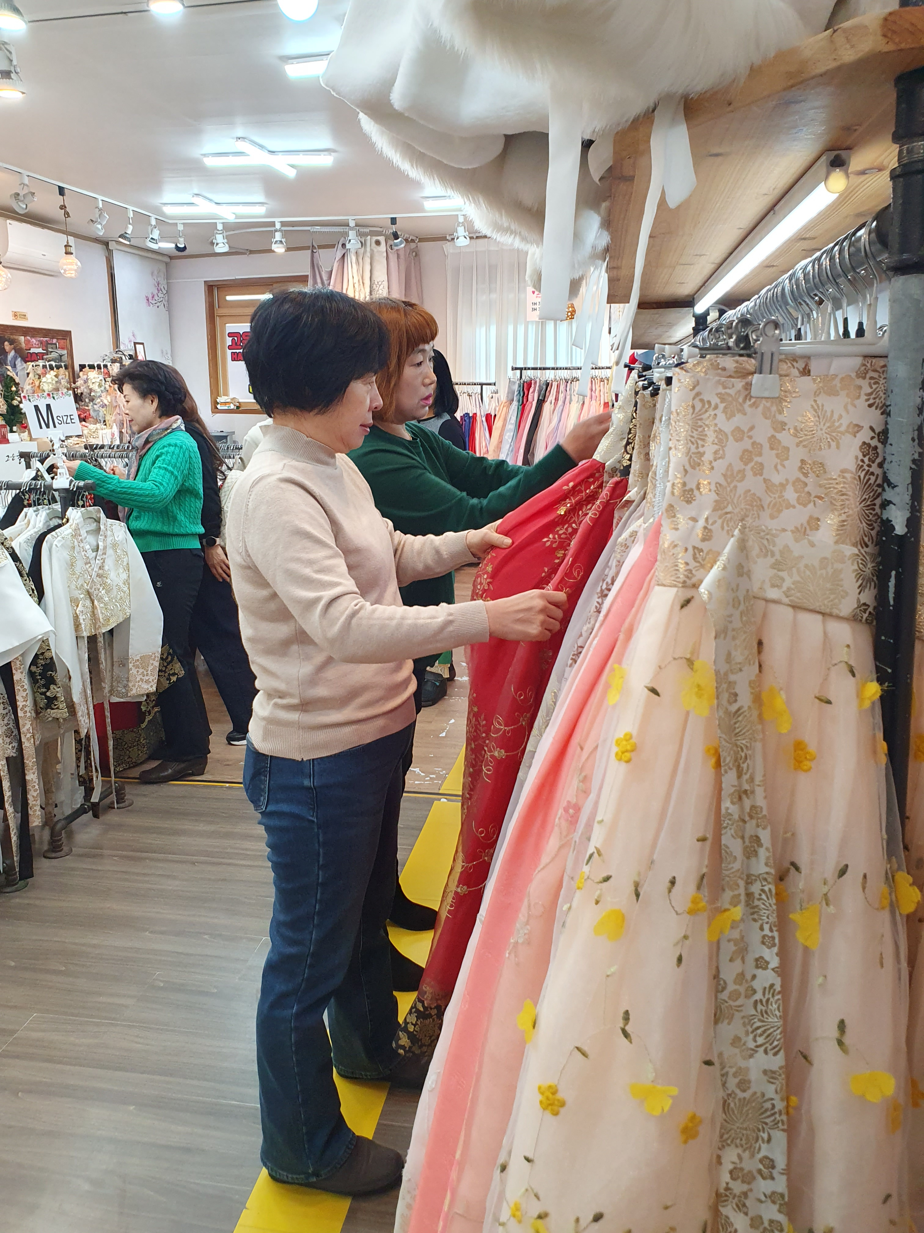 한복이 너무 우아하고 아름다운 게 많아서 고르기 힘드니까 미리 어떤 색으로 입을지 정했더라면 좋으련만, 그런 깊은 생각까지 못해 한복 고르는데 좀 시간이 걸렸지만, 자신이 선택한 한복을 입고 누구는 왕과 왕비인양, 누구는 궁궐 여인으로, 누구는 선비로, 누구는 부자 집 귀부인으로 옷맵시를 뽐내면서 조선시대로 돌아가 보았다.