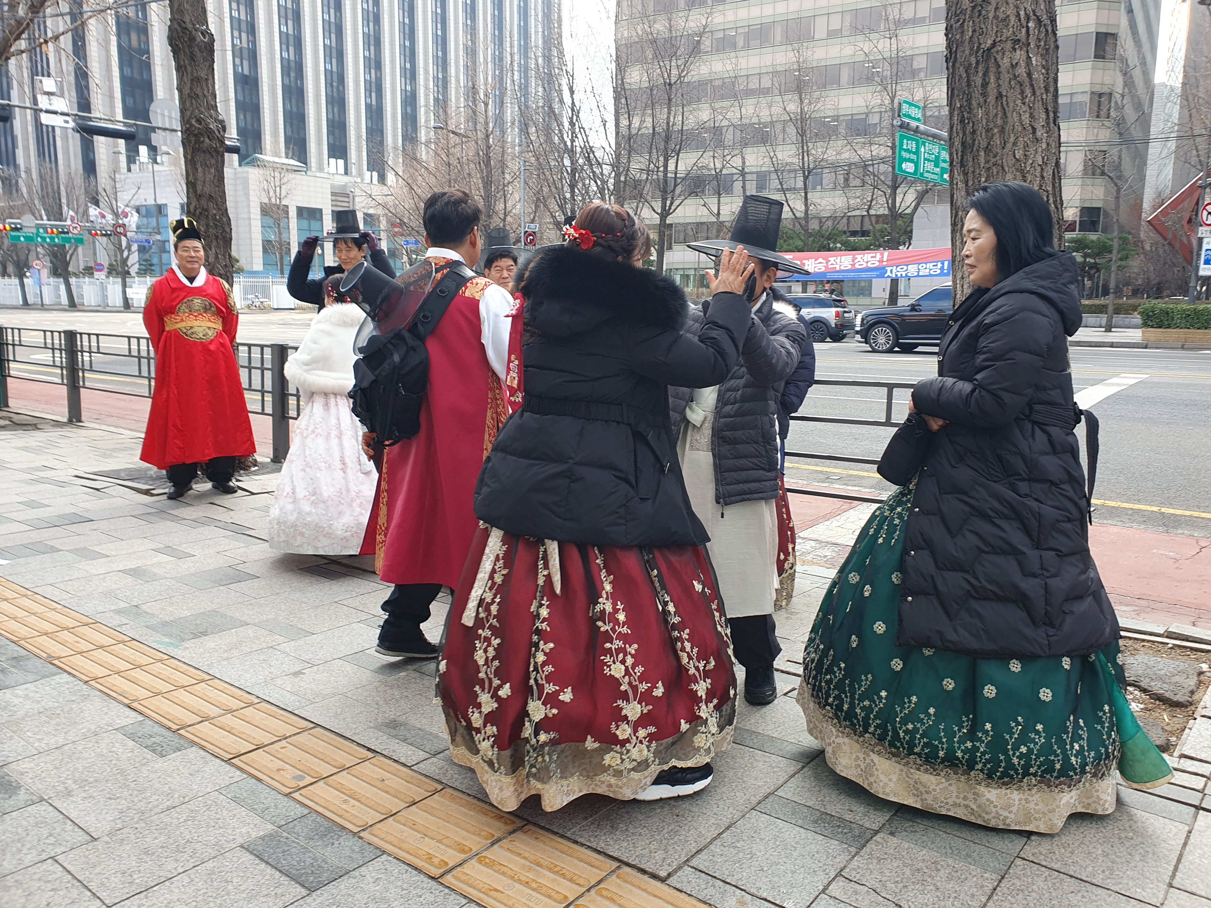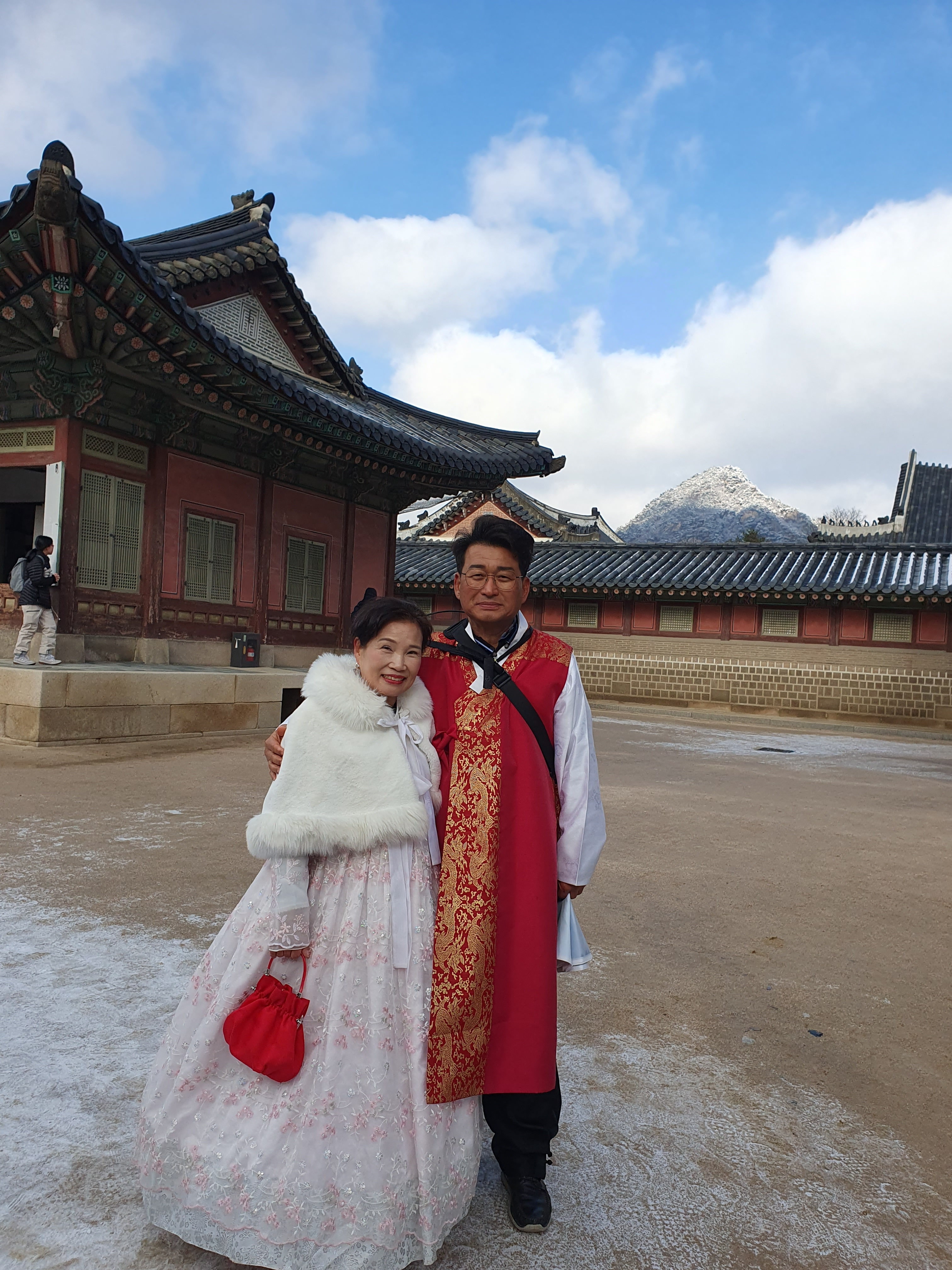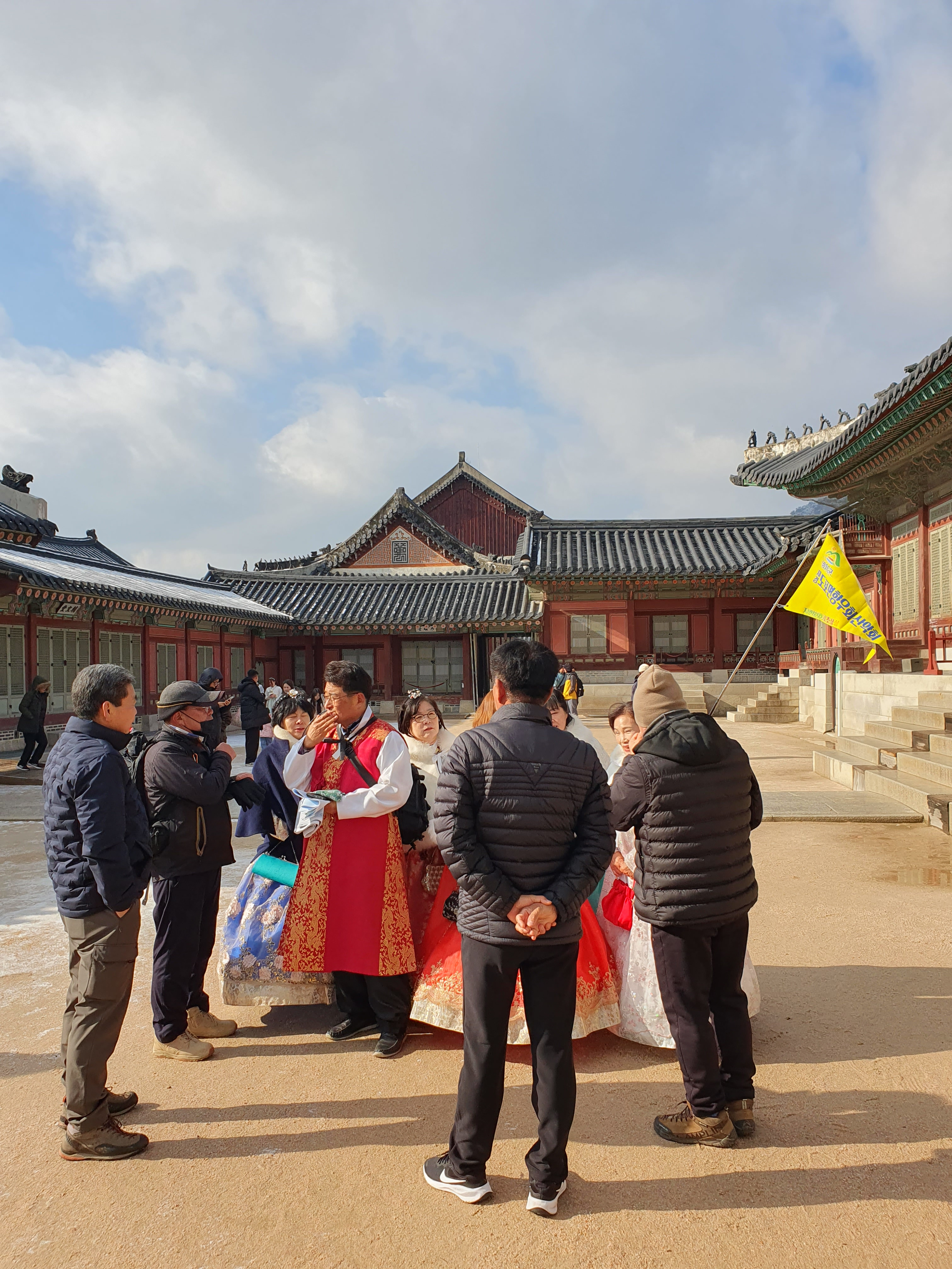 내 인생 최고의 날은 오늘이었다고, 그들이 손가락 하트를 해 보이는 모습은 한 겨울에 피어난 강인함과 변치 않는 사람을 상징하는 ‘동백꽃’ 이 피어난 듯했다. 〈도포자락 휘날리며〉 경복궁 한복체험, 없었던 날로 기억되는 도포역사에 길이 남을 순간을 만들어냈다.