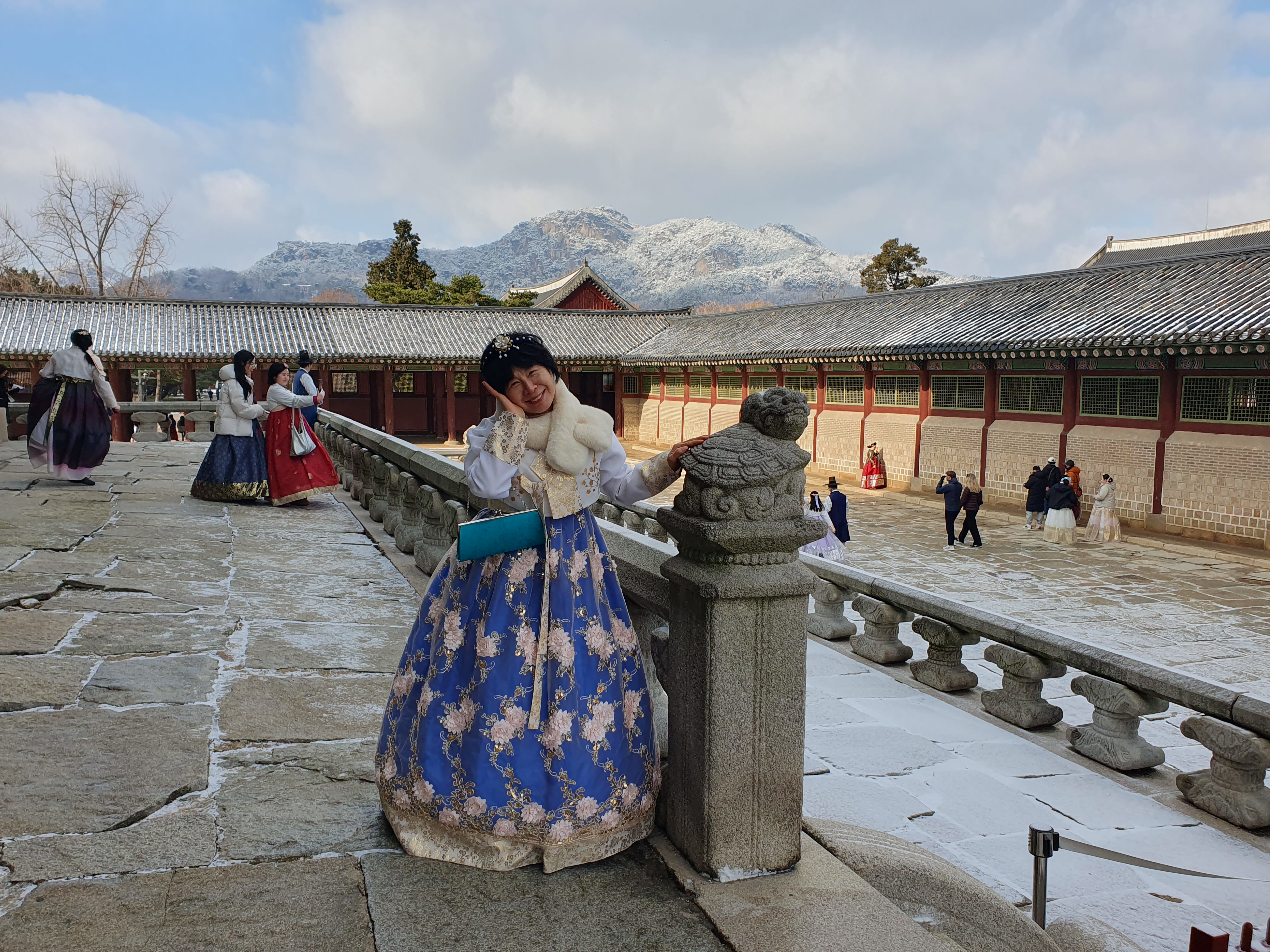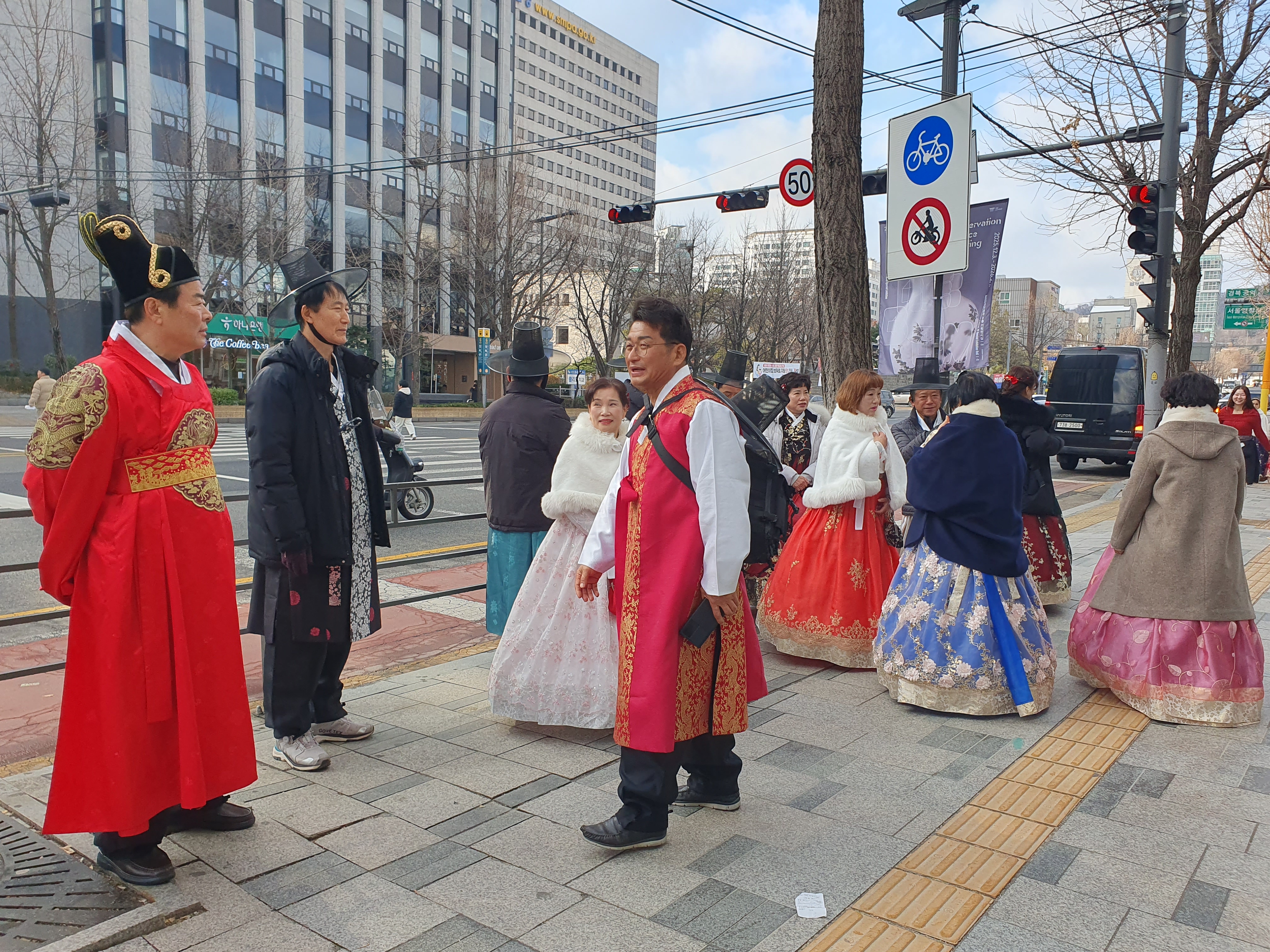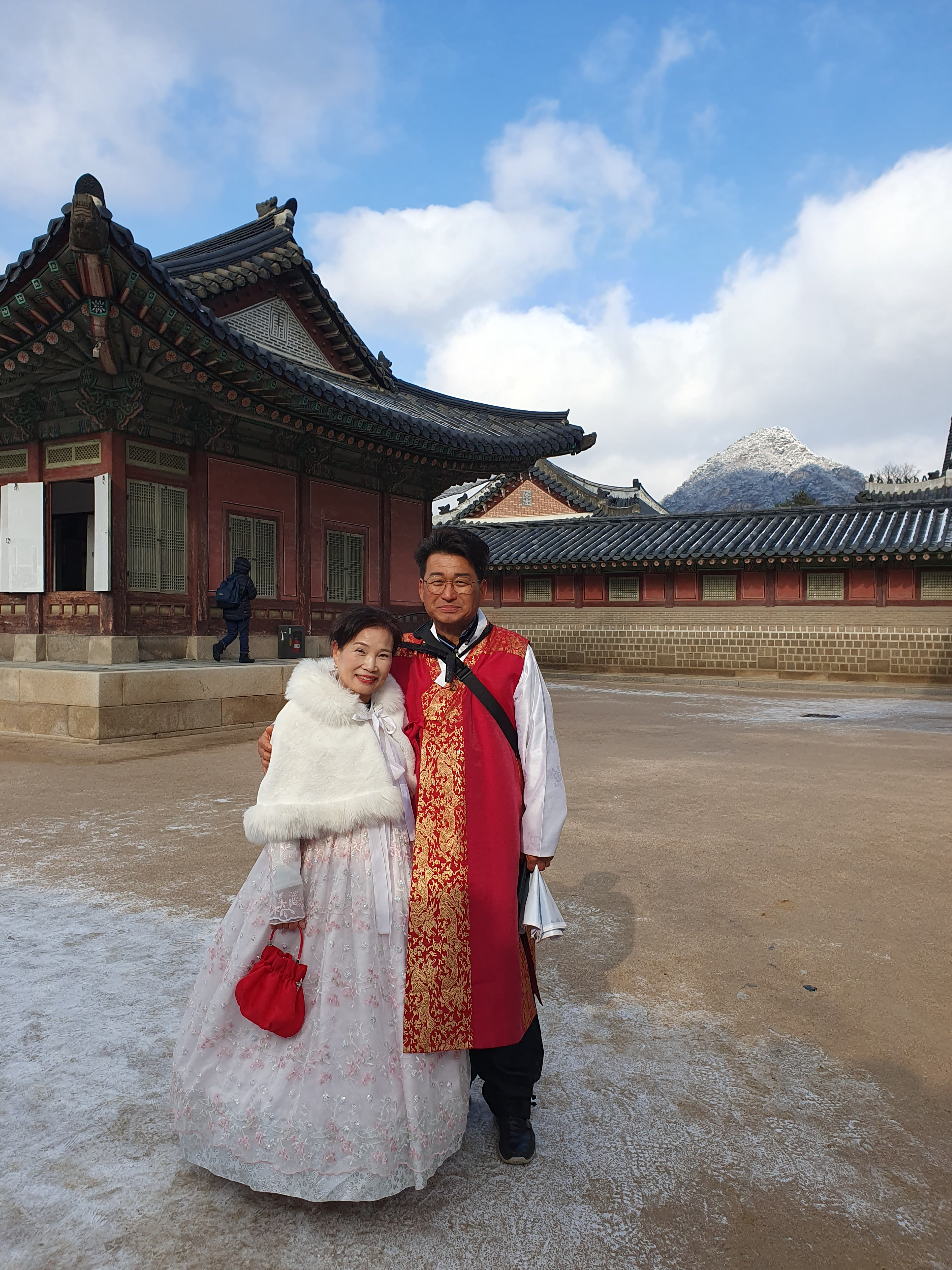내 인생 최고의 날은 오늘이었다고, 그들이 손가락 하트를 해 보이는 모습은 한 겨울에 피어난 강인함과 변치 않는 사람을 상징하는 ‘동백꽃’ 이 피어난 듯했다. 〈도포자락 휘날리며〉 경복궁 한복체험, 없었던 날로 기억되는 도포역사에 길이 남을 순간을 만들어냈다.