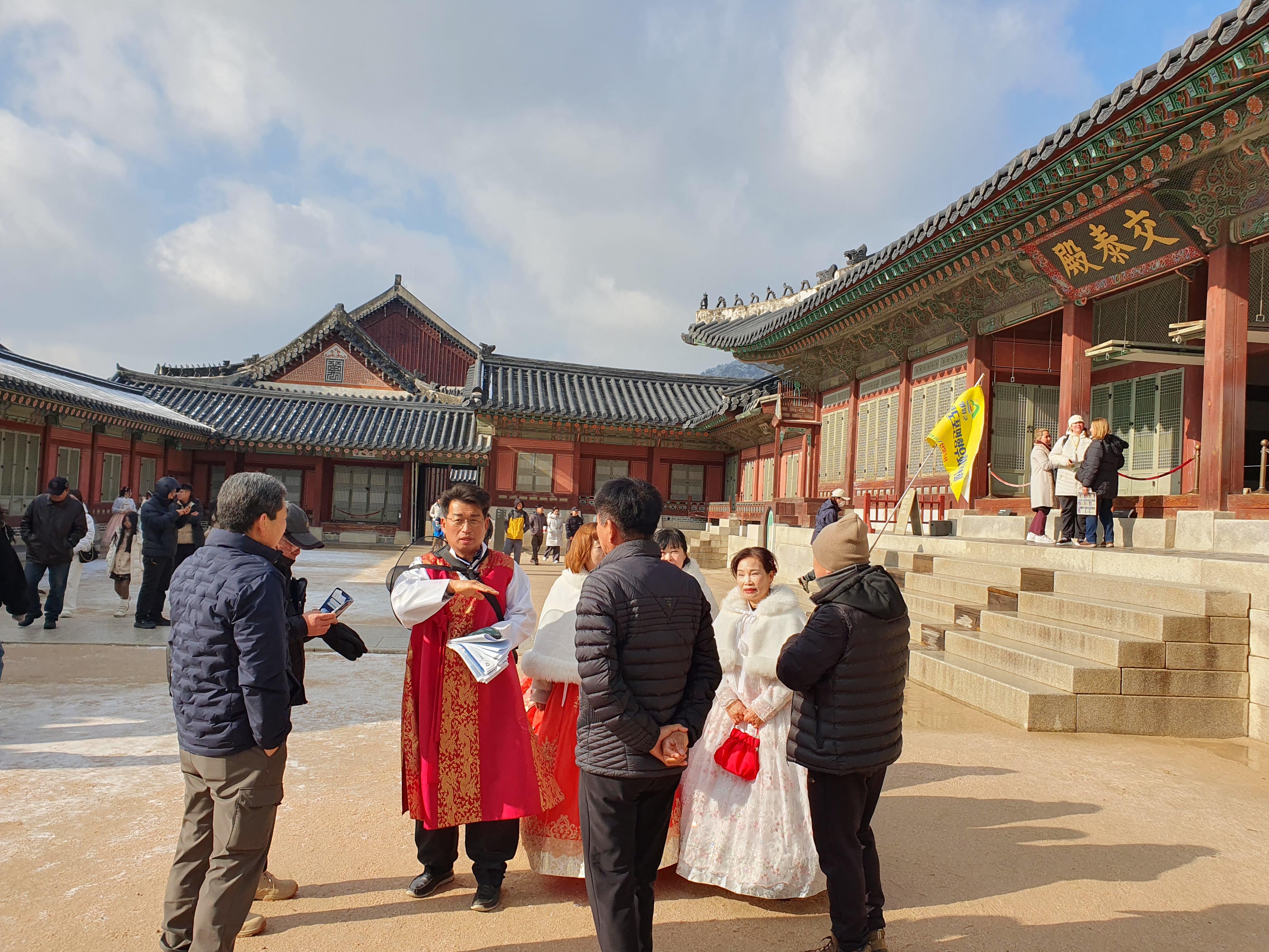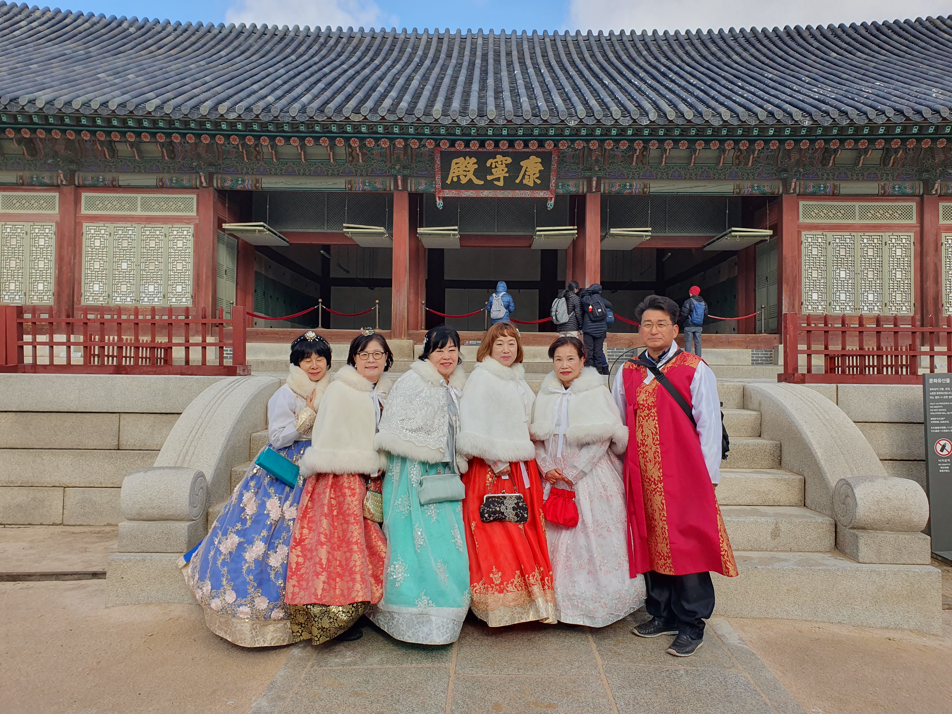 문화유산과 함께 채우는 계절의 낭만을 즐겨보겠다며, 7일 단 하루에 합복을 입고 경복궁을 답사를 한 회원들은 궁궐도 형애 그려진 옛 경복궁의 모습을 토대로 아직 복원 안 된 건물까지 이곳에 무엇이 있는지를 살펴보았다. 궁궐이 어떤 사람들에 위해 어떻게 운영되었는지에 대해서 이야기를 하면서 그 자취들을 살펴보았다. 그리고 정전, 편전, 침전, 경회루, 향원정 일대까지 둘러보는 특별한 산책을 했다. 그런 후 광화문을 빠져 나와 종로 인사동에 있는 ‘옥정’ 한정식에서 뒤풀이 시간을 가지면서 2025 모든 산행을 마무리했다.