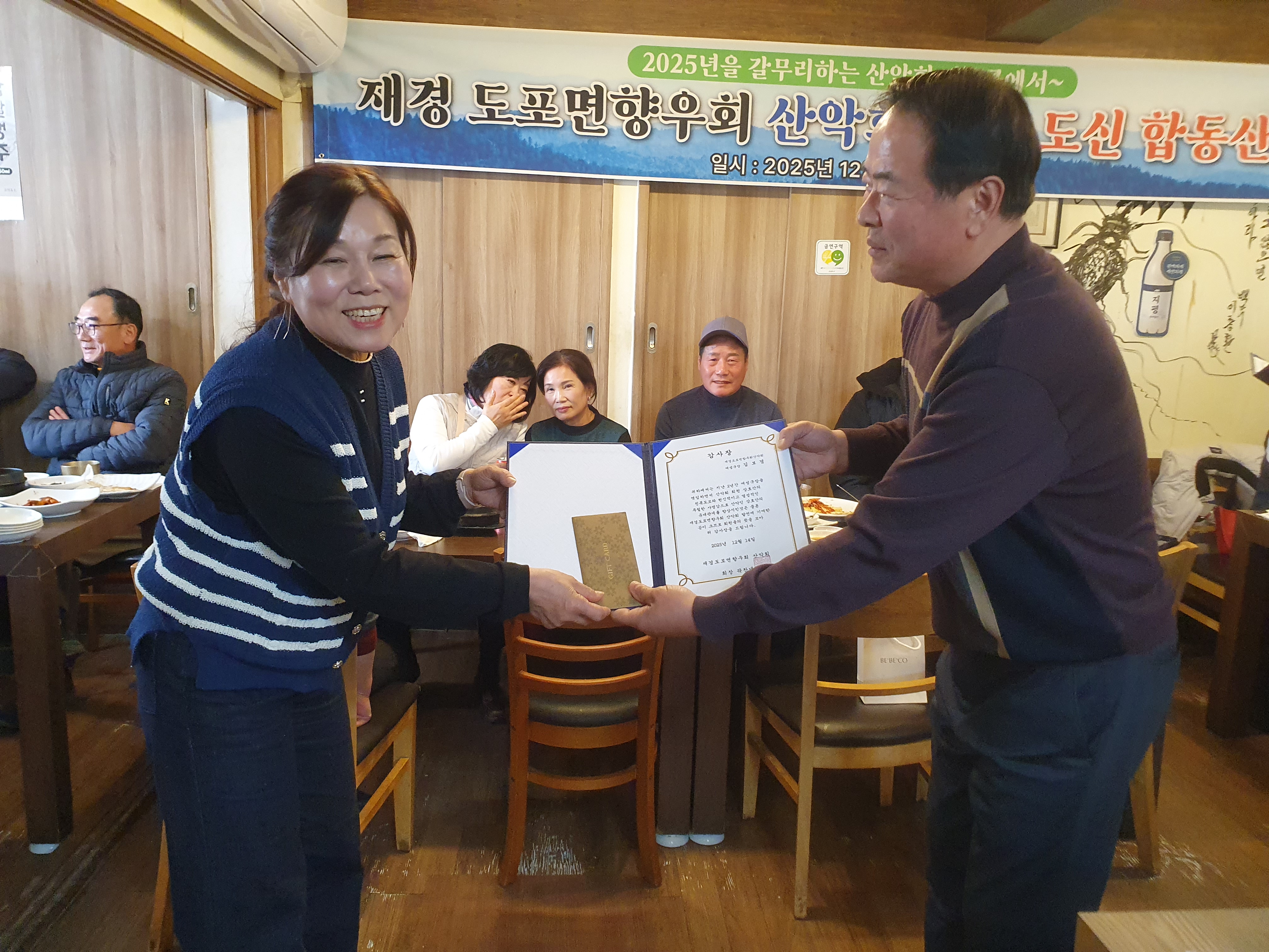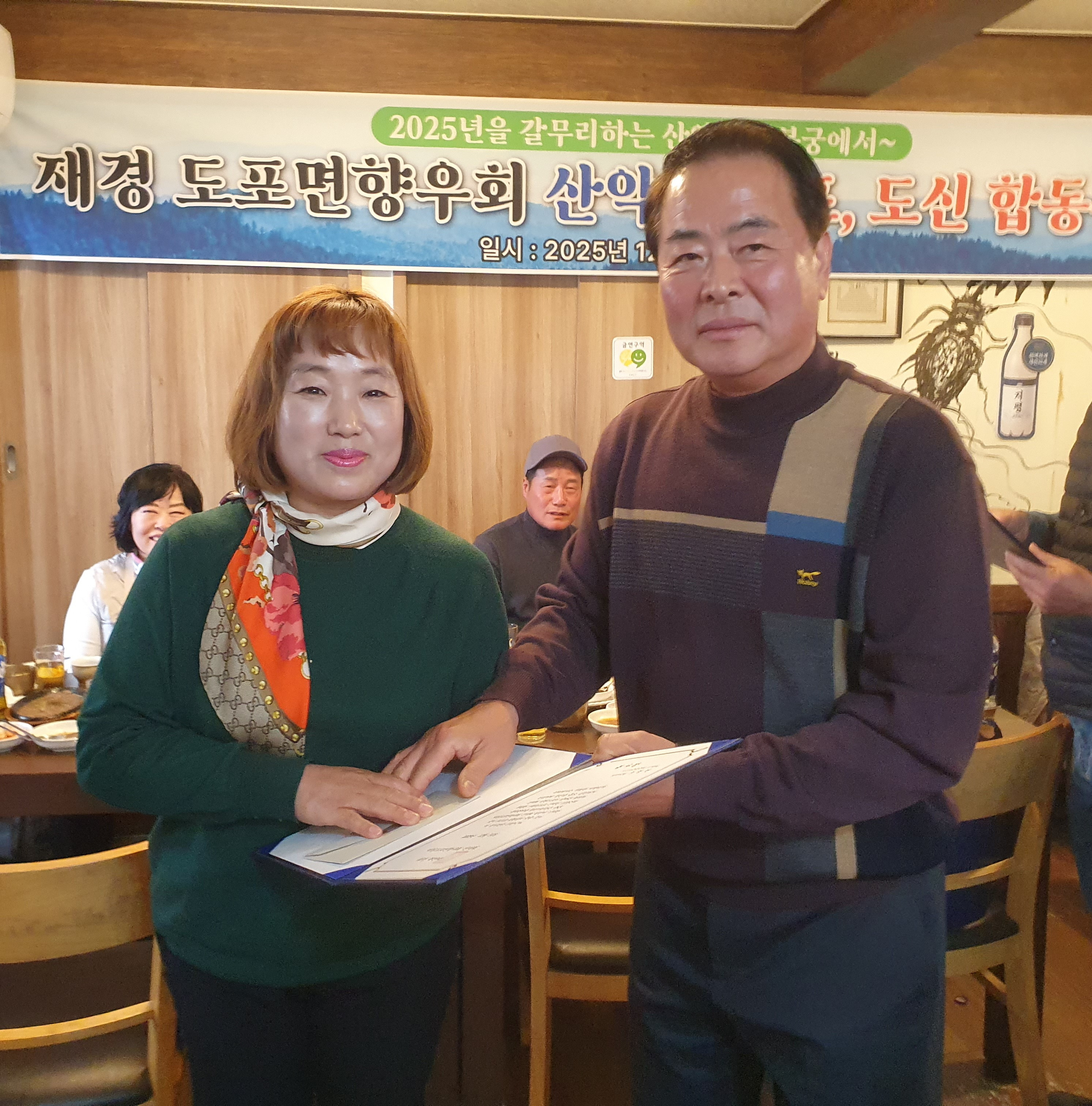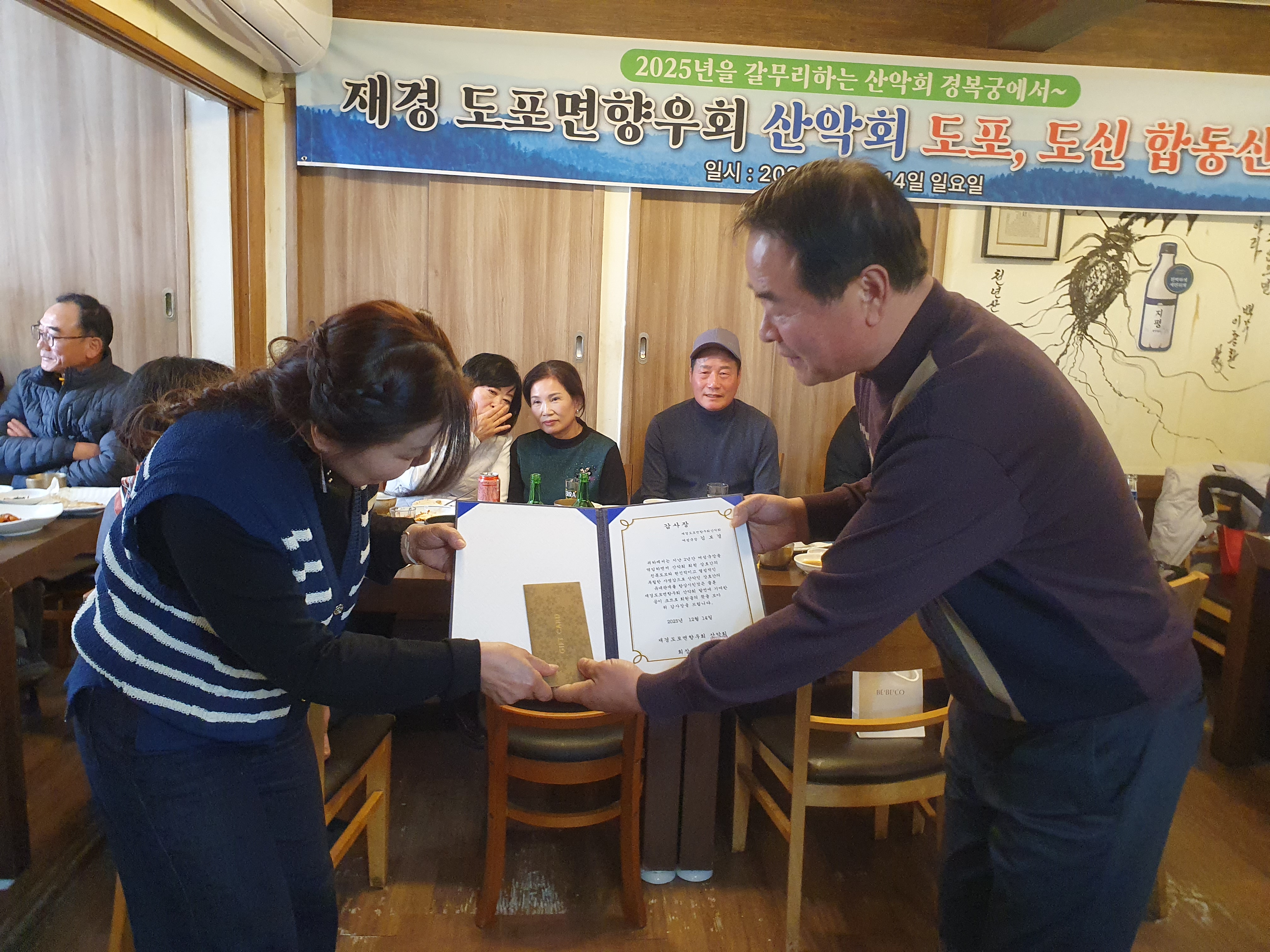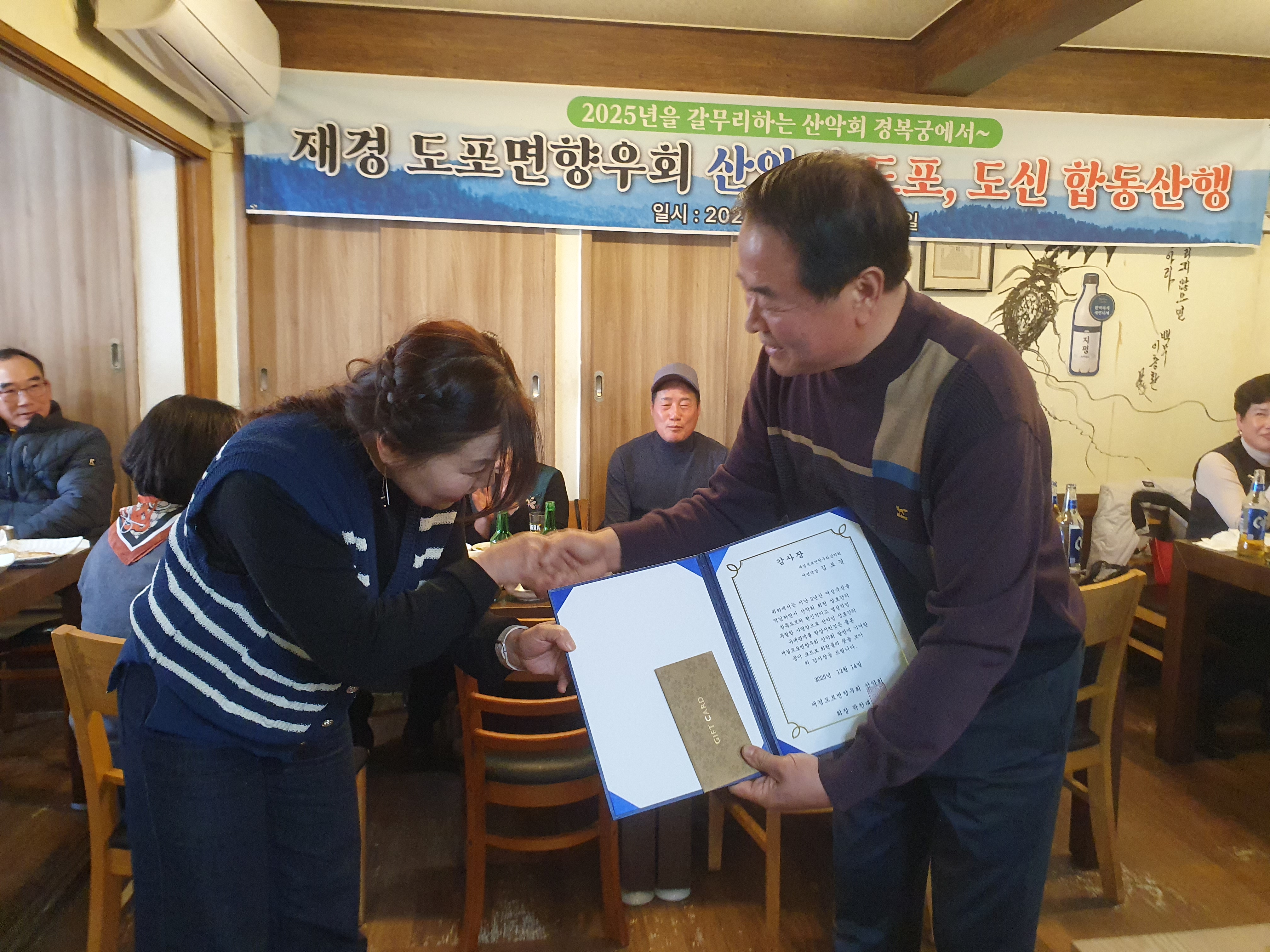 그리고 감사장에는 조영현 향우회사무국장과 김용효 산악회사무국장, 김보경 여성국장이 받았으며 부상으로 상품권을 증정했다.