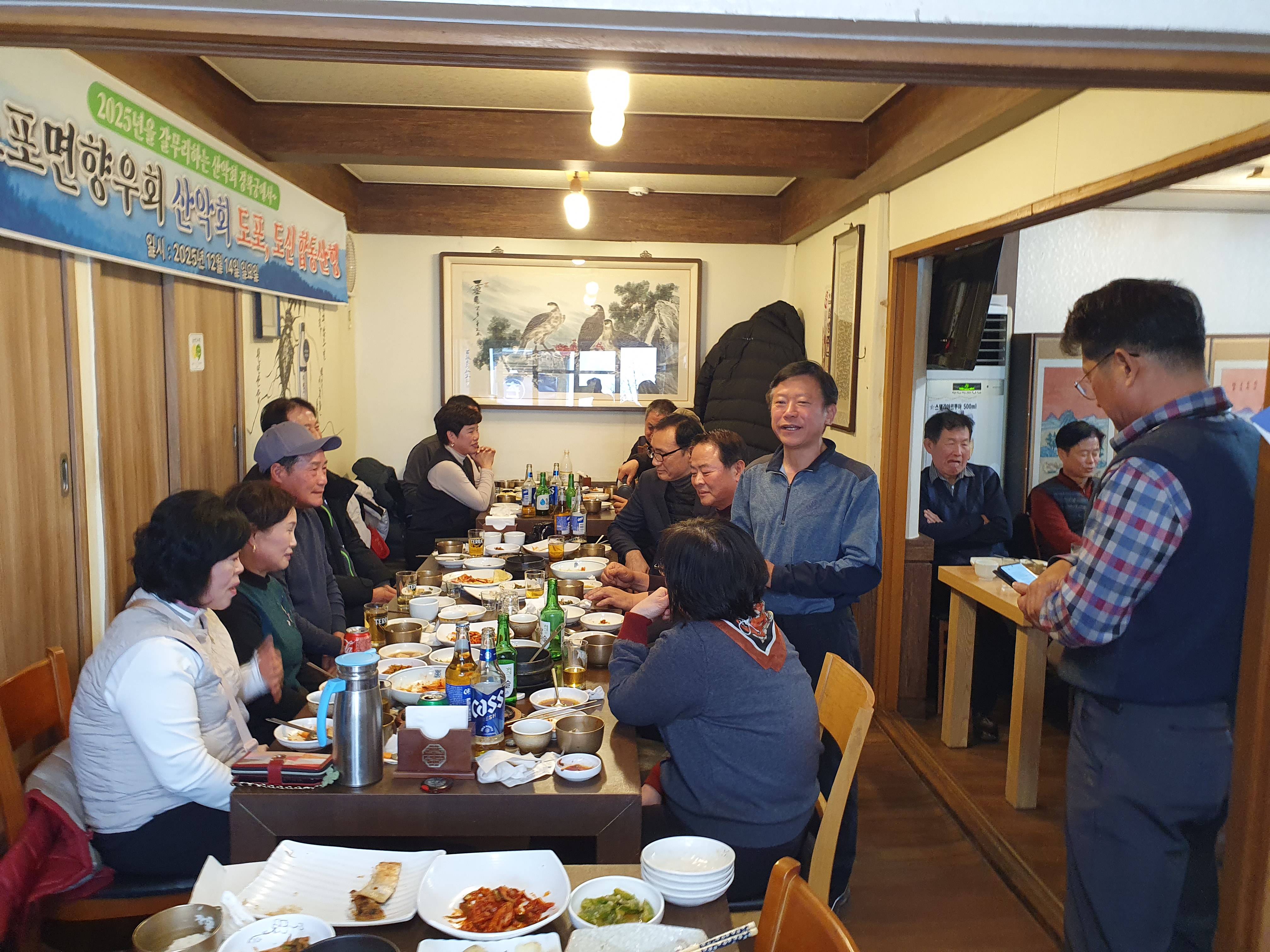 곽 회장은 “저를 물씬 양면으로 도와주신, 산행에 참여를 해주신, 그리고 도포산악회룰 빛내주신 모든 분들에게 깊이 감사를 드린다” 고 전했다.