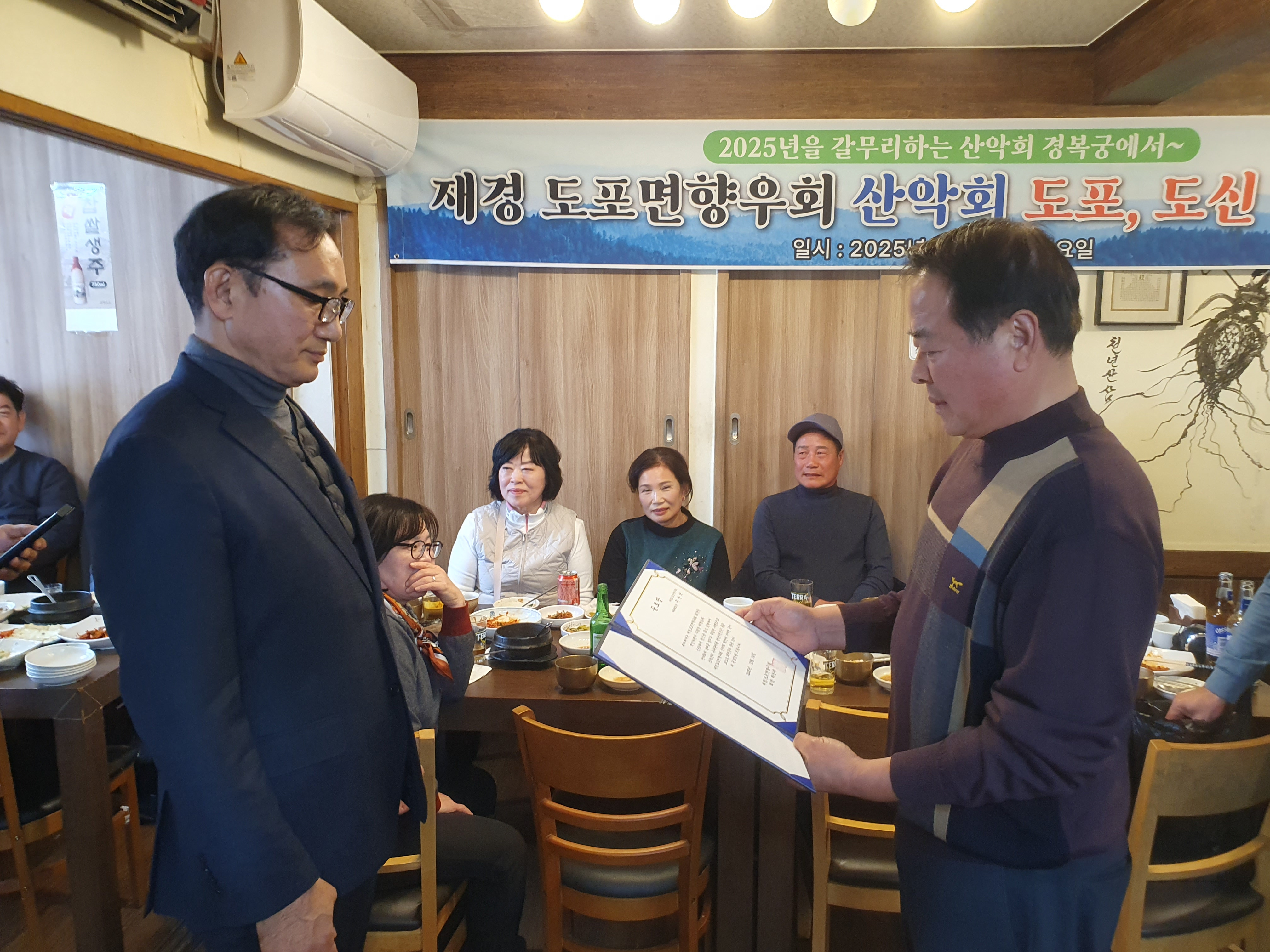 곽종철 재경 도포면향우회 신임회장은 “경복궁 이색체험에 강한 인상을 심게 했던 같아 보기 좋았고, 오늘 산악회를 위해 기여한 분들에게 공로장, 감사장, 봉사장을 수여하는 모습도 보기 좋았다” 며 “도포의 아름다운 광경이 서울 한복판에서 펼쳐져 자랑스럽고 기억에 남을 것 같다” 면서 올 한 해 수고한 모든 분들게 건강과 평화가 깃들기를 기원해줬다.