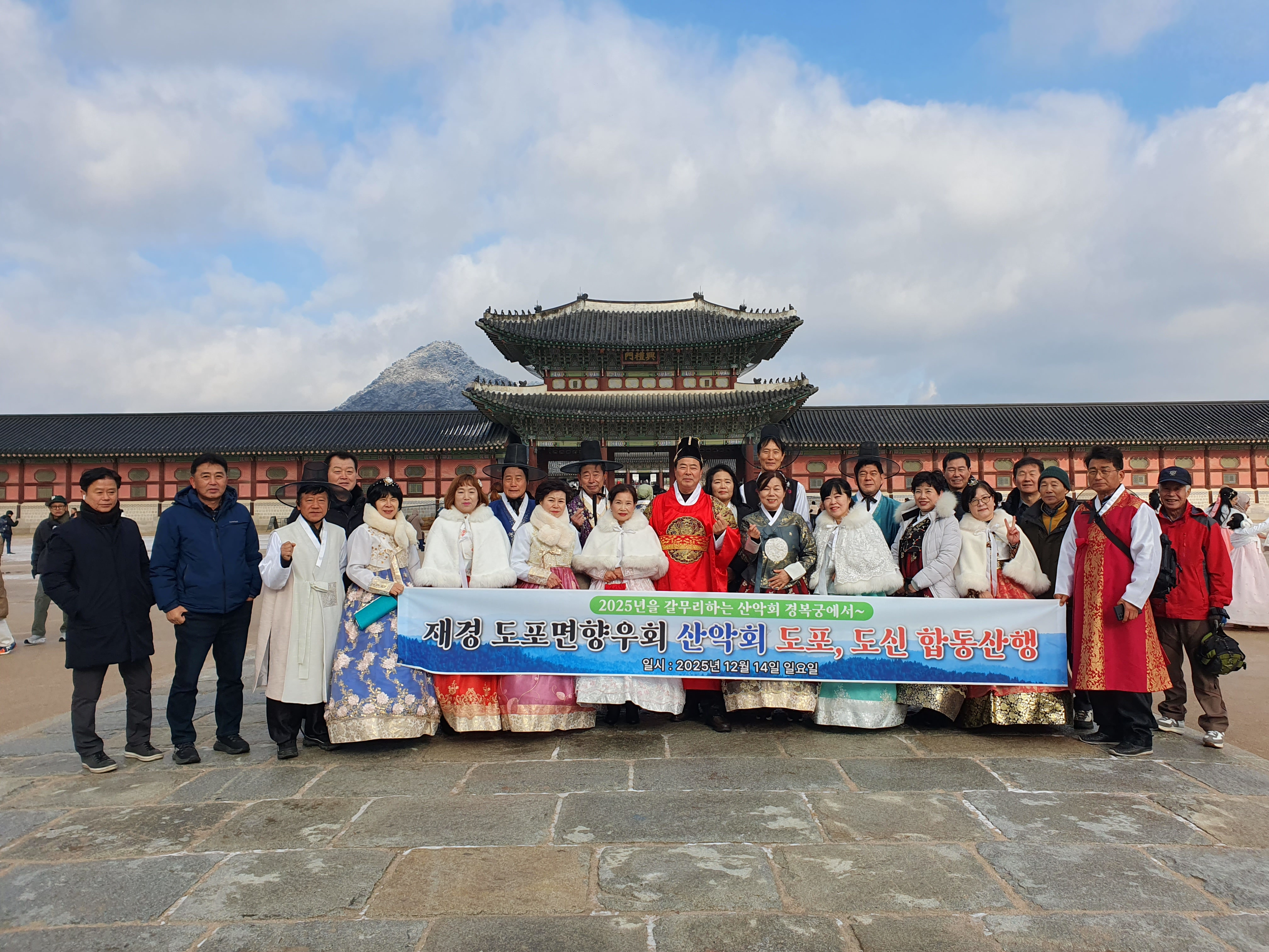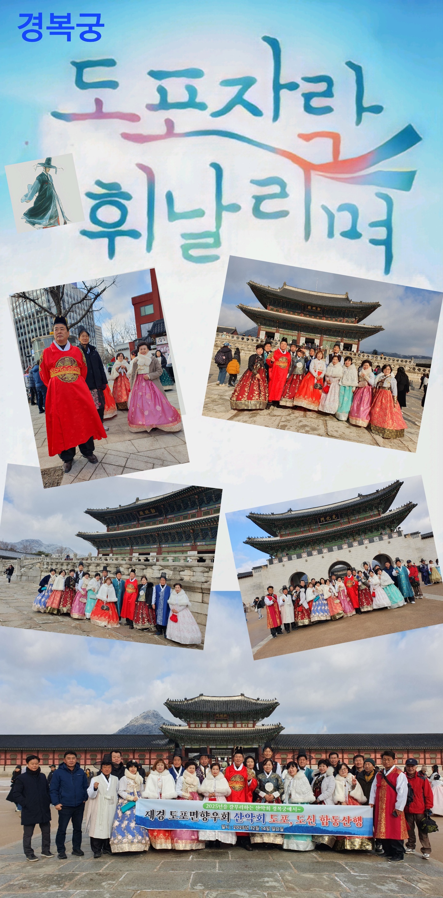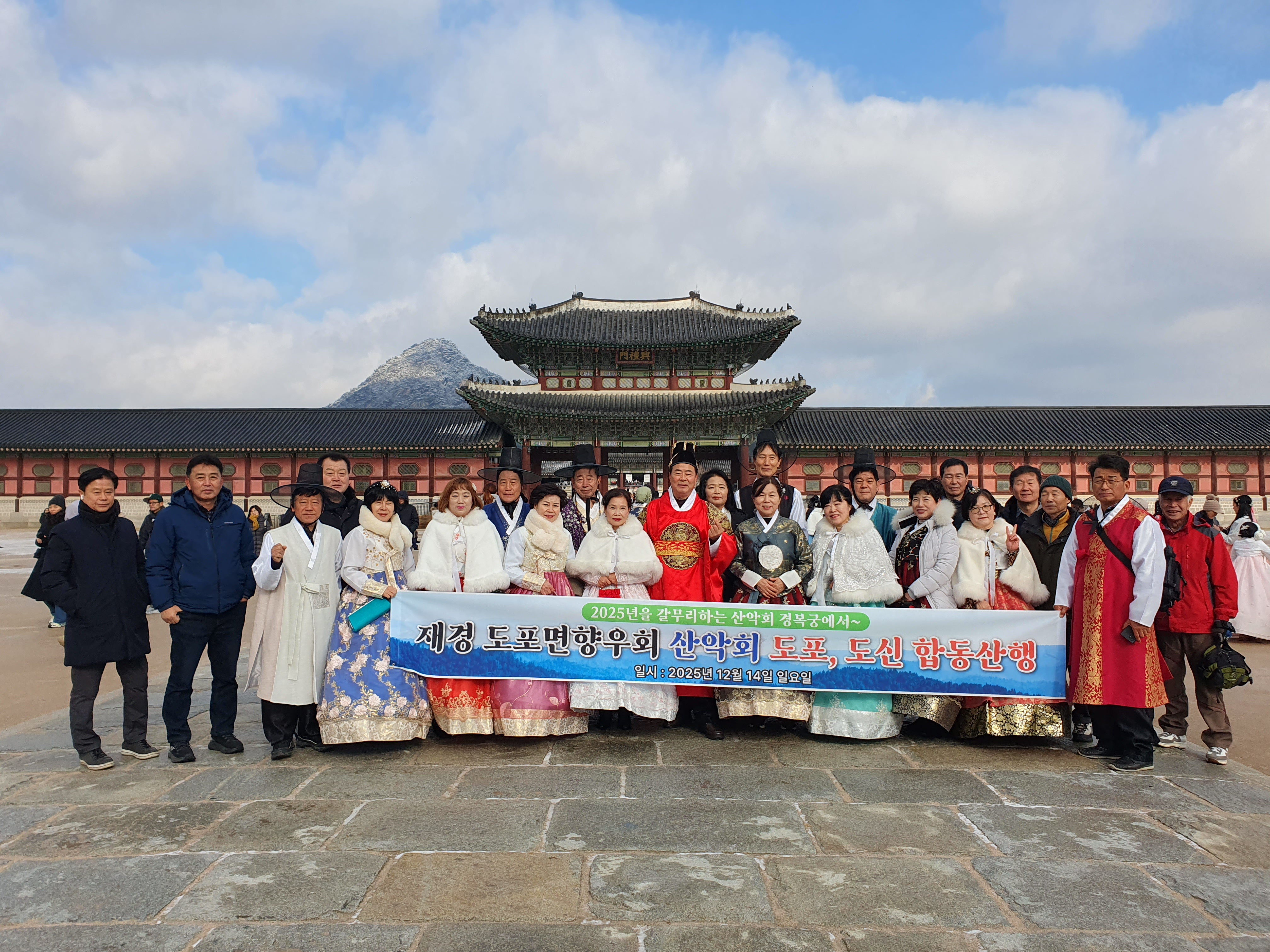 산자락 휘날리고 하며 산행을 위주로 결성된 재경 도포면향우산악회는 이번 송년 산행은 산이 아닌 역사의 숨결이 서린 궁궐(宮闕)을 탐방하는 걸로 잡고, ‘재경 도포면향우산악회’ 주관으로 ‘도신산악회’ 가 참여하는 합동 탐방을 14일 대한민국 최고 궁궐인 〈경복궁〉 에서 가졌다.