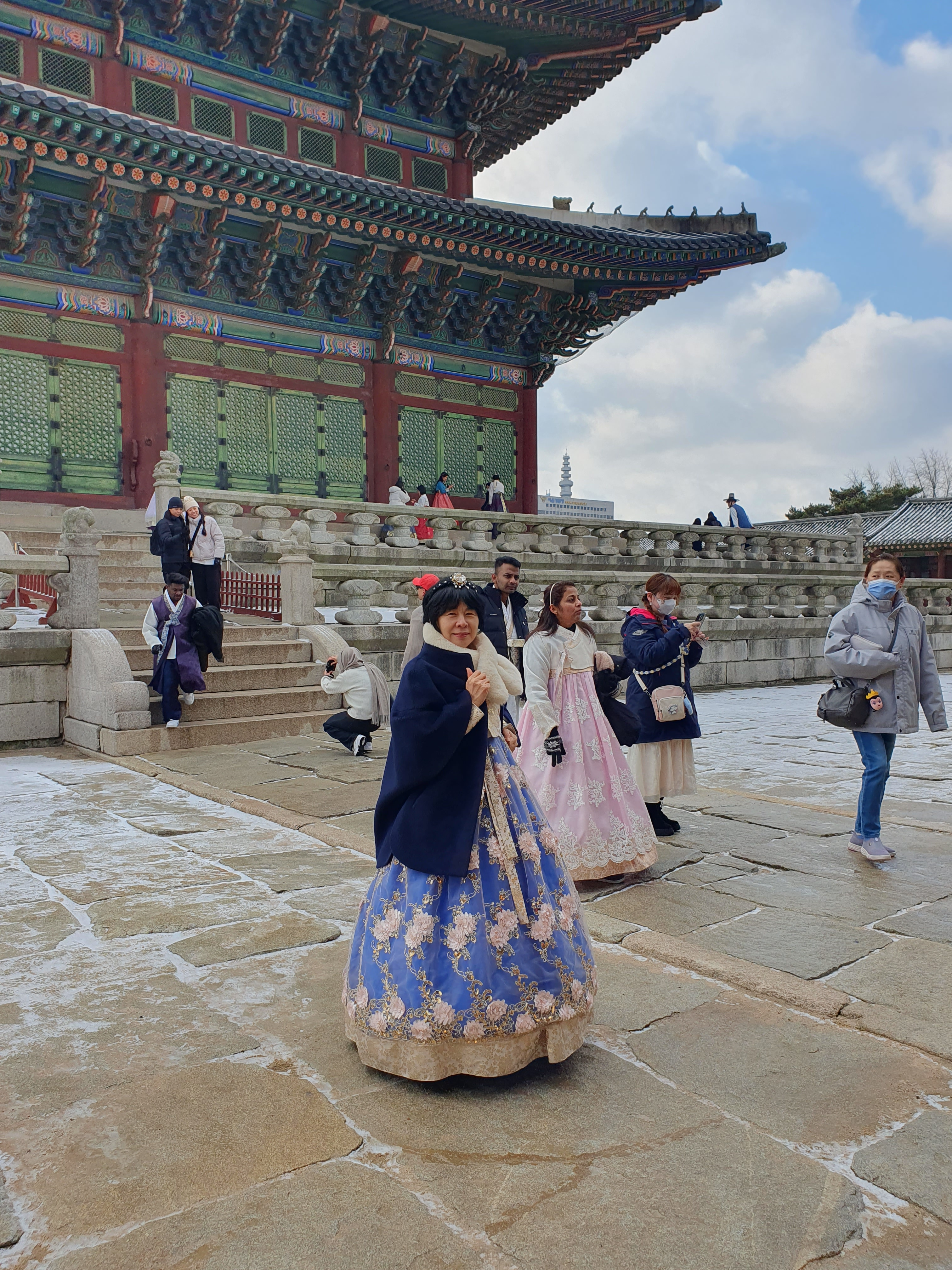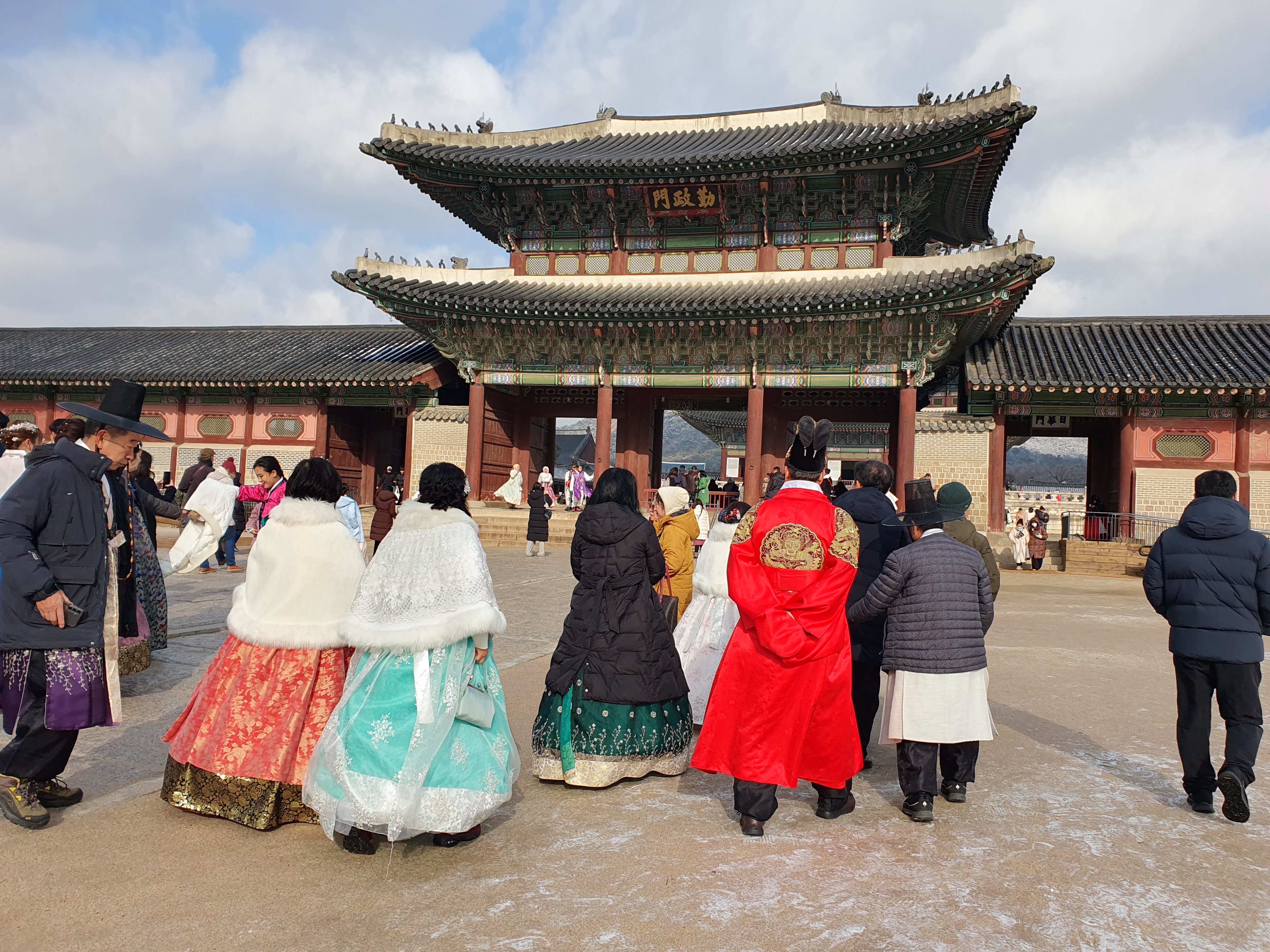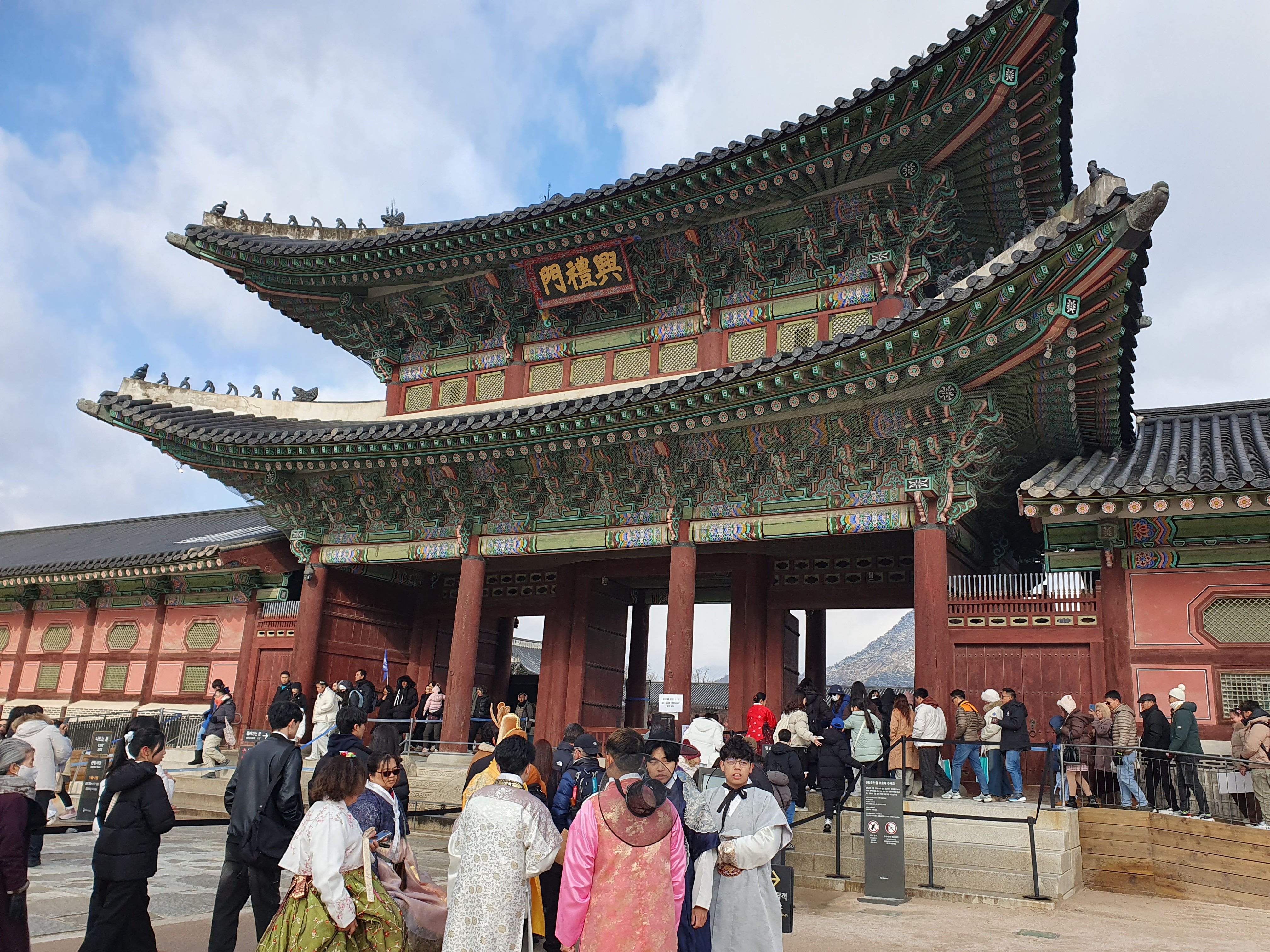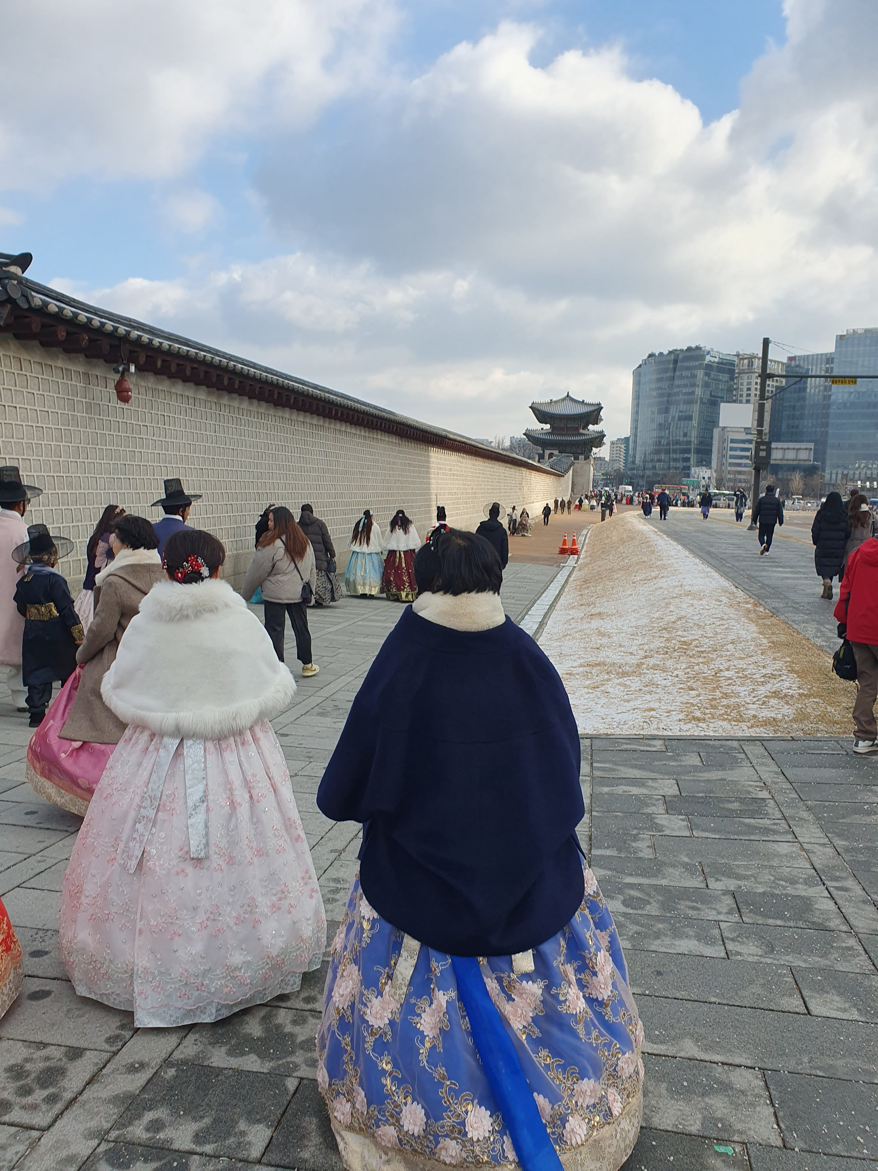 서울 여행하면 꼭 떠오르는 곳 중 하나가 바로 〈경복궁〉 이다. 경복궁은 서울의 역사와 자연이 공존하는 상징적인 장소다. 경복궁은 한복체험의 필수 코스로써 경복궁 방문 시 한복체험은 특별한 추억을 만들 수 있다. 한복체험 후에는 경복궁 주면의 맛집이나 카페를 방문하여 전통적인 분위기를 이어갈 수 있다. 한복체험은 경복궁 방문을 더욱 풍성하고 기억에 남는 경험으로 만들어준다. 아름다운 한복을 입고 궁궐을 거닐며 한국 전통문화의 아름다움을 느낄 수 있다. 이런 고즈넉한 궁궐 풍경 속에서 한복을 입고 걸어보면 마치 시간여행을 온 듯한 기분을 느낄 수 있다. 영화〈카데헌의 열풍〉 , 드라마 〈달의 연인〉 등을 보고 한복을 꼭 입고 나도 궁궐에서 한보체험을 해보겠노라고 마음먹었던 도포사람들, 이런 멋과 아름다움, 그리고 낭만과 추억을 쌓을 수 있는 곳에서 산이 아닌 궁궐을 찾아 조선시대로 돌아가 보는 역사의 인물인양 다채로운 색상의 한복을 차려입은 참가들이 이색적인 풍경으로 시민과 관광객들의 눈길을 끌었다.