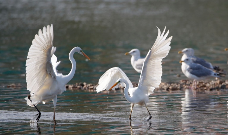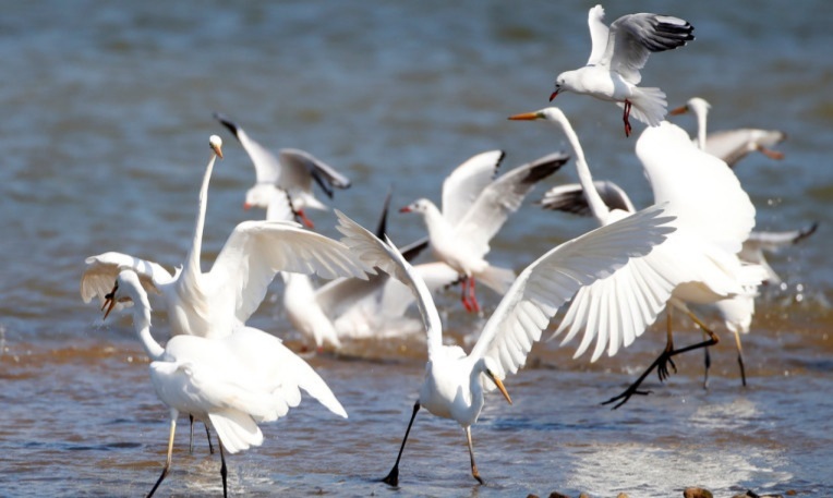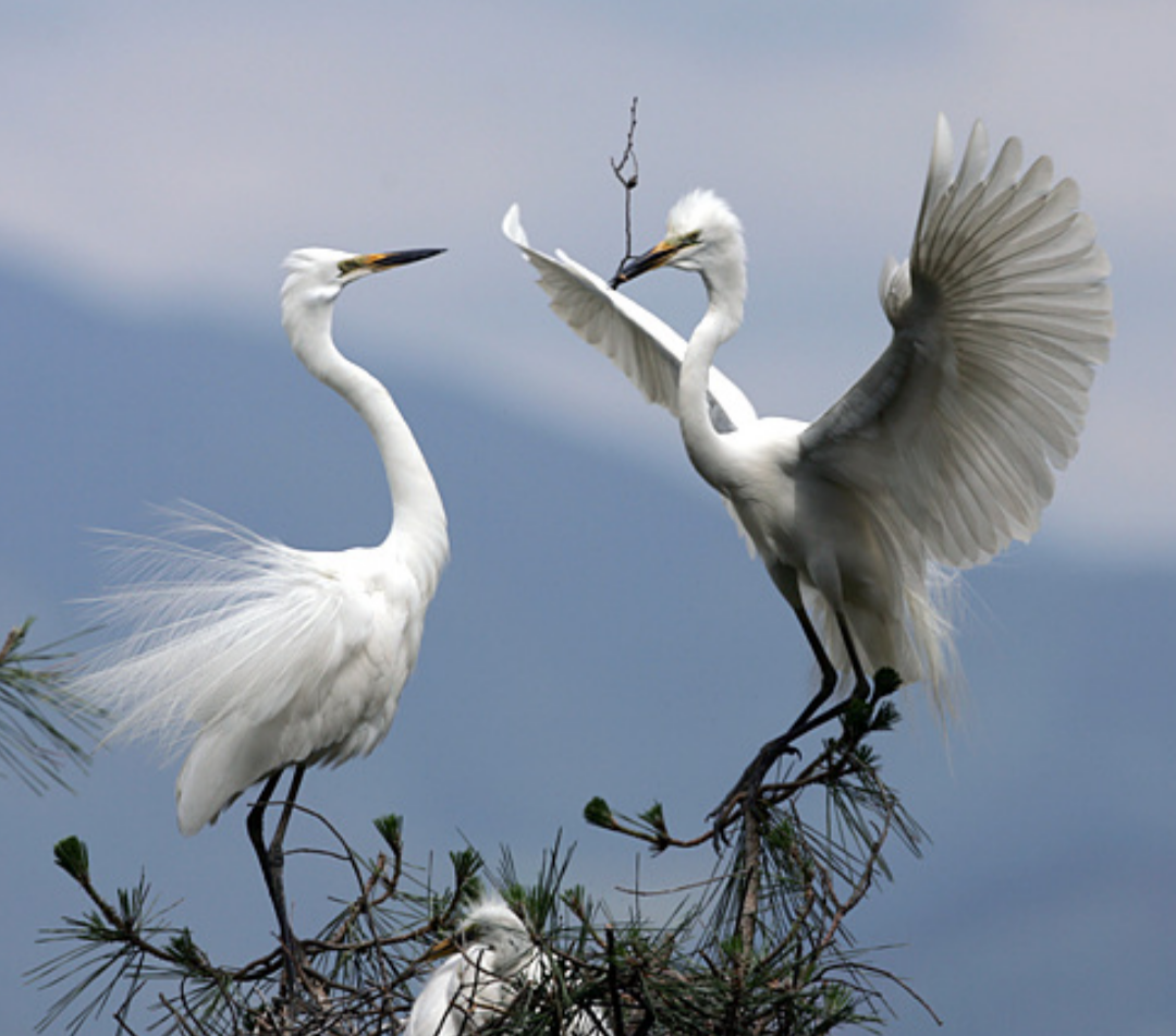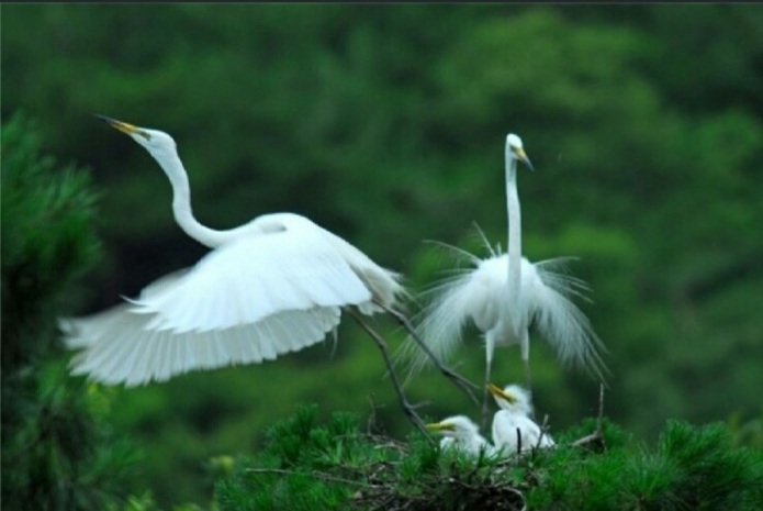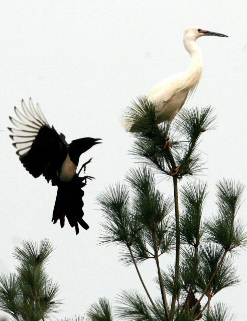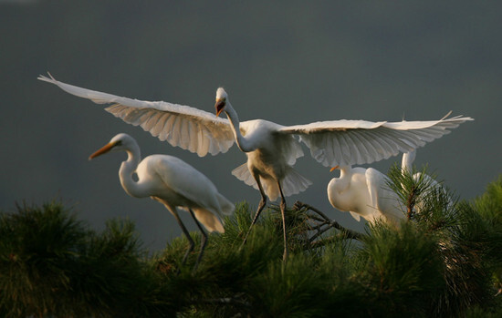 흰색을 지니고 있어 산선의 새로 여기는 백로는 까마귀에 비해 사랑을 많이 받고 있는 천연기념 같은 존재다. 백로가 들녘에나 나무 위 또는 강가에 물고기를 잡아 먹기 위해 노닐거나 강과 들판 위를 날아가는 광경은 멋진 풍경으로 자연의 멋을 풍기는 한가로움을 자아내주고 있다.