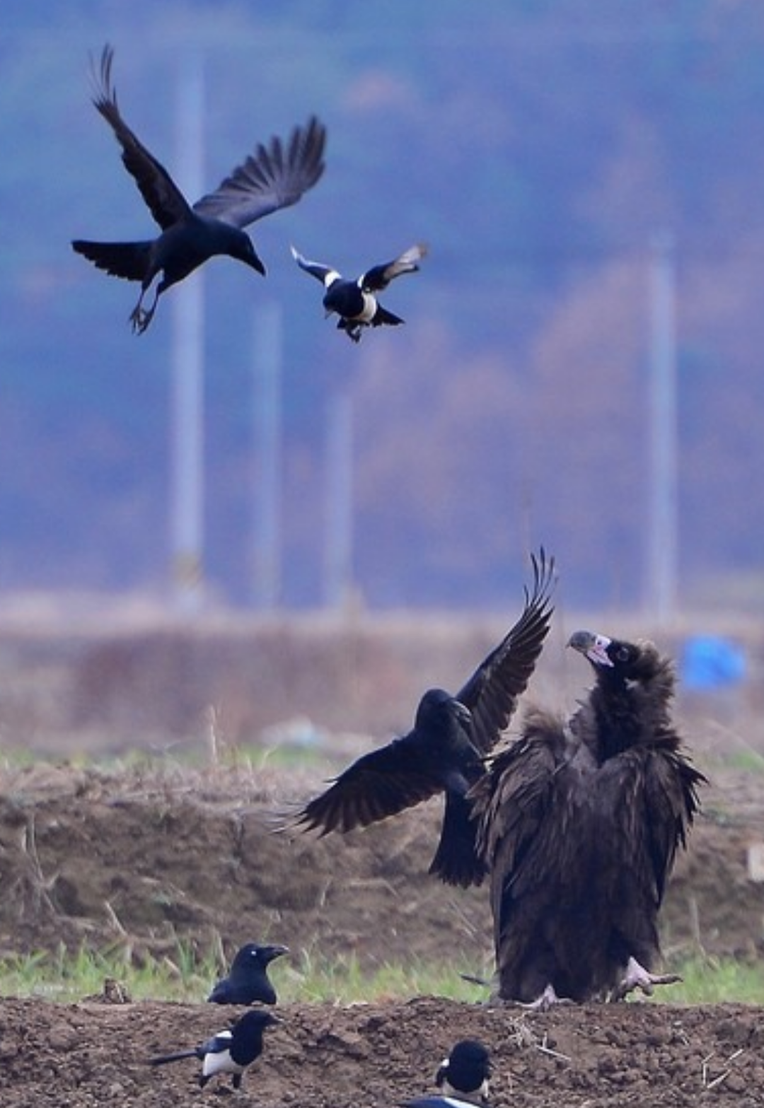 까마귀 떼가 날아가는 것은‘여러 면에서 일이 풀리지 않고 적을 만나게 됨을 뜻한다’고 한다.