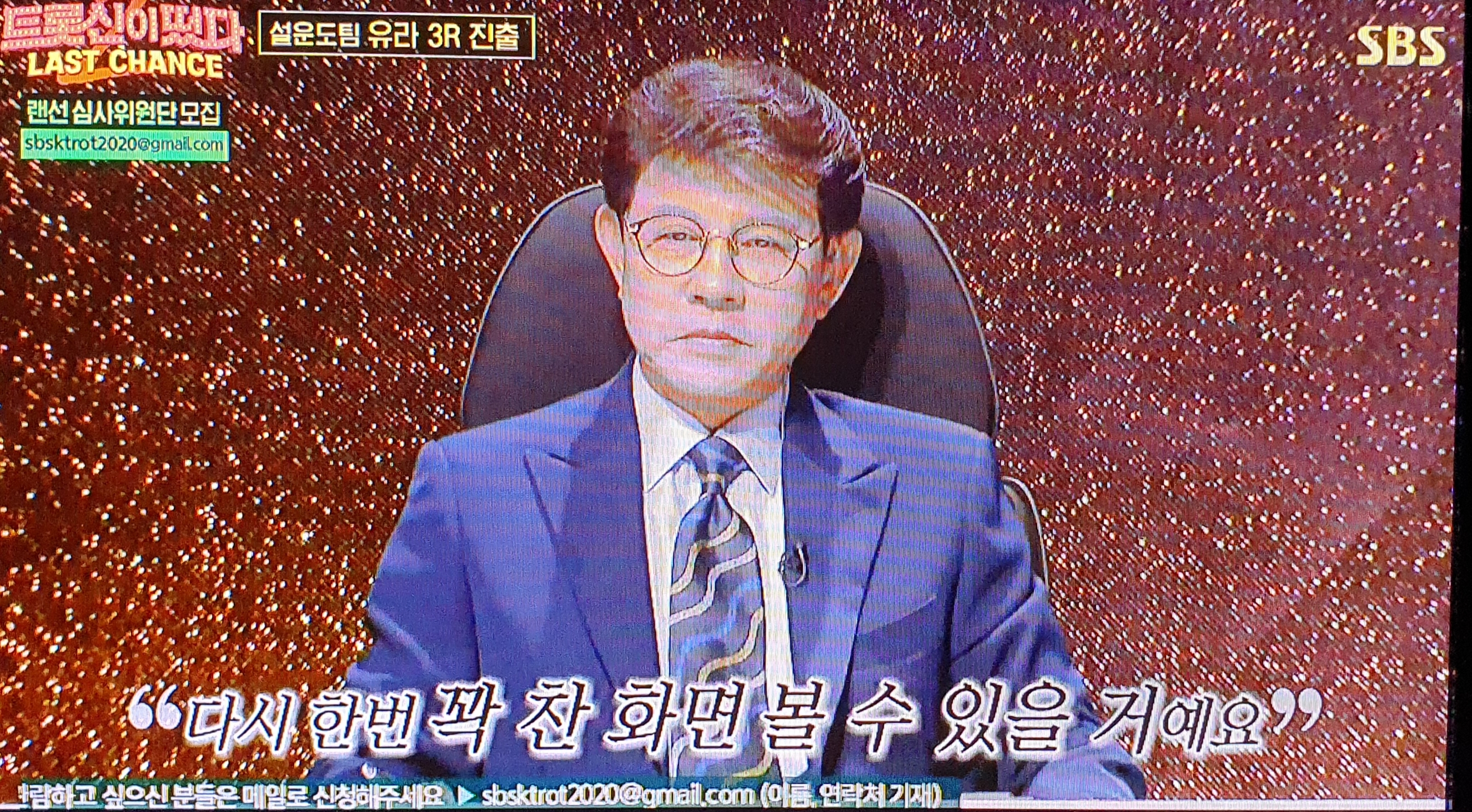 첫 무대 참가자로 유라 가수가 나와 설운도의 ‘미련의 부르스’ 로 무대를 꾸몄다. 유라 참가자는 긴장을 한 듯 약간의 굳은 표정으로 가사 표현이 덜 되는 등 노래를 해 1라운드에서 94%를 받은 점수보다 못한 72%를 받아 2%로 간신히 3라운드에 도전하게 됐다. 70% 이하이면 탈락 할 수 있는 상황, 다행히 운이 따랐다.