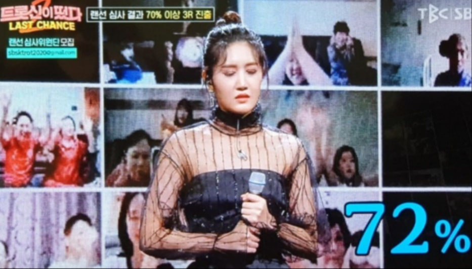 ‘트롯신이 떴다’ 1라운드(29회)에서 94%라는 최고의 점수로 1위를 한 유라 가수가 지난 7일(수) 밤 9시부터 방영된 ‘트롯신이 떴다2(30회)’ 에서는 ‘72%’ 를 기록해 3라운드 진출에 성공했다.