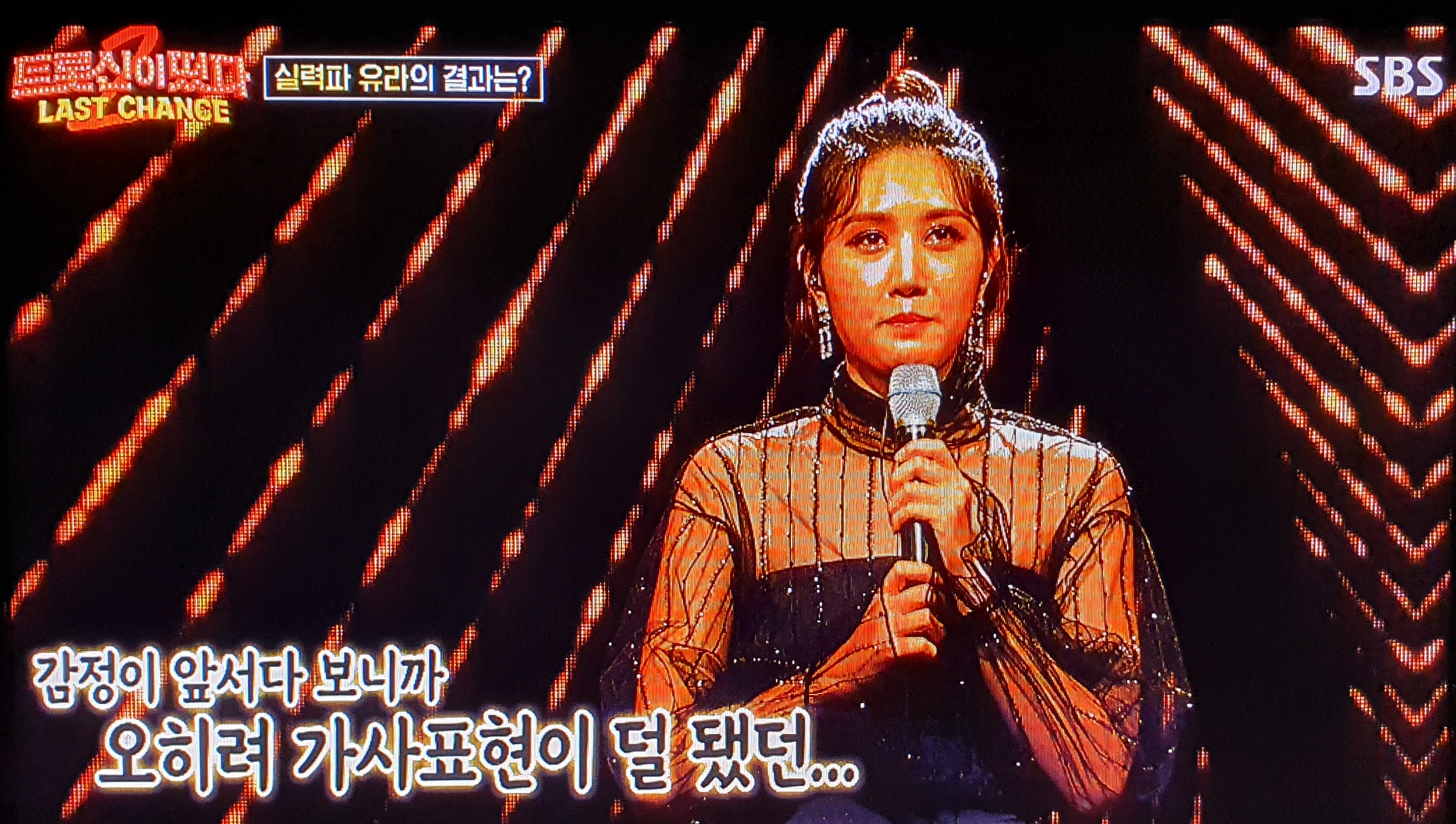 유라 가수는 2라운드 첫 무대에 서며 “1라운드에서 제가 최고의 점수를 받게 돼 이 자리를 빌어서 다시 한 번 심사위원 대선배들한테 감사를 드리고 또한 시청해주면서 적극 응원을 해준 국민들한테 깊이 감사를 올리고 기대에 저버리지 않는 사랑받는 유라가 될 테니 지속적인 박수를 보내달라” 고 말했다.