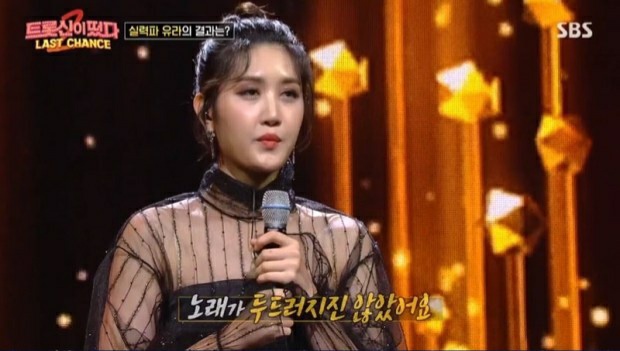 유라 참가자는 설운도의 ‘미련의 부르스’ 를 선보이면서 첫 무대에 서서 그런지 굳은 표정이 역력했다. 심시위원 장윤정은 “못하는 친구가 아닌데 노래를 어렵게 소화를 시킨 것 같다” 고 아쉬워했다. 김연자 역시 “다들 위축돼 있는 것 같다” 고 1라운드보다 긴장감을 많이 찾아볼 수 있었다는 평을 했다.