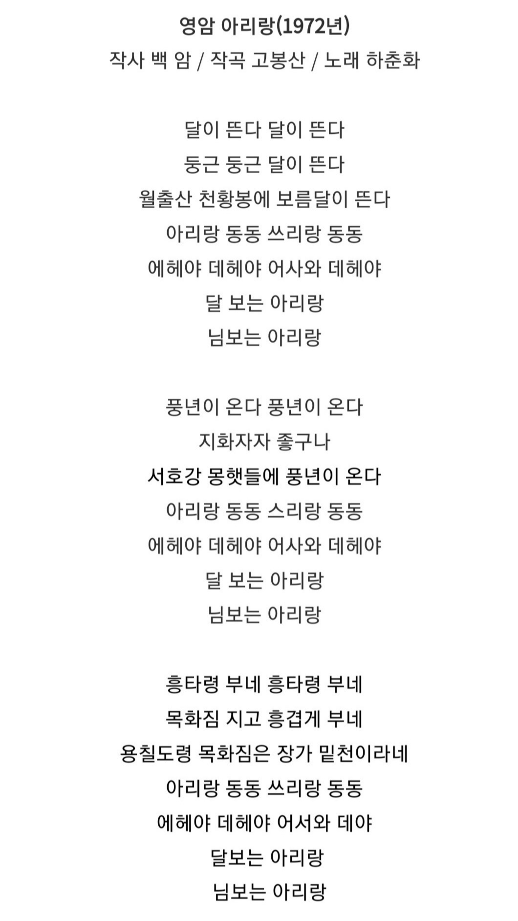 이환의 고인은 불러도 불러 봐도 대답이 없다. 그는 이제는 그가 아끼고 사랑했던 고향과 부모형제와 가족 그리고 고향사람들과 우리 국민들을 뒤로 한 채 저 세상으로 떠났기 때문이다. 이환의 고인은 부른다 저 세상에서도 우리를 잊지 않고 고향을 생각하며 어께 춤하며 '흥타령 부네 흥타령 부네/목화짐 지고 흥겹게 부네/용칠도령 목화짐은 장가 밑천이라네'아리랑 동동 스리랑 동동/에헤애 데헤야 어서와 데야/달보는 아리랑 님보는 아리랑' 하며 그는 어디에 있던 어디서에서나 언제든지 그가 지었던 사랑하며 불렀던 노래, '영암아리랑' 을 부르고 또 불러준다. 우리는 그의 노래에 맞춰 춤을 추는다.