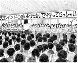 규슈기념간부회는 오후 1시 넘어 시작했다. 대강당에는 “선생님, 인도 건강히 잘 다녀오십시오”라고 쓴 현수막이 걸려 있었다. 모인 동지는 야마모토 신이치가 의의 있는 인도 방문을 규슈에서 출발한다는 데 기쁘고 자랑스러웠다.