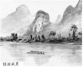 일찍이 구이린 경관을 ‘강은 푸른 띠를 이루고 산은 푸른 옥비녀와 같도다’ 하고 노래했다. 강 양쪽에는 마치 병풍처럼 기암괴석이 이어져 있다. 비가 내려 하얀 면사포를 쓴 듯한 별천지 사이로 배가 나아간다.