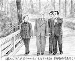 중국방문을 앞둔 4월 5일, 신이치는 중국작가대표단 단장으로서 일본을 방문한 바진과 시즈오카연수원에서 처음으로 회담했다.