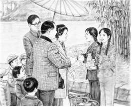 이튿날 차를 타고 양띠로 나와 이슬비를 맞으며 리강 부근 선착장까지 걸었다. 안개비에 감싸인 숲을 빠져 나오자 강가에 있던 아이들이 다가왔다. 그 중 두 소녀가 멜대를 짊어지고 약을 팔고 있었다.