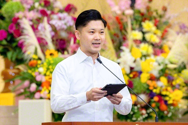 그리고 인류의 숙업이 짙게 드러나고 있는 지금이야말로, “대방법(大謗法)이 나라에 있으니 대정법(大正法)이 반드시 넓혀지리라.”(어서신판2145·전집1300) 하신 어단언(御斷言)대로, 불법(佛法)을 말하고 넓히는 ‘천(天)의 때’입니다. 그러므로 우리는 “지금이야말로, ‘신시대(新時代)의 절복(折伏) 대행진(大行進)’을 진행해 갈 때다!”라고 당당하게 사회에 선언(宣言)하고, 세계광포(世界廣布)의 새로운 전진(前進)을 개시해 가고 싶습니다. (박수)