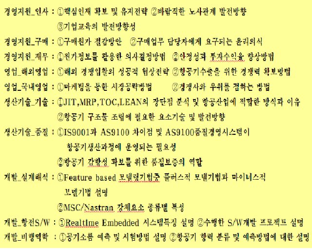 전 생산기술 1번을 택해서 준비를 했는데, 산업공학 나온 친구한테 물어보다 보니 범위가 장난이 아니더군요. PT는 무조건 5장까지만 이라고 해서, 고민하다가 KAI가 현제 MRP시스템에서 좀더 발전시킨 전사적 관리 프로그램인 ERP 시스템을 쓴다는걸 홈페이지에서 보고, 그걸로 PT를 만들었습니다.