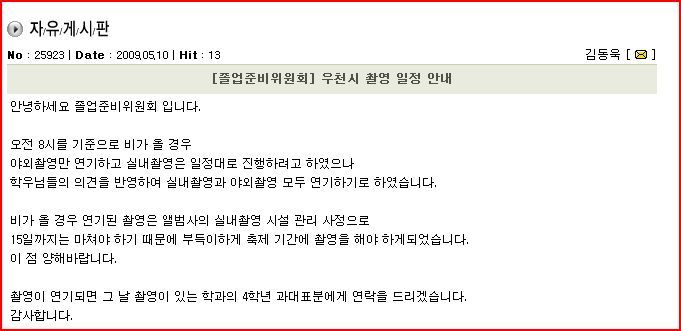 항공과 졸업앨범 촬영 관련(우천시) 작성자03 진재도|작성시간09.05.10|조회수250 목록 댓글 4 글자크기 작게가 글자크기 크게가 졸준위 장학금도 받는다는데.. 조금은 무성의 하다는 생각이 드는 하루.. 우리과에도 졸준위 있나요?? 다음검색 현재 게시글 추가 기능 열기 북마크 공유하기 신고 센터로 신고 댓글 댓글 4 댓글쓰기 답글쓰기 댓글 리스트 작성자03 안성만 | 작성시간 09.05.10 역시나 공지가 늦군요;;; 작성자03/ 양현석 | 작성시간 09.05.11 아 혹시나해서 들어와봤는데... 덴장 지금까지 날씨 좋더만 ㅋㅋ 하필이면... 작성자03 손준희 | 작성시간 09.05.11 문자라도 좀 날려주던가~ㅠ 작성자02/배재진 | 작성시간 09.05.11 그래서 언제한다는얘기/??ㅋㅋㅋㅋ 멍미 댓글 전체보기