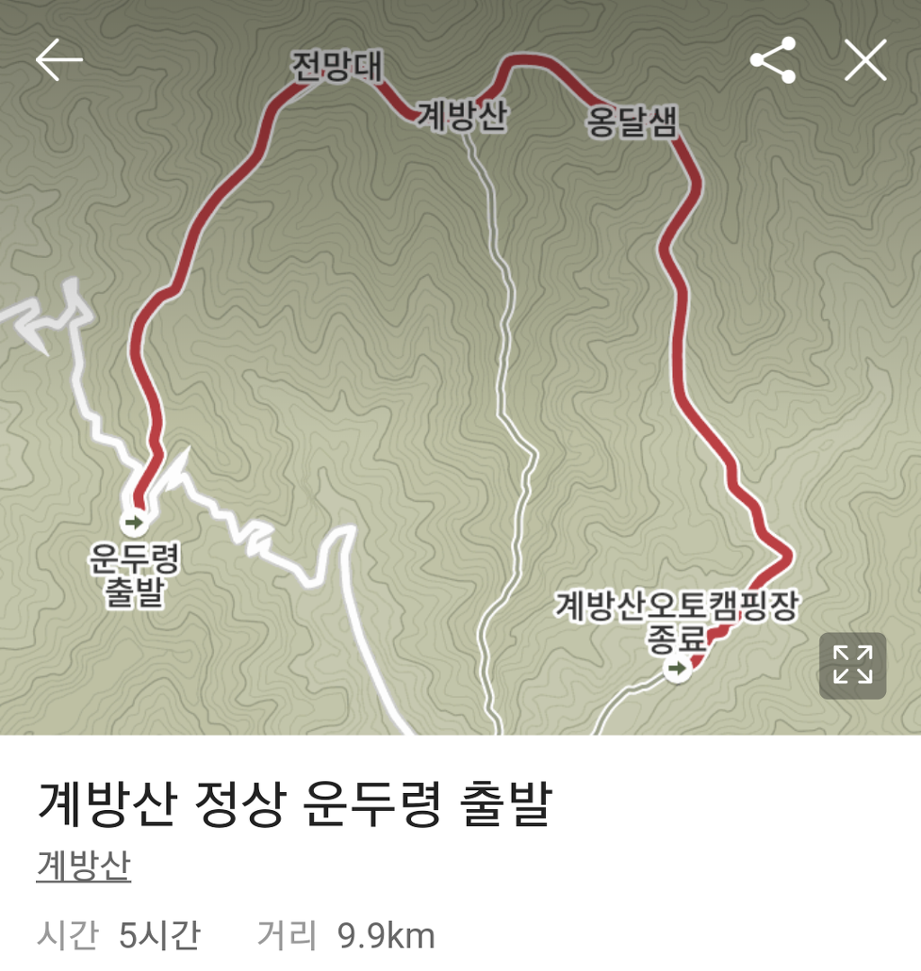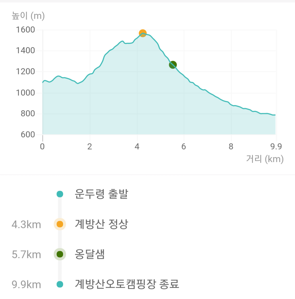 - 오토캠핑장(도착) 10.0km : 5시간 - 점심 포함