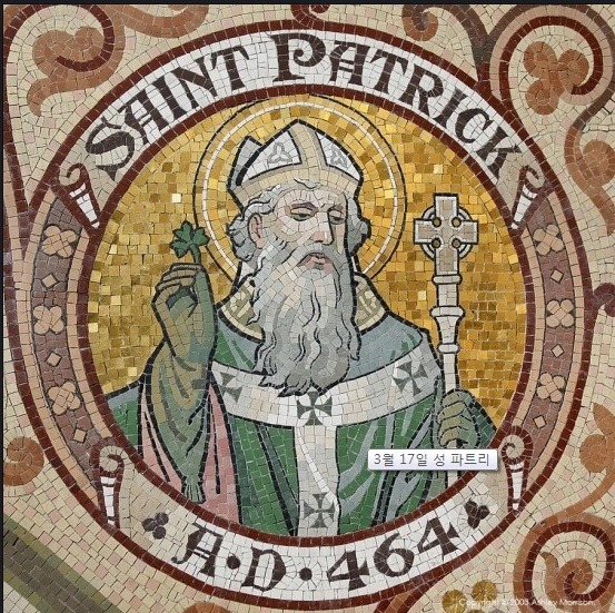 다음은 성 페트릭입니다. 이사람은 유명하지요. 이 사람이 유명한 것은 성 패트릭 데이 때문인것같습니다. 하지만 아일랜드의 주요한 성인입니다. 이사람은 아일랜드의 뱀을 잡았다고 하네요. 정확히는 저도.자라....