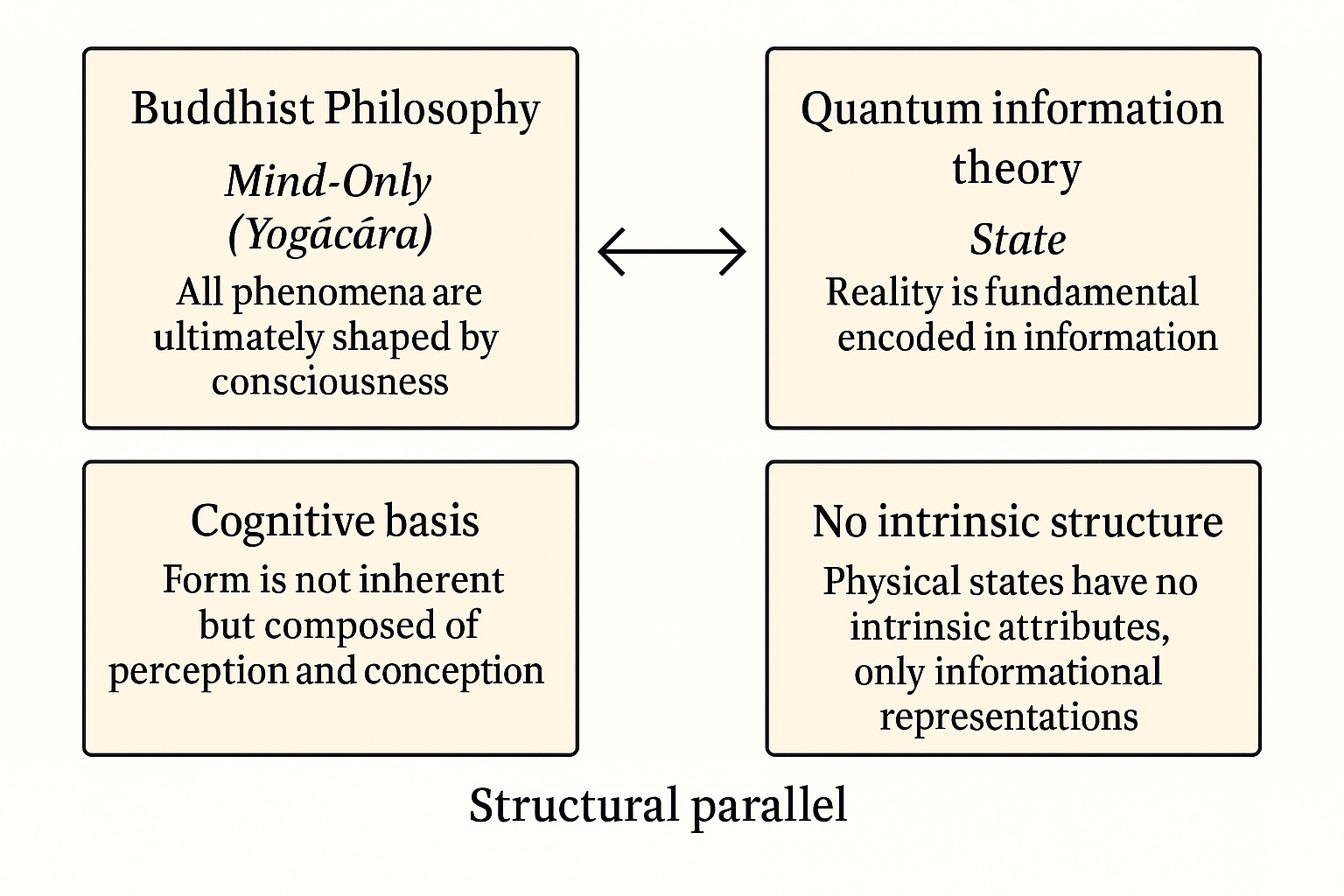 불교 철학의 무아(Anattā)와 양자역학의 관측자 효과(observer effect) 사이의 구조적 유사성을 확인할 수 있습니다.