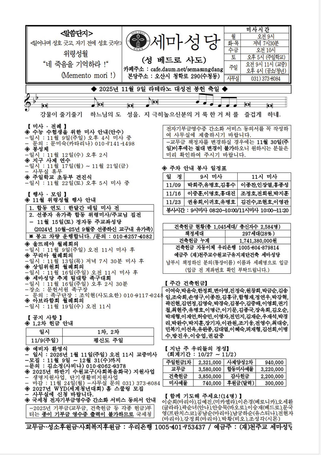2025년 11월9일 라떼라노 대성전 봉헌 축일 주보 작성자홍보분과장 권병준 스테파노|작성시간25.11.06|조회수107 목록 댓글 0 글자크기 작게가 글자크기 크게가 다음검색 현재 게시글 추가 기능 열기 북마크 공유하기 신고 센터로 신고 댓글 댓글 0 댓글쓰기 답글쓰기 댓글 리스트