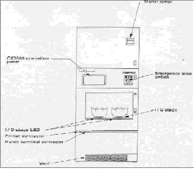 ① LOADER/UNLOADER부는 장치에서 공정을 진행하기 위하여 웨이퍼가 적재되어 있는 CASSETTE를 장치에 넣거나, 공정 완료 후 CASSETTE를 빼내는 부분으로 CASSETTE STAGE라고도 부른다. 그림 1‐3에 앞에서 바라본 장치의 정면도를 나타냈다.