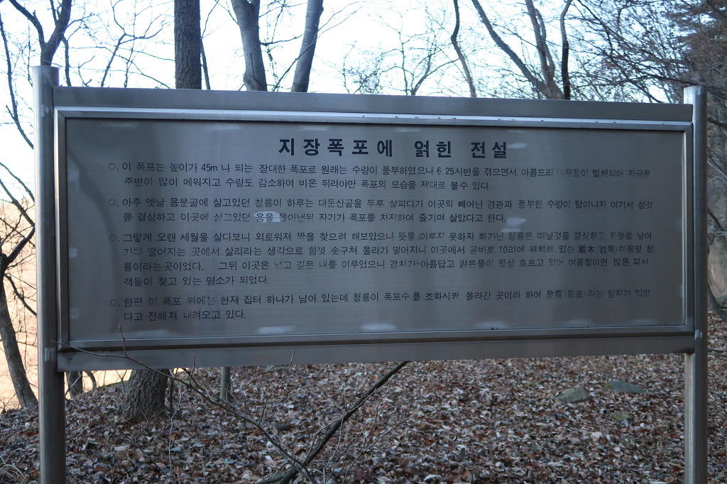 ↑ 지장폭포 설명판. 비가 내리면 폭포물이 잘 보이는데 가물어서 폭포물을 볼수 없었습니다.