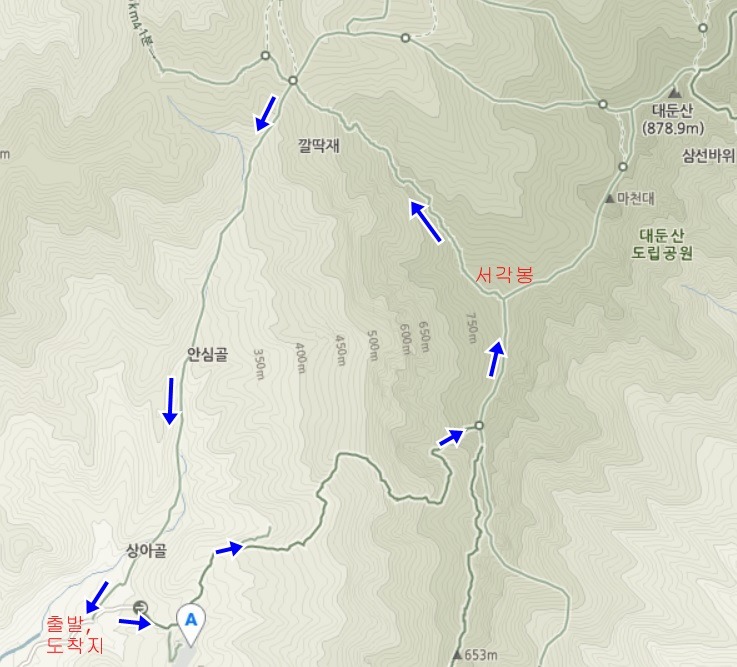 ↑ 산행 지도. 코스는 화살표 방향으로 올라 갔다 내려 왔습니다.