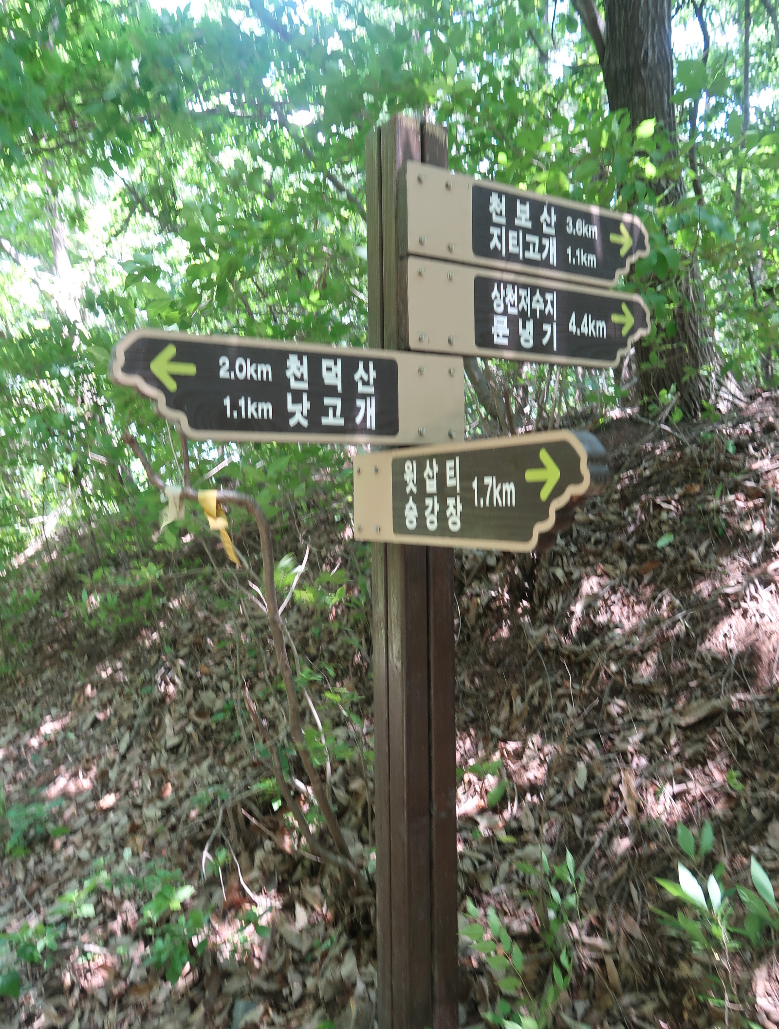 ☆ 산행 코스 : 상천저수지 주차장- 철계단 3군데- 천보산- 자티(삽티)고개- 405봉- 철탑- 큰낫고개- 작은낫고개- 천덕산-작은낫고개-상천2리-상천저수지 주차장