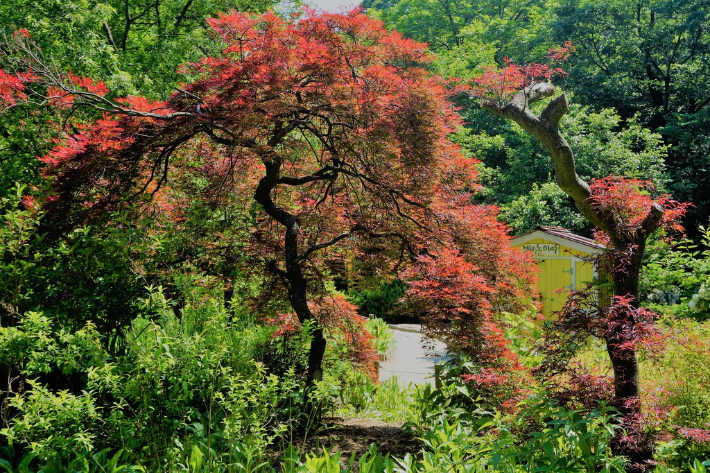 정문엔 입장객이 밀렸다. 예약 않곤 입장사절이었다. 다리를 건너면 '어린이 정원'이란 테마파크가 펼쳐지는데 싱그럽고 잘 꾸며진 소공원은 별천지에 든 - 상쾌한 기분이 여길 오길 얼마나 잘 했는지를 절감케 한다. 수목원은 7개의 테마파크로 나눠 산책코스를 만들어 놔 102ha나 되는 광대한 숲 공원을 취향에 맞춰 즐길 수 있다.