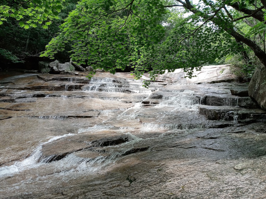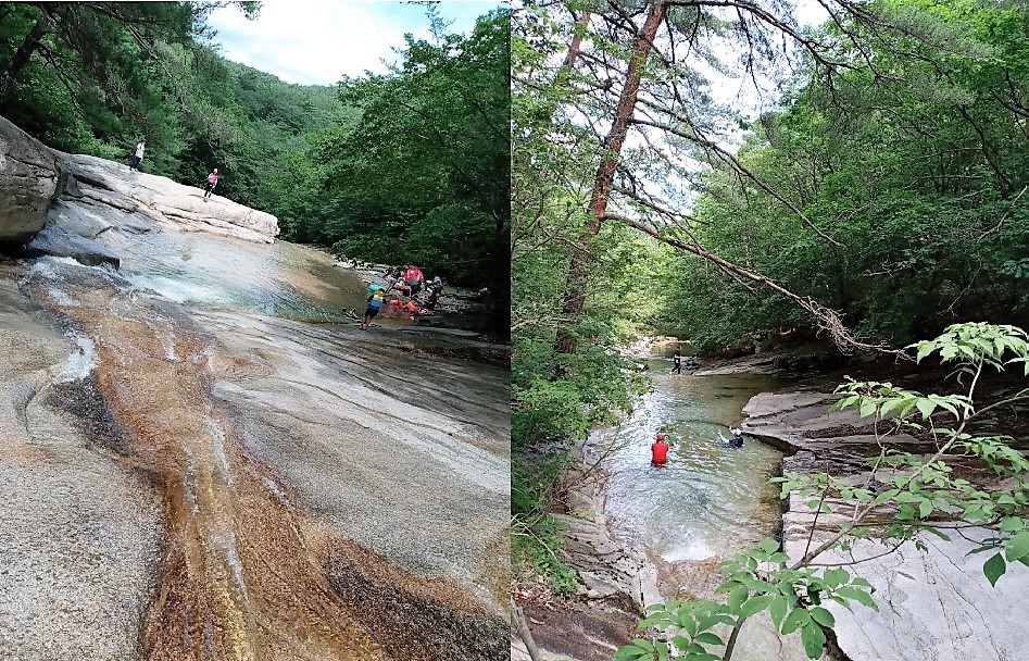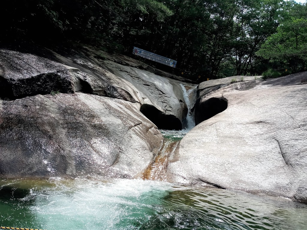 허나 사랑(♡)의 소도, 비늘자국도 먼발치에서 마음눈으로 볼 수밖에 없다. 가이드라인을 휘둘러 출입금지구역이 됐다. 일찍 등산하고 하산길에 즐기려 바지런 떨었는데 아쉬웠다. 아무리 가물어도 물이 마르지 않아 기우제(祈雨祭)장소로 쓰인 사랑(♡)의 용추폭포는 그렇게 실체를 보여주지도 않았다. 온통 화강암이라 닳지도 않을 텐데 출입금역(禁域)이 된 건 무당소의 비극이 재현될까 싶어 서리라. 지자체는 그 핑계로 더 방문객 끌테다.