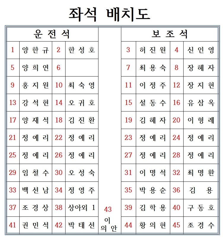 같이 않고 싶은 지인 있으시면, 좌석번호하고 참가 신청때 올려주시면 참고하겠 습니다,
