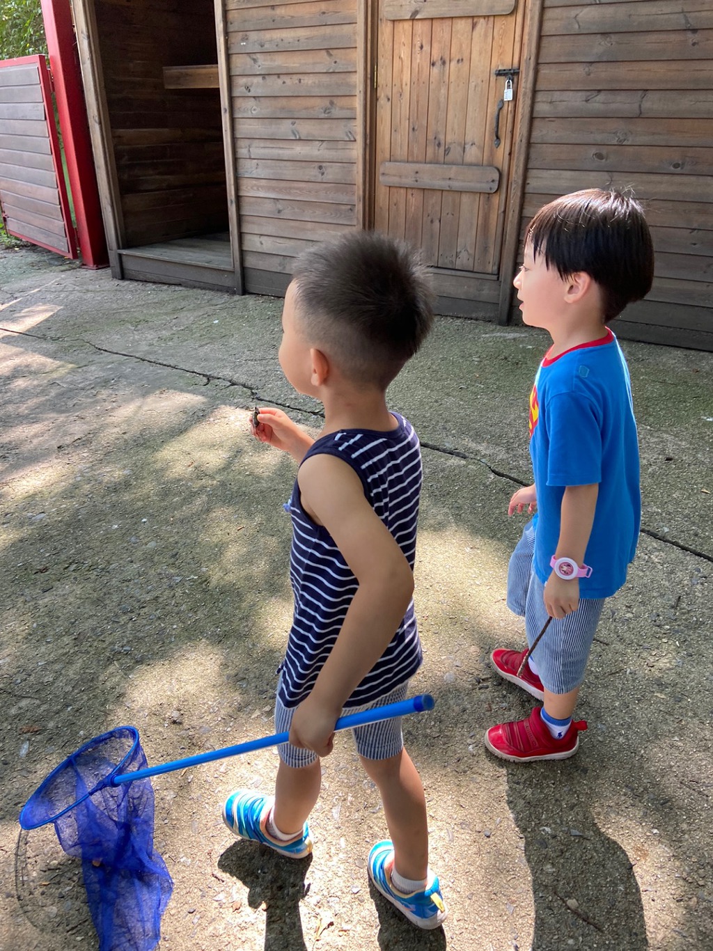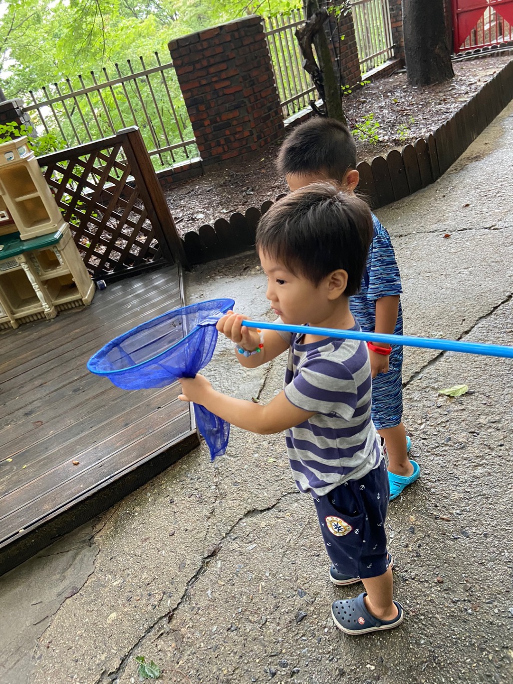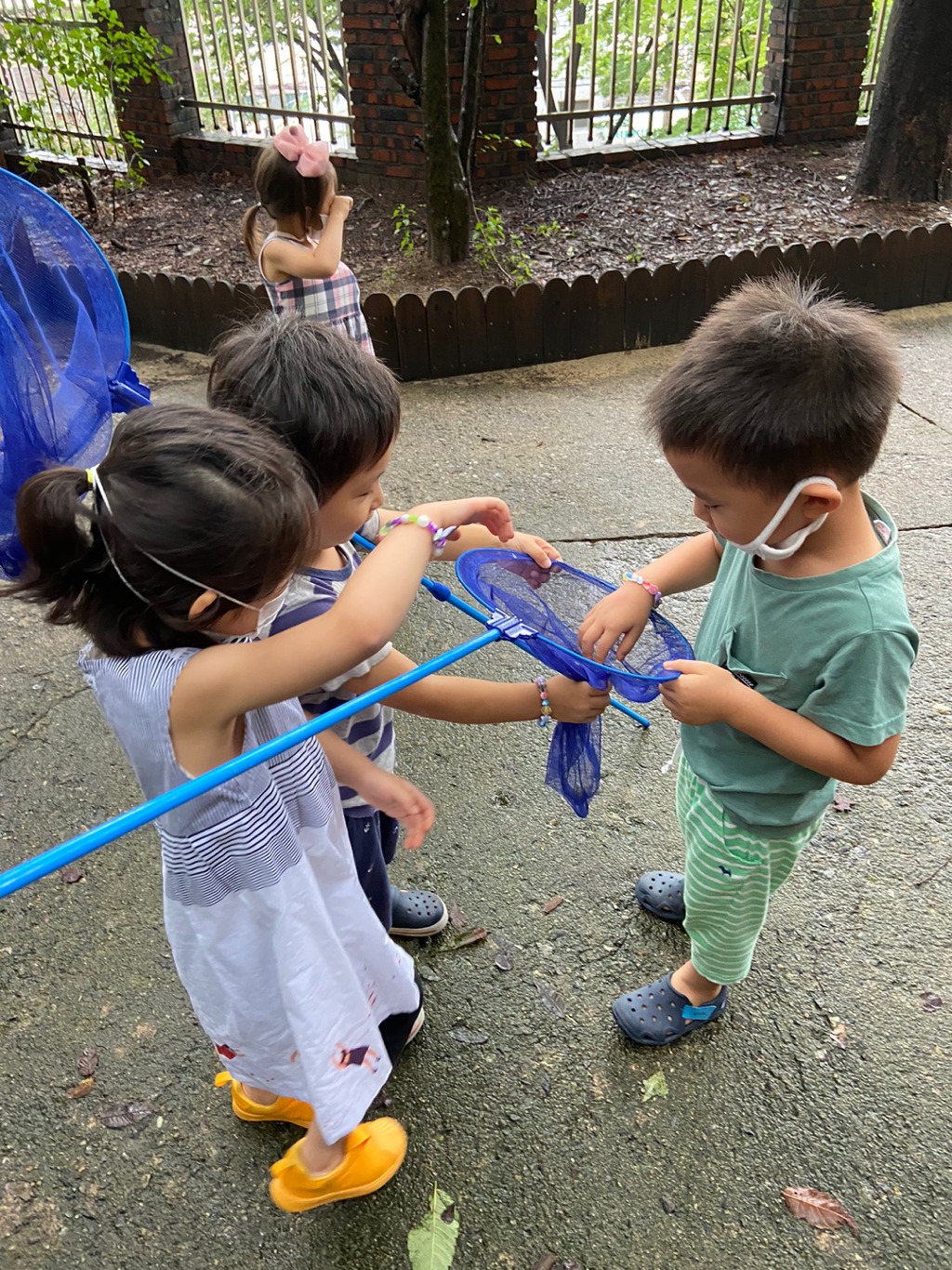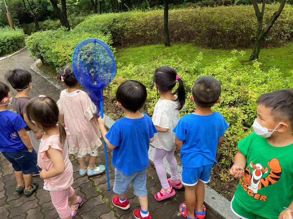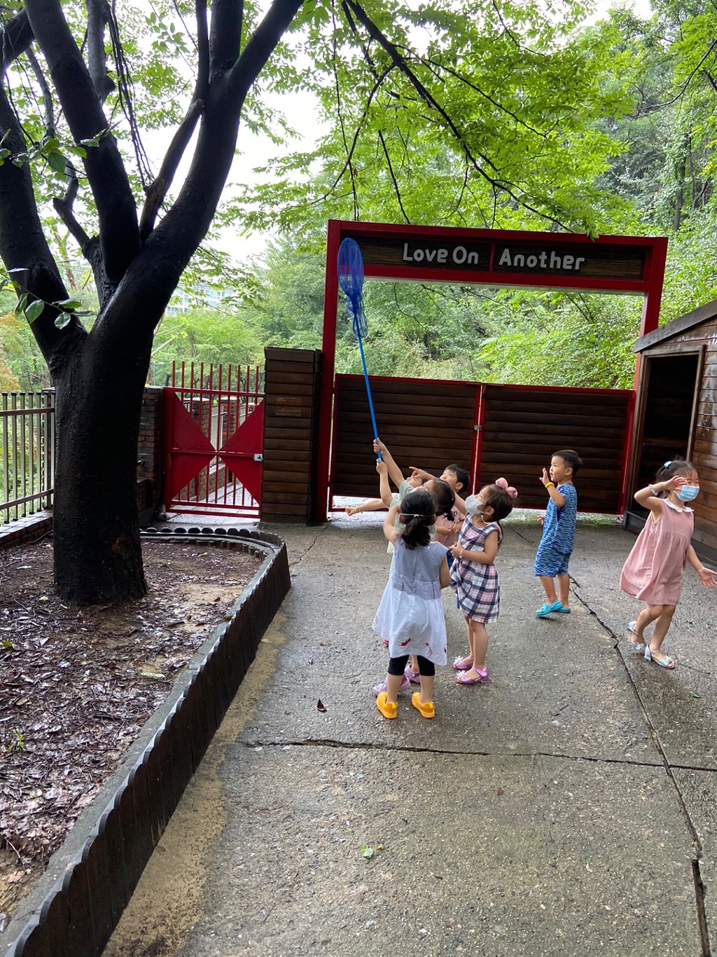 지금은 아이들이 나무에 있는 매미들도 찾고 매미채를 높이 뻗어 스스로 잡아보려고 노력하는 모습이에요