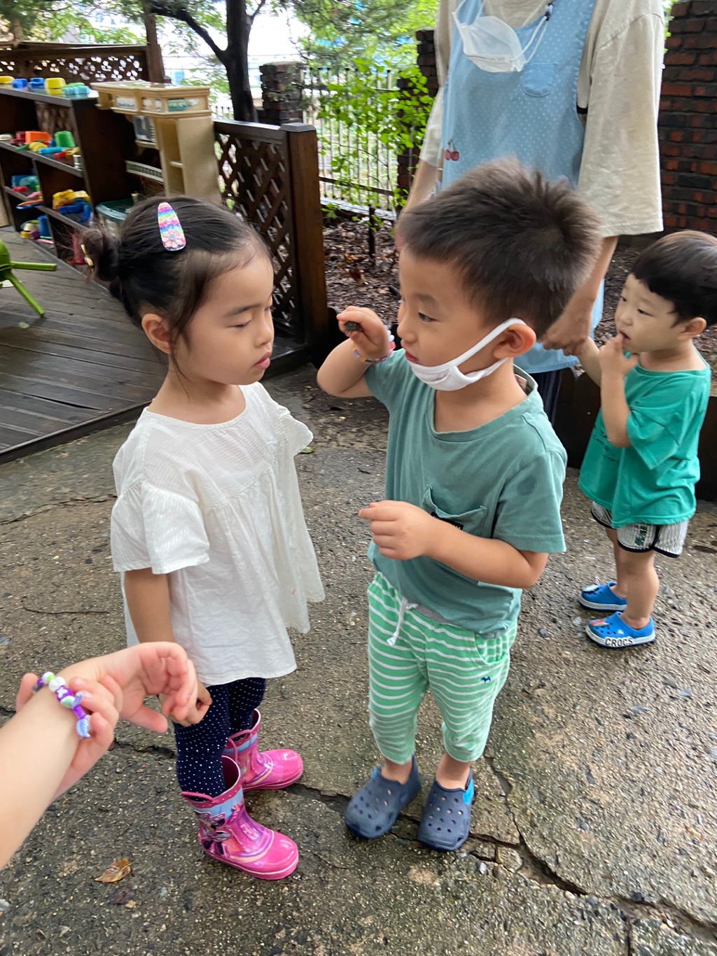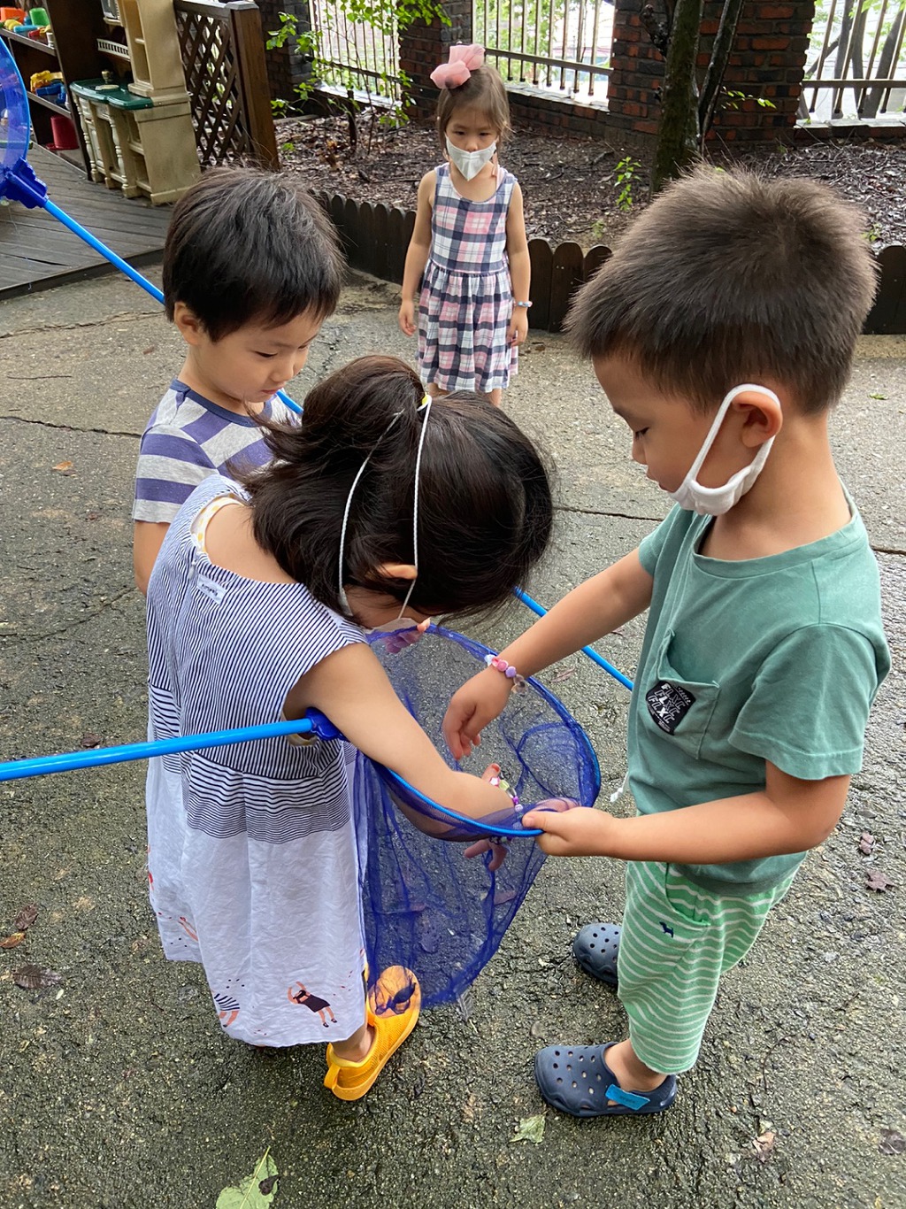 매미를 잡을 땐 서로를 진심으로 응원해주는 아이들이에요^^