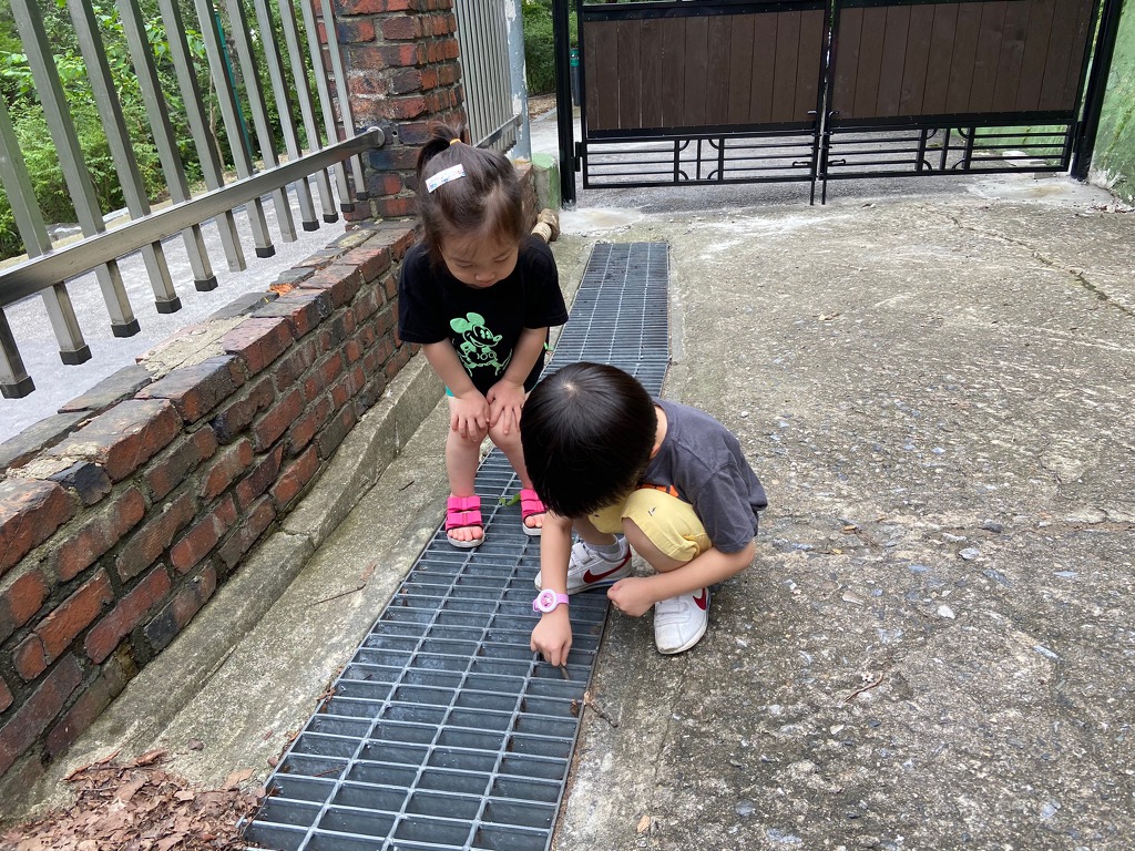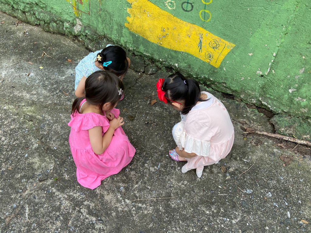 바닥에 있는 곤충들을 마치 보물 찾기처럼 찾아보는 아이들이에요