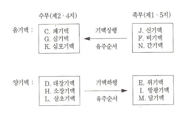 F. 비기맥에서 G. 심장기맥으로 보법(補法)