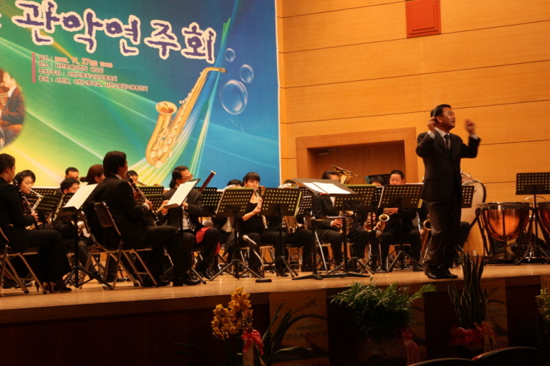 현악기등을 제외한 관악기와 타악기 중심의 연주회. 남성의 힘찬 기백을 느끼게 합니다. 학창시절 밴드부원들이 일사불란하게 하모니를 이루며 연주하던 기억이 어렴풋 되살아 납니다.