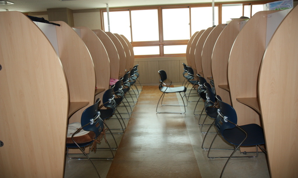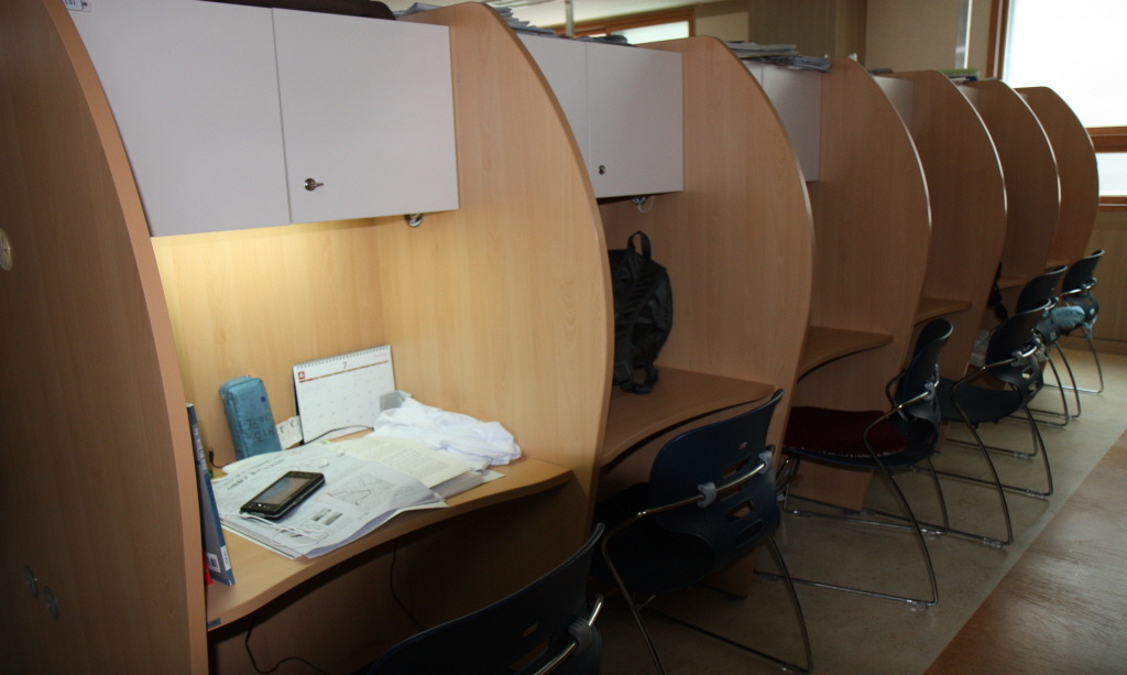 시내 독서실 보담도 쾌적한 공부 방. 120명 전원에게 이런 독서대가 주어진답니다.