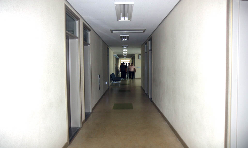 휴일인지라 절전하고 있어 어둡지만 청결 한 복도