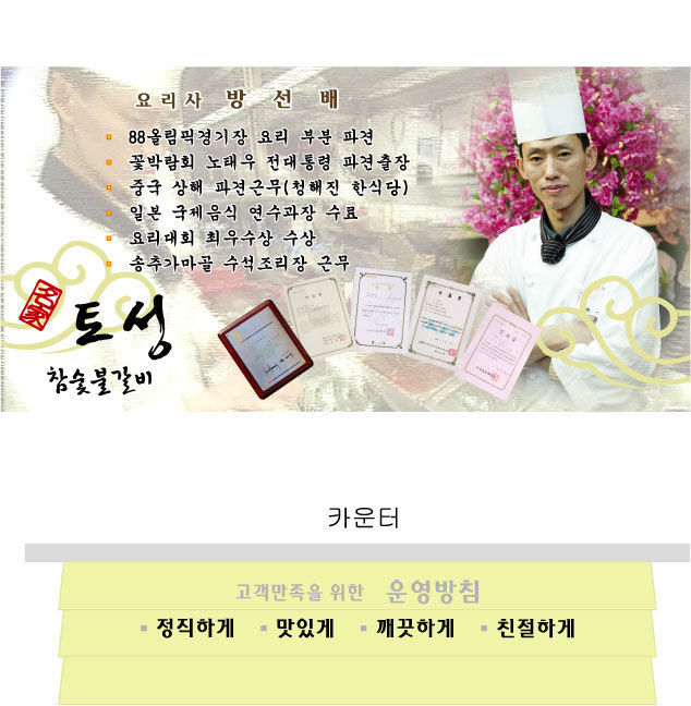 최상의 식재료로서 최고의 맛으로 최상의 서비스를 책임지겠읍니다.