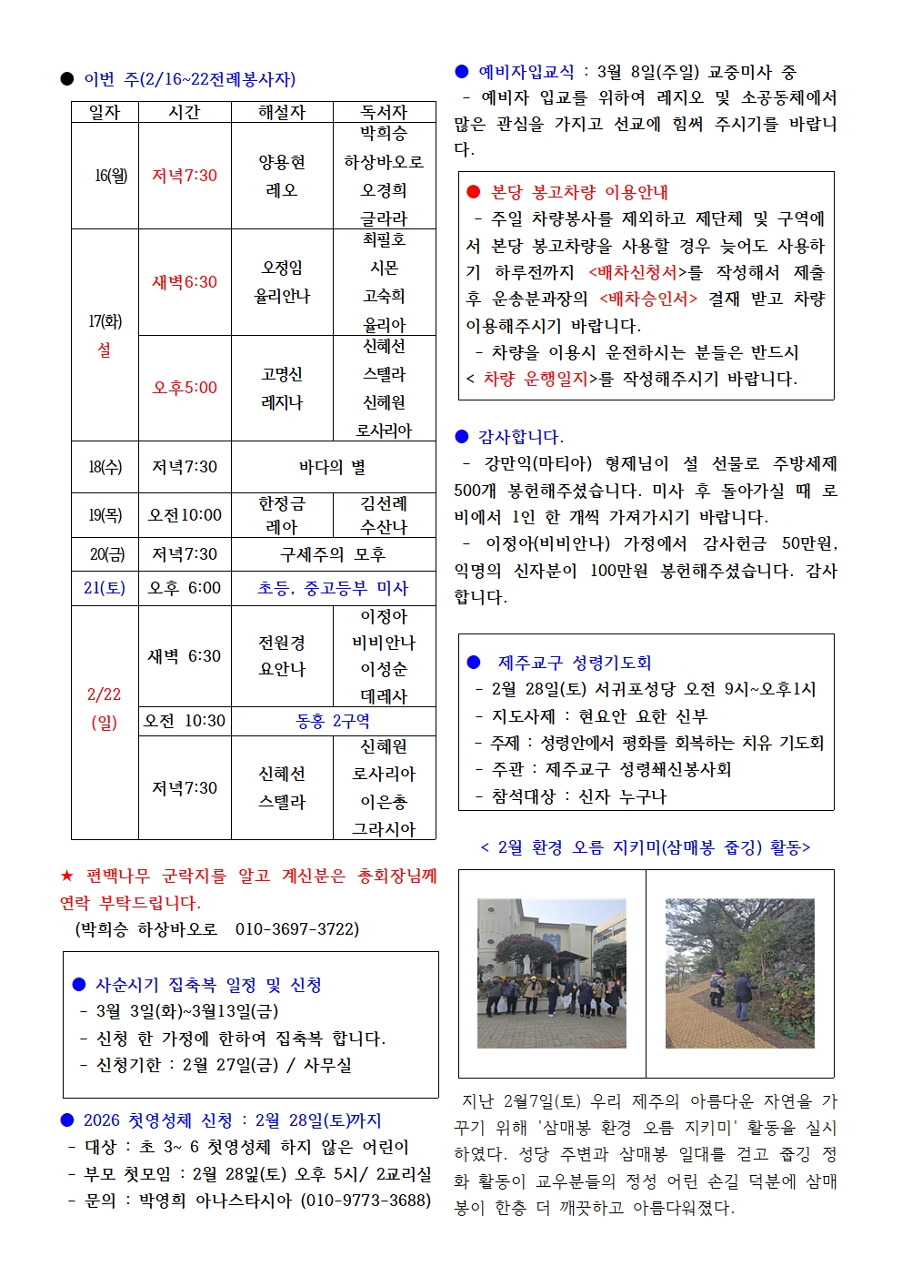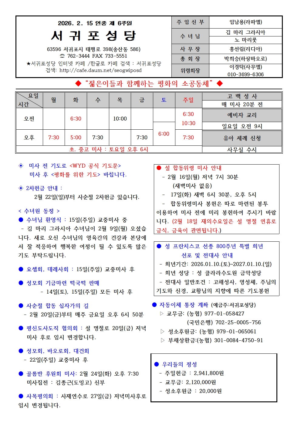 연중 제6주일(2026. 2. 15.) 본당 소식지 작성자프란치스코|작성시간26.02.14|조회수277 목록 댓글 0 글자크기 작게가 글자크기 크게가 다음검색 현재 게시글 추가 기능 열기 북마크 공유하기 신고 센터로 신고 댓글 댓글 0 댓글쓰기 답글쓰기 댓글 리스트