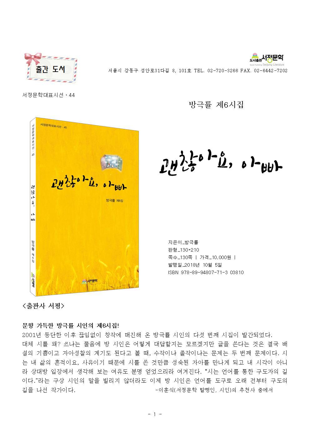 작성자송화/주해숙 작성시간 18.11.12 6집의 괜찮아요, 아빠"" 시집이 또 한권 출간되었네요?